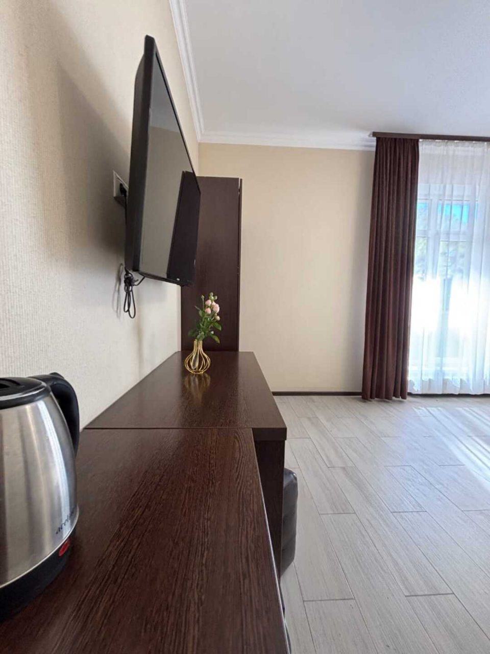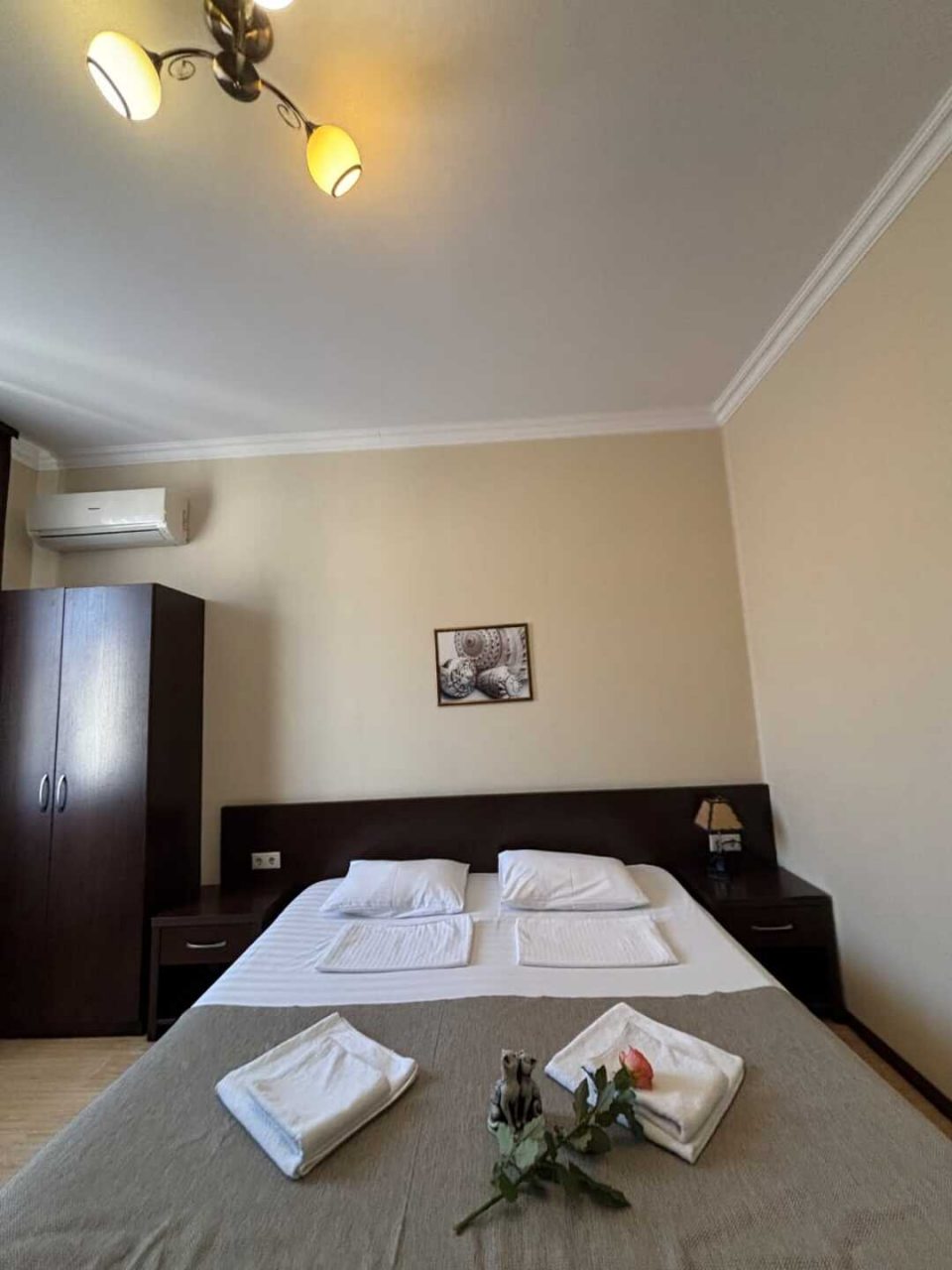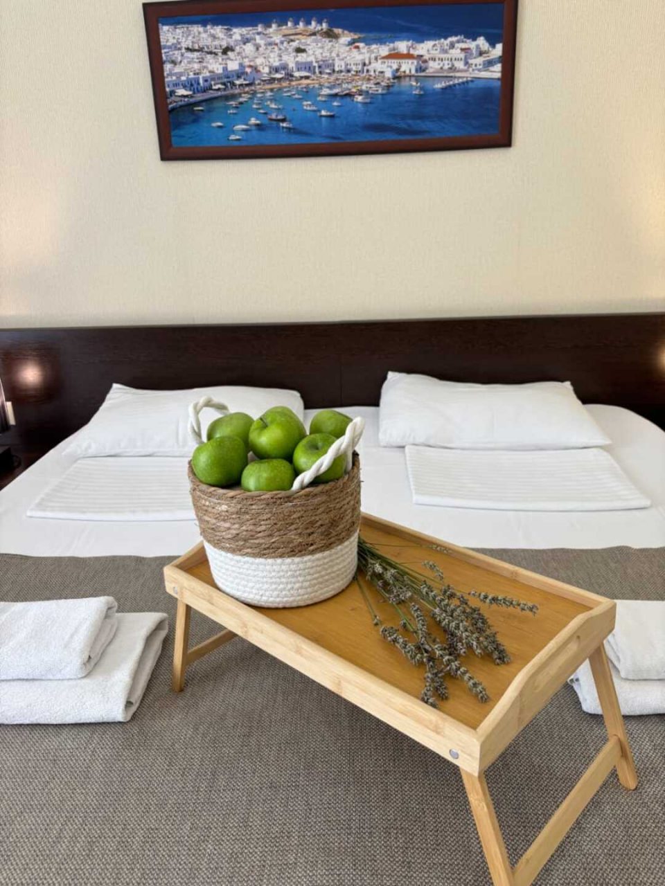 Этот вариант прекрасно подойдет как семьям, так и индивидуальным путешественникам, так как доступны различные категории: «Двухместные», «Трехместные» и «Четырехместные» номера с балконом и без. В каждом номере все продумано для полноценного отдыха, включая кровати с удобными матрасами, холодильник и чайник, бесплатный Wi-fi, телевизор, сейф, кондиционер, вместительный шкаф и собственный санузел с душем.