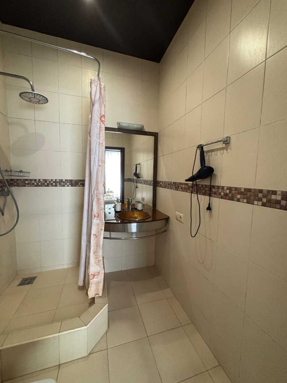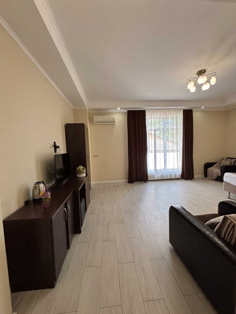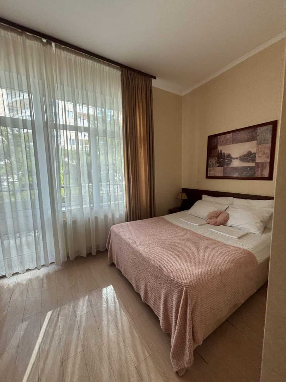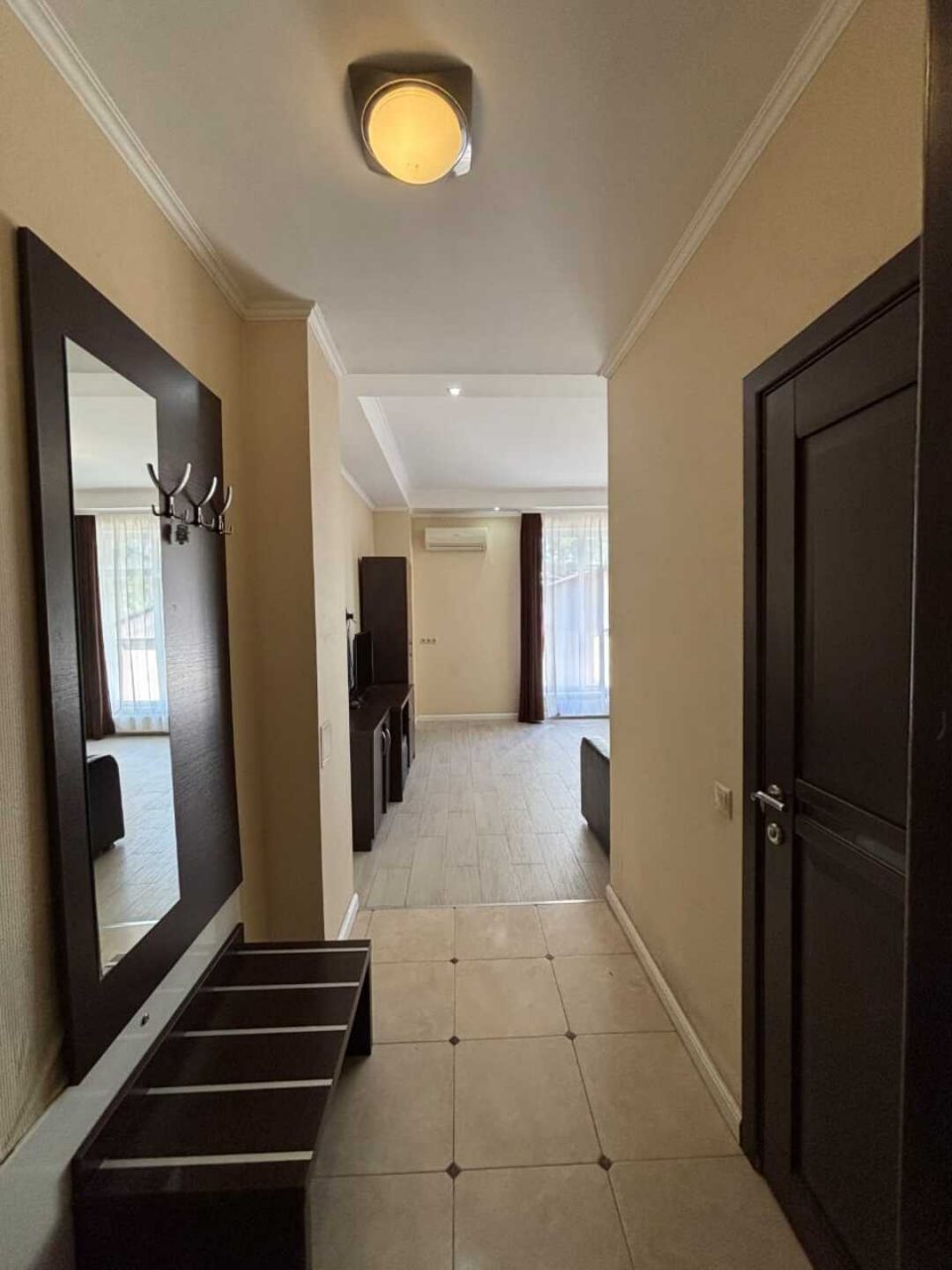 До набережной 3 минуты пешком. очень понравилось расположение! Рядом кафе, остановка, парковка и магазины. Приедем еще раз. Рекомендую!