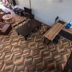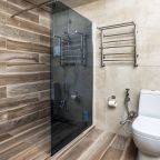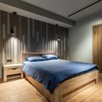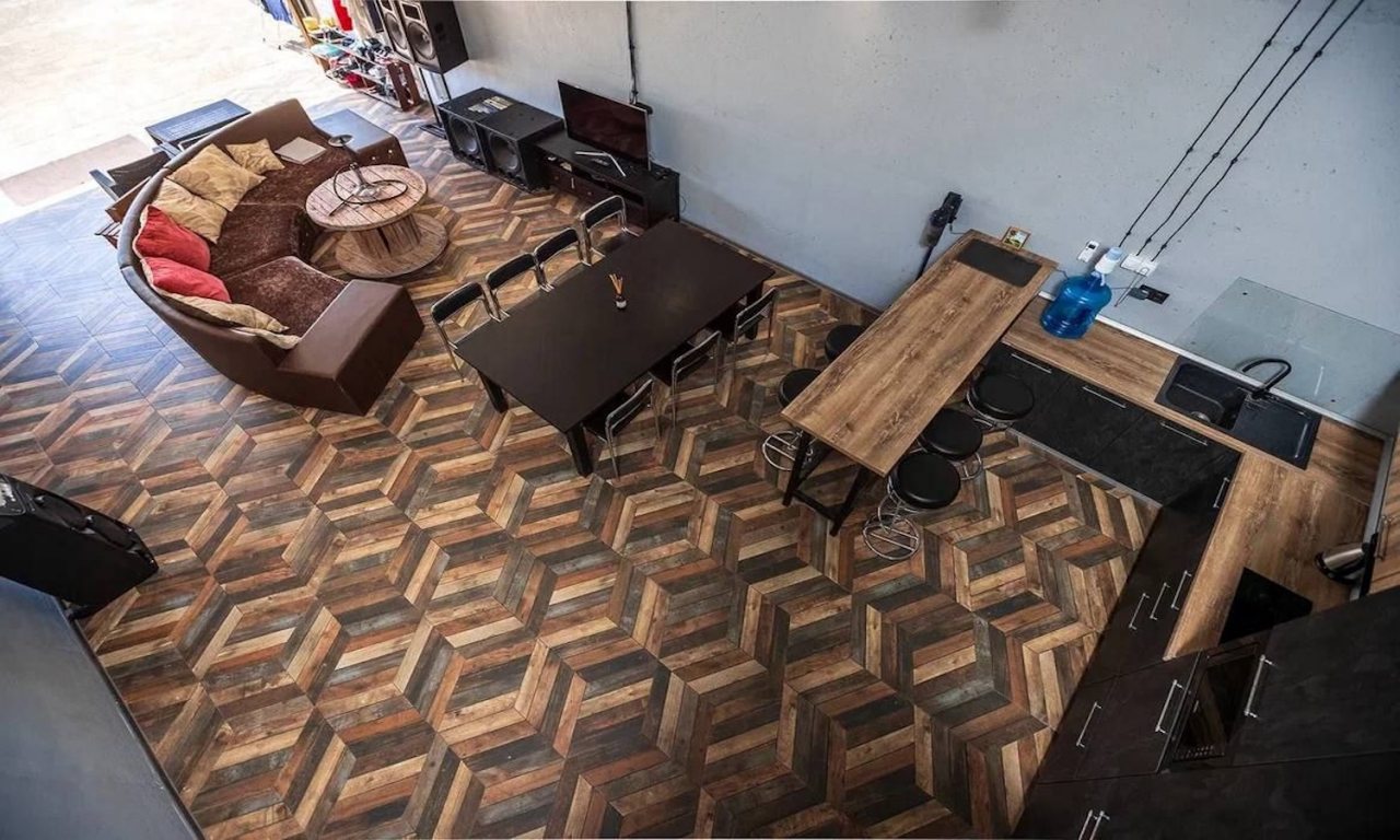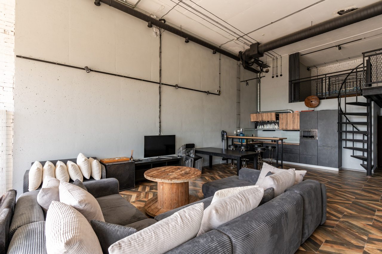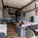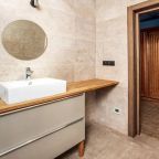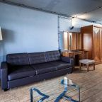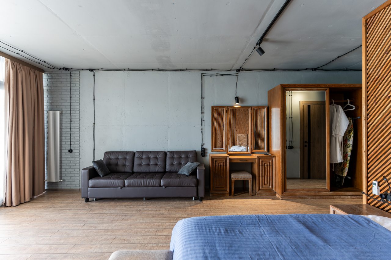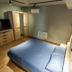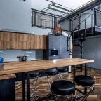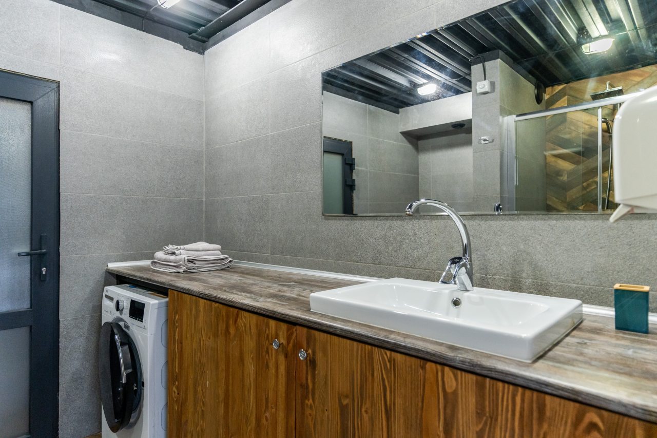 Кухня оснащена стильным гарнитуром, варочной панелью, электрочайником, микроволновой печью, вытяжкой, набором посуды и др. Пообедать можно в ближайшем кафе.