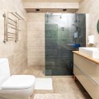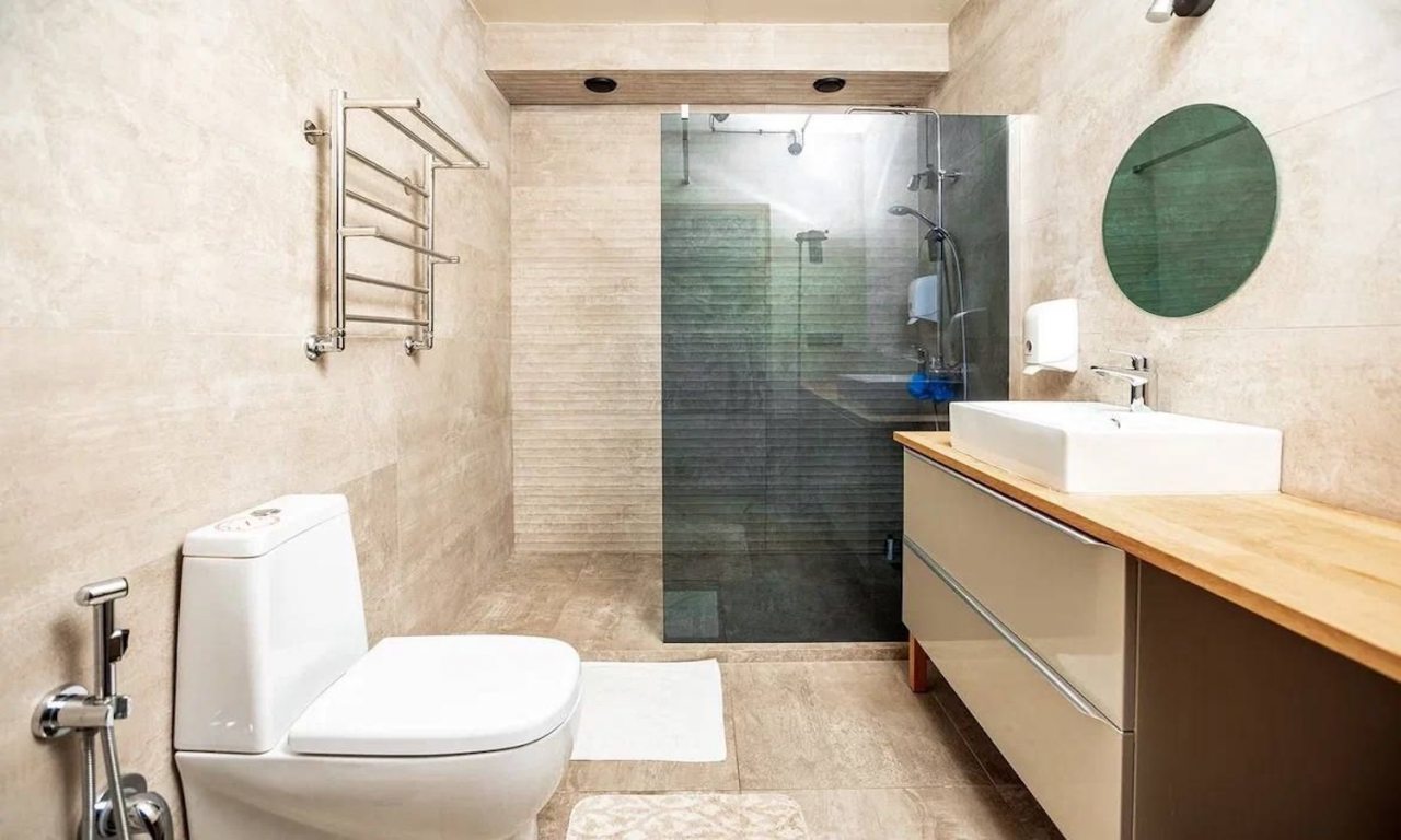 Уютный коттедж оборудован всей необходимой мебелью и техникой для комфортного проживания, например: кондиционером, телевизором, балконом с видом на море в одной из трех спален, кухонной зоной и тремя санузлами. Доступна точка wi-fi. Санузел укомплектован современной сантехникой, гигиеническим душем и стиральной машиной.