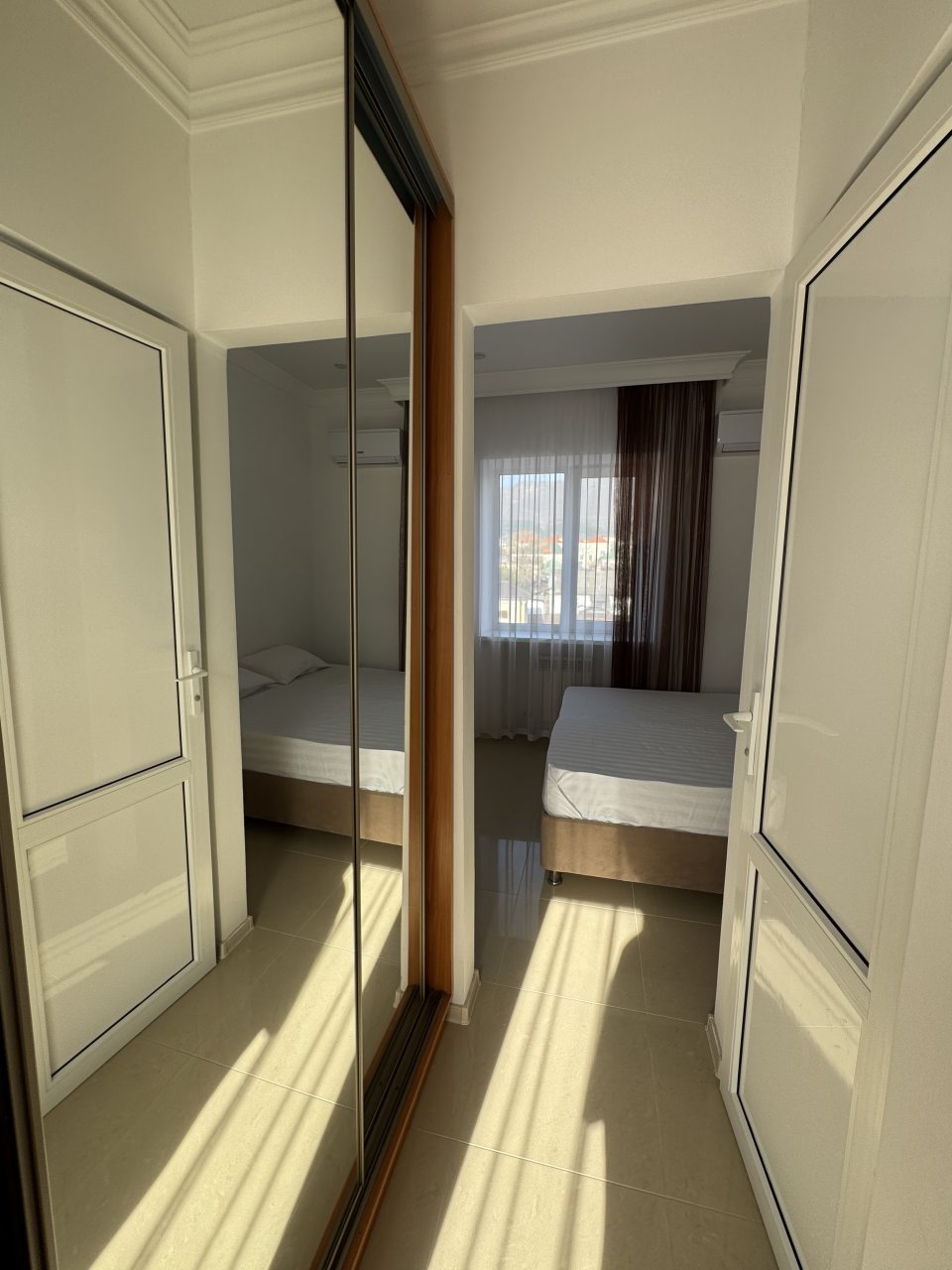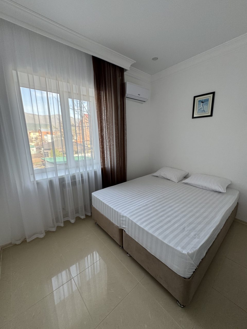 Безусловно расположение это плюс. Но город маленький и всё в шаговой доступности. У нас рядом были столовые, магазин перекрёсток, парк, море с центральным пляжем. Девушка уборщица общий коридор мыла ежедневно с утра, лестницы вручную . Там действительно было чисто, беленко уютно, тюль, на тюли забавно сидели жуки, бабочки и тд меня не смущало, мы с удовольствием их рассматривали с младшим сыном, но старший боялся. Большой плюс это хорошая площадь комнат ( мы были в 7 и 10). В номере 10 очень хороший вид на горы, надпись, парк Олимп, колесо, вечером это всё очень красиво светилось. Плюс в том, что давали одноразовые шампуни и гель, тул бум, полотенца. Да, иногда надо напомнить, но дают всё без слов. Постельное бельё белое, чистое, полотенца белые, для ног, для лица, среднее и большое. Нам на 4 человека хватало. Полы моют хорошо в номере. Огромный телевизор, несколько каналов, нам всё хватало. 10 номер прямо напротив чайников ( было 2, но кто-то из постояльцев унес себе один, аяяй чужое имущество!). Девушки на ресепшене всё решают быстро, к примеру ,у нас проблема была с туалетом, нас быстро переселили в другой номер. Два больших окна, хорошая двухспальная! кровать, а не сдвинутые односпальные и хороший диван ( вроде он раскладывается, но у нас была сломана спинка и мы не трогали, спали так). Огромный шкаф, три тумбы. Горячая вода. Всё для отдыха есть. Общее впечатление хорошее