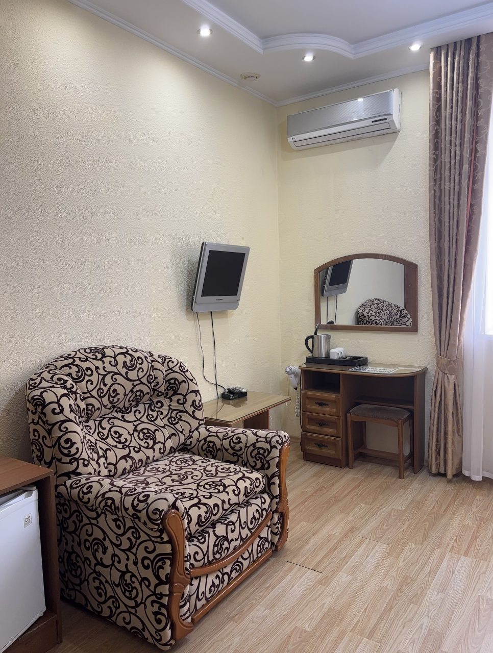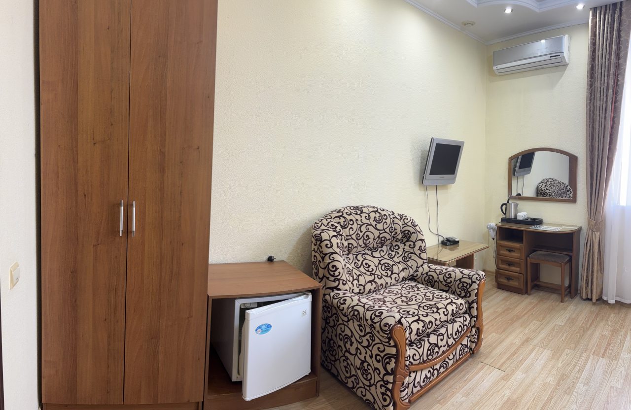 Замечательное место! Минута и ты на набережной! Отель не молодой, но ухоженный! За неприлично низкую цену в номере было все и даже больше: гигиен. наборы, тапочки, бутилированная вода, чайник, холодильник, фен. На этаже гладильная доска и утюг.