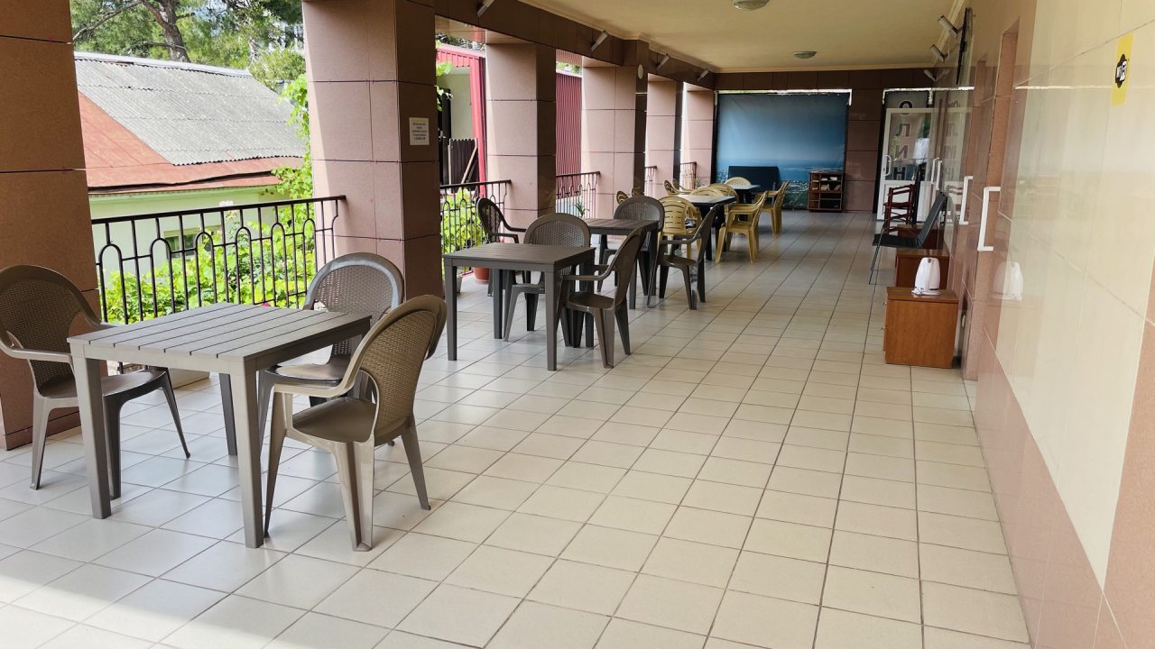 Мы были с мужем вдвоем. И нам очень подошло это место. Спокойное, светлое, уютное. Разместились с комфортом, вещей было не так много, все поместилось в шкаф. Классно, что в номере есть холодильник. Завтрак мы сами себе организовывали перед морем, а на обед уже приходили в столовую. Море близко.