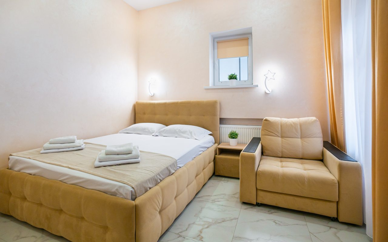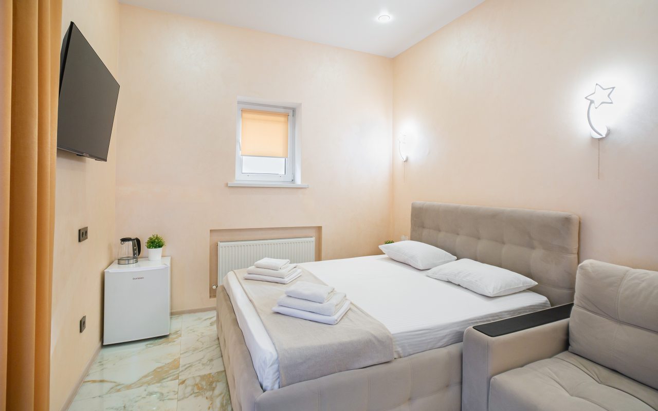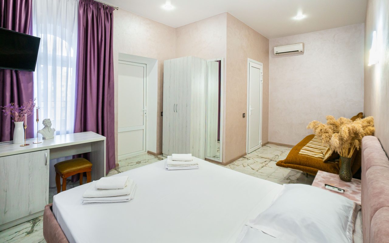 Гостям предлагается размещение в светлых комфортабельных номерах, где предусмотрены кровать с мягким изголовьем и комплектом белоснежного постельного белья, телевизор, доступ к высокоскоростному интернету, кондиционер, различная мебель для хранения вещей. Ванная комната укомплектована душевой кабиной, раковиной и туалетом.