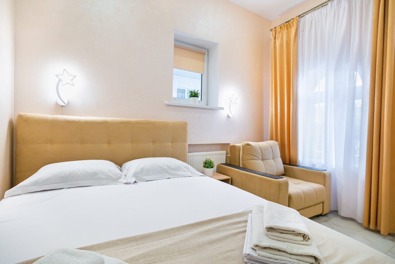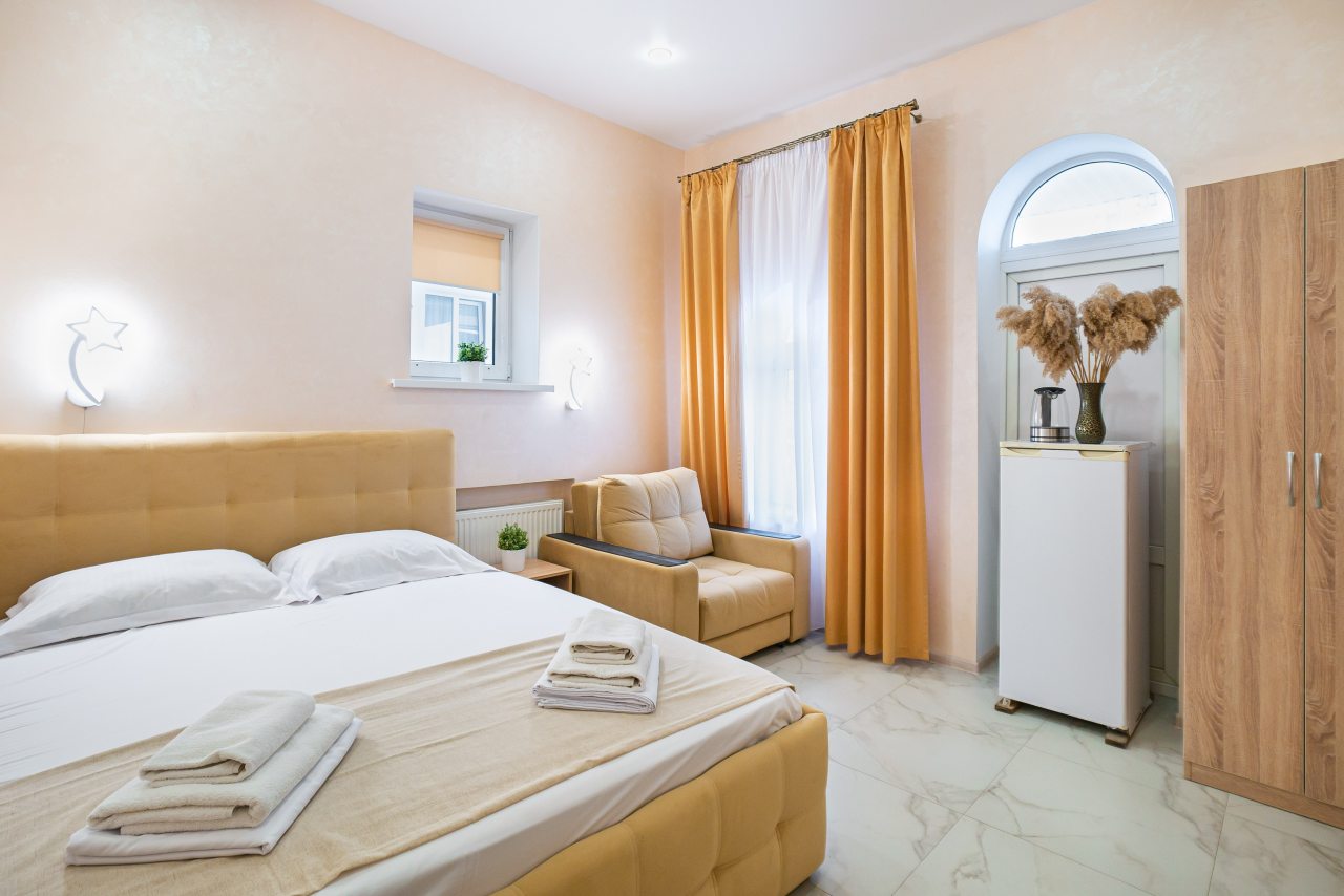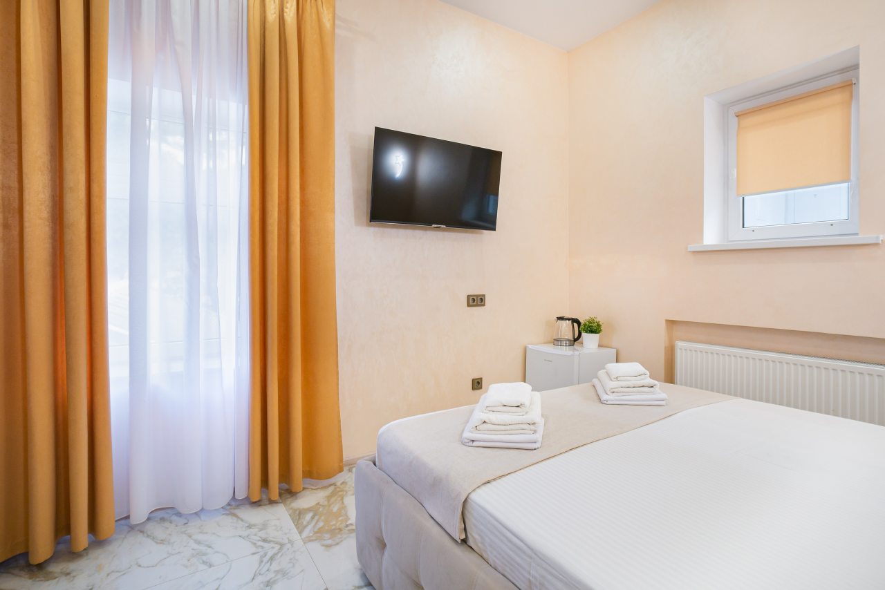 Гостям предлагается размещение в светлых комфортабельных номерах, где предусмотрены кровать с мягким изголовьем и комплектом белоснежного постельного белья, телевизор, доступ к высокоскоростному интернету, кондиционер, различная мебель для хранения вещей. Ванная комната укомплектована душевой кабиной, раковиной и туалетом.