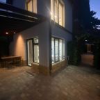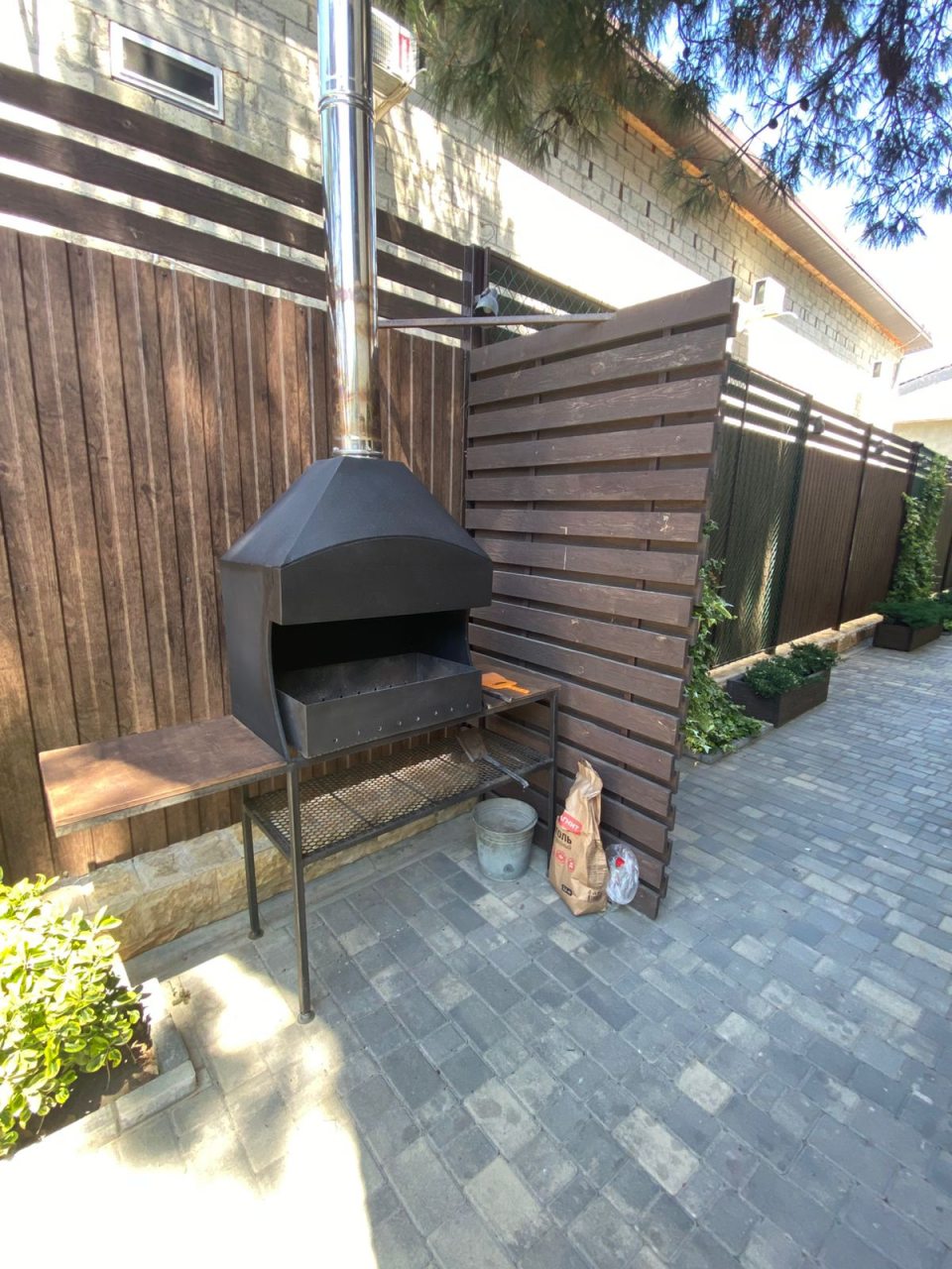 Кухонная зона оснащена такой техникой, как вытяжка, микроволновая печь, индукционная плита, чайник, а также имеется набор посуды и столовых приборов. Гости могут воспользоваться мангальной зоной для проведения пикника и иных мероприятий.
