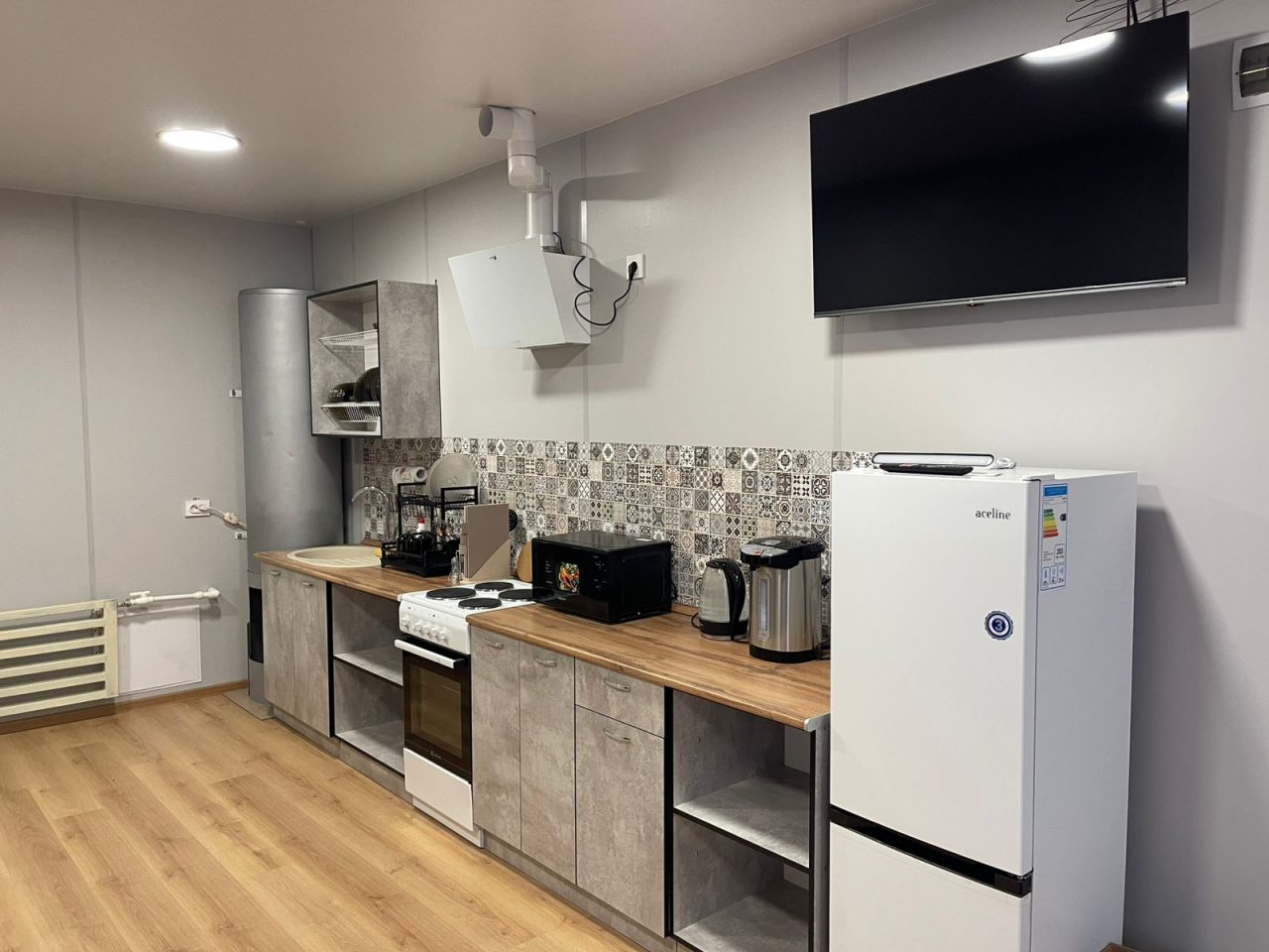Готовить любимые домашние блюда и напитки можно на общей кухне, где имеются плита, духовой шкаф, холодильник, чайник, посуда, обеденные зоны.