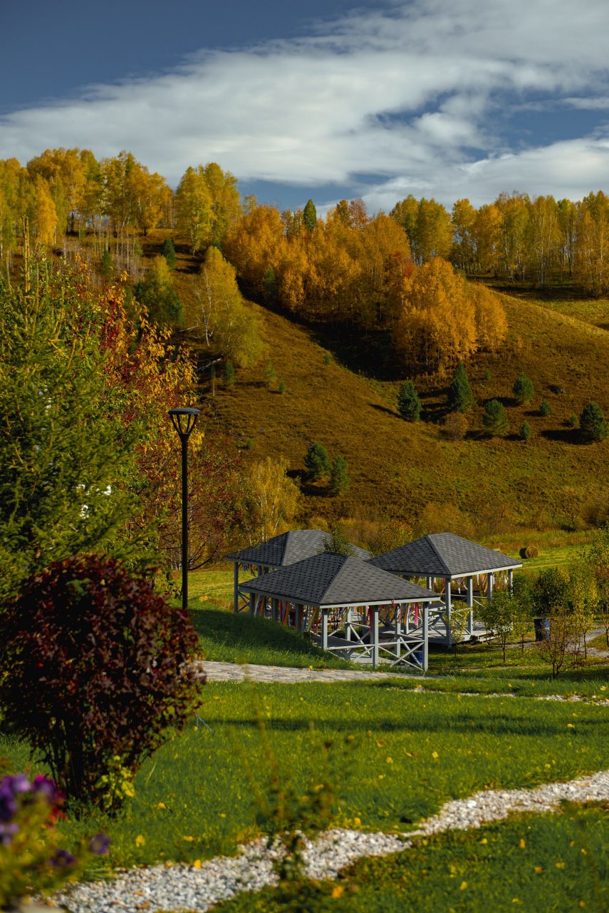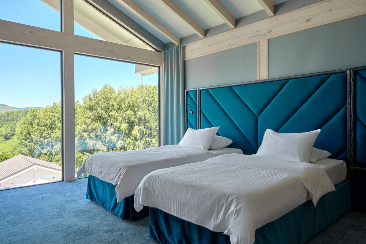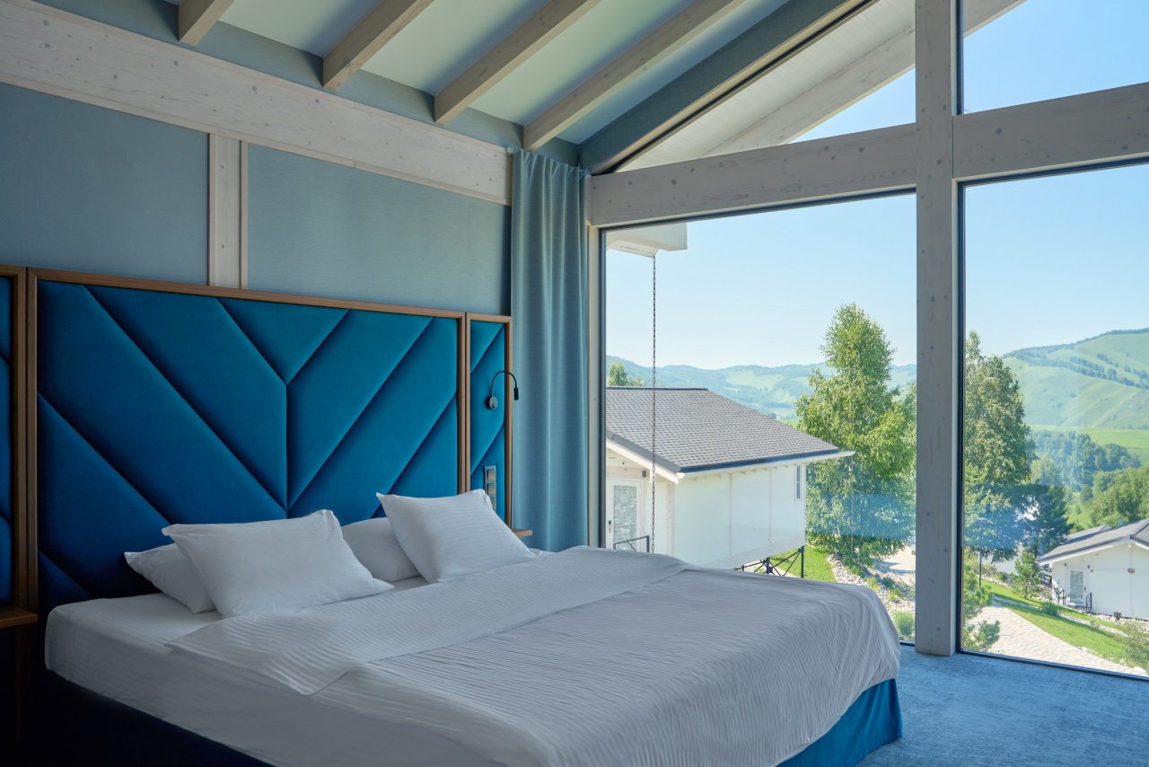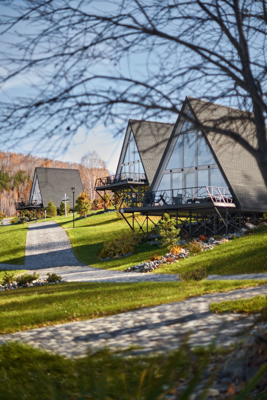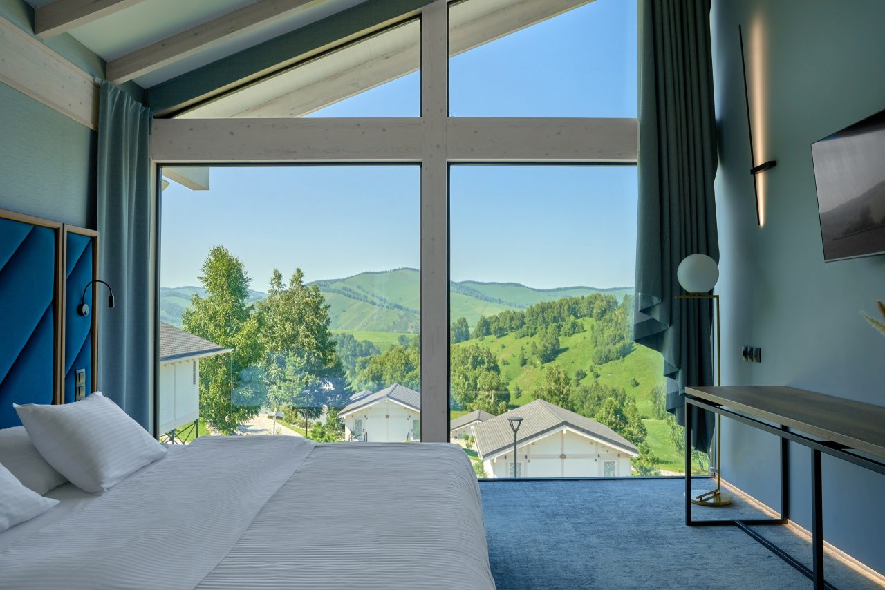 На территории отеля для размещения гостей подготовлены современные домики-шале и вилла. Бронируйте номер по телефону или онлайн на 101Hotels.com. Они обустроены комфортабельной мягкой мебелью, кондиционером, телевизором и собственной ванной комнатой. Большие панорамные окна открывают вид на живописные горы и лес.