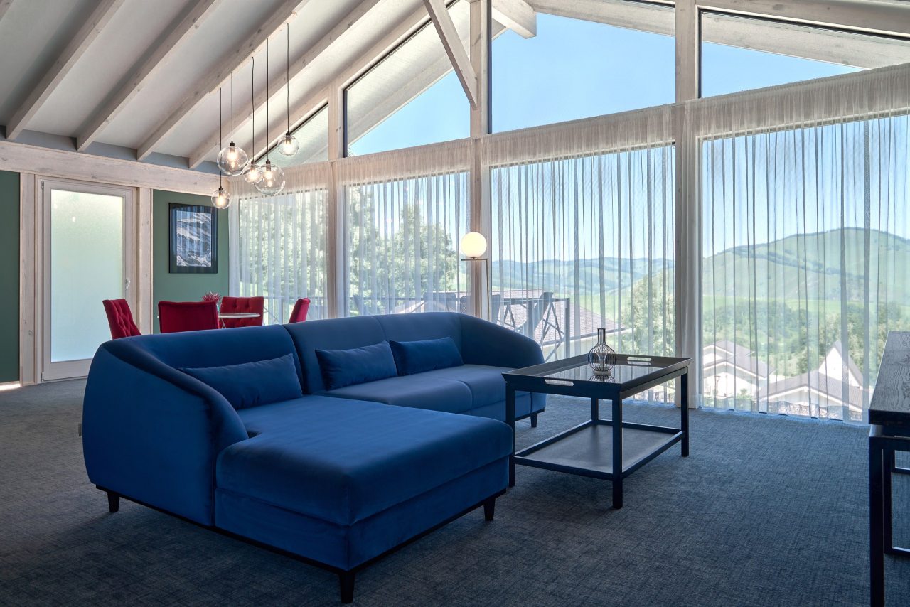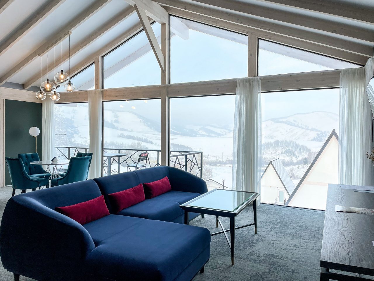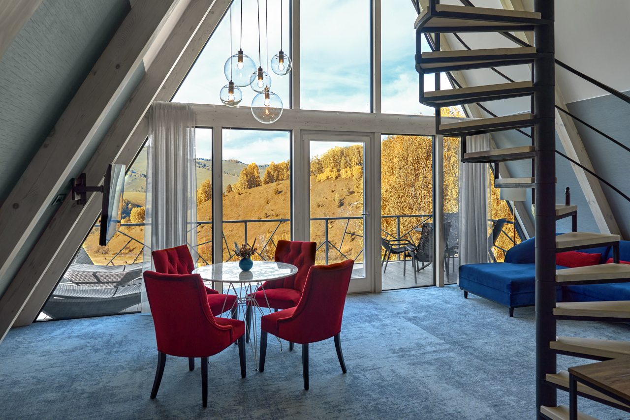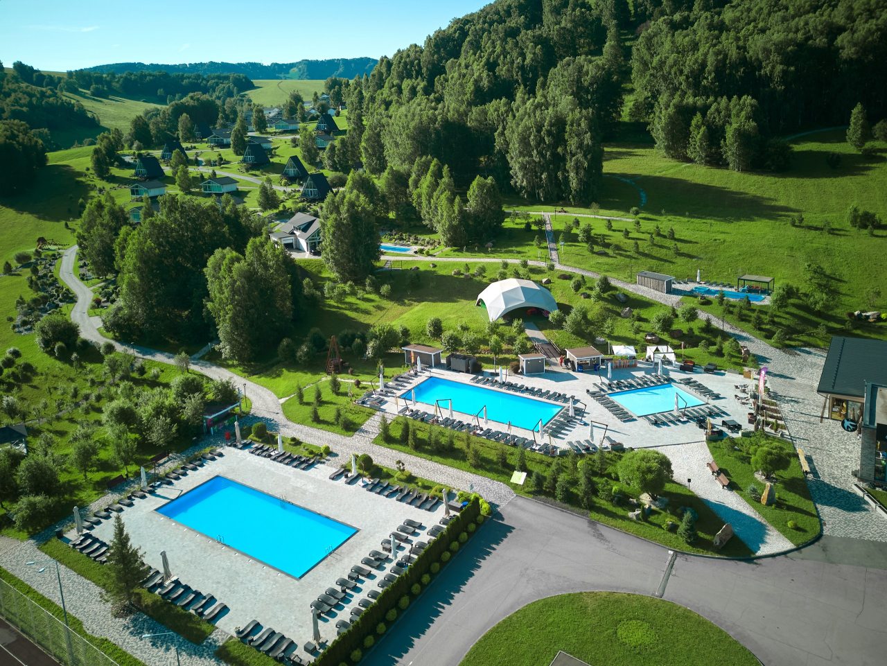 На территории отеля для размещения гостей подготовлены современные домики-шале и вилла. Бронируйте номер по телефону или онлайн на 101Hotels.com. Они обустроены комфортабельной мягкой мебелью, кондиционером, телевизором и собственной ванной комнатой. Большие панорамные окна открывают вид на живописные горы и лес.