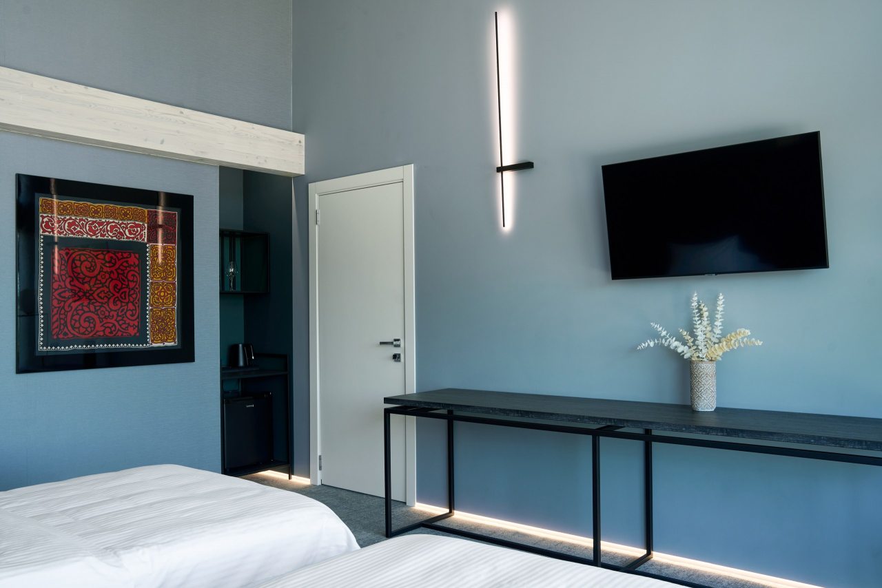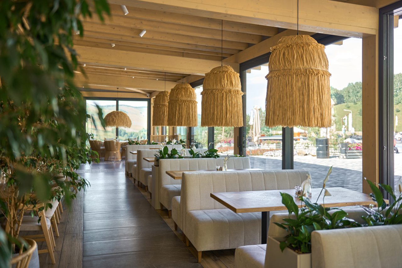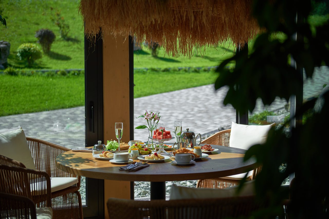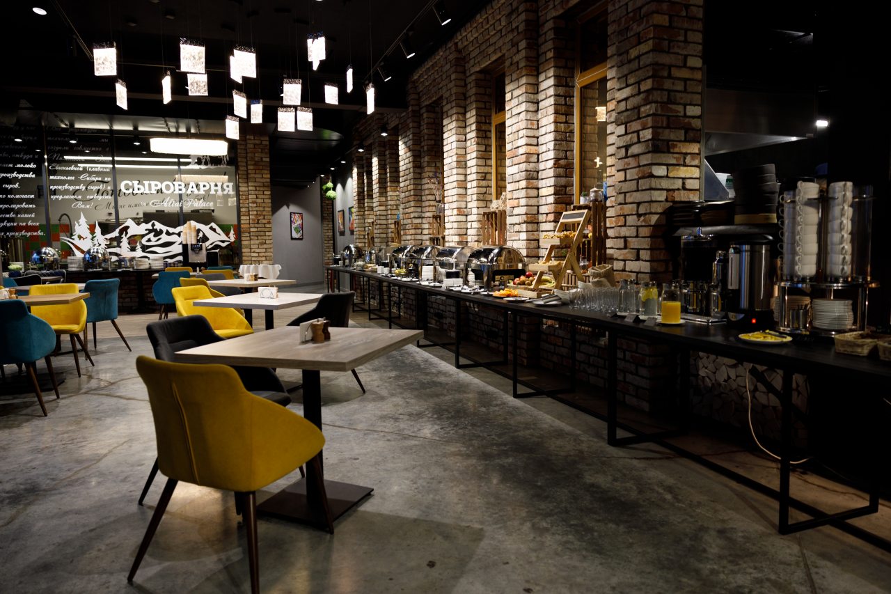 В кухонной зоне имеется микроволновая печь, электрический чайник и набор посуды. На территории комплекса расположен ресторан «Ласточки», где гостей ждут: панорамный вид, открытая кухня, бар с напитками на любой вкус, лучший выбор из коллекции рецептов и авторские блюда от бренд-шефа. Завтрак проходит по системе «шведский стол». В меню ресторана: сочные стейки, свежие морепродукты, сыры собственного производства и невероятные десерты. Для юных гостей предусмотрено детское меню. По вечерам — DJ-сеты и живая музыка.