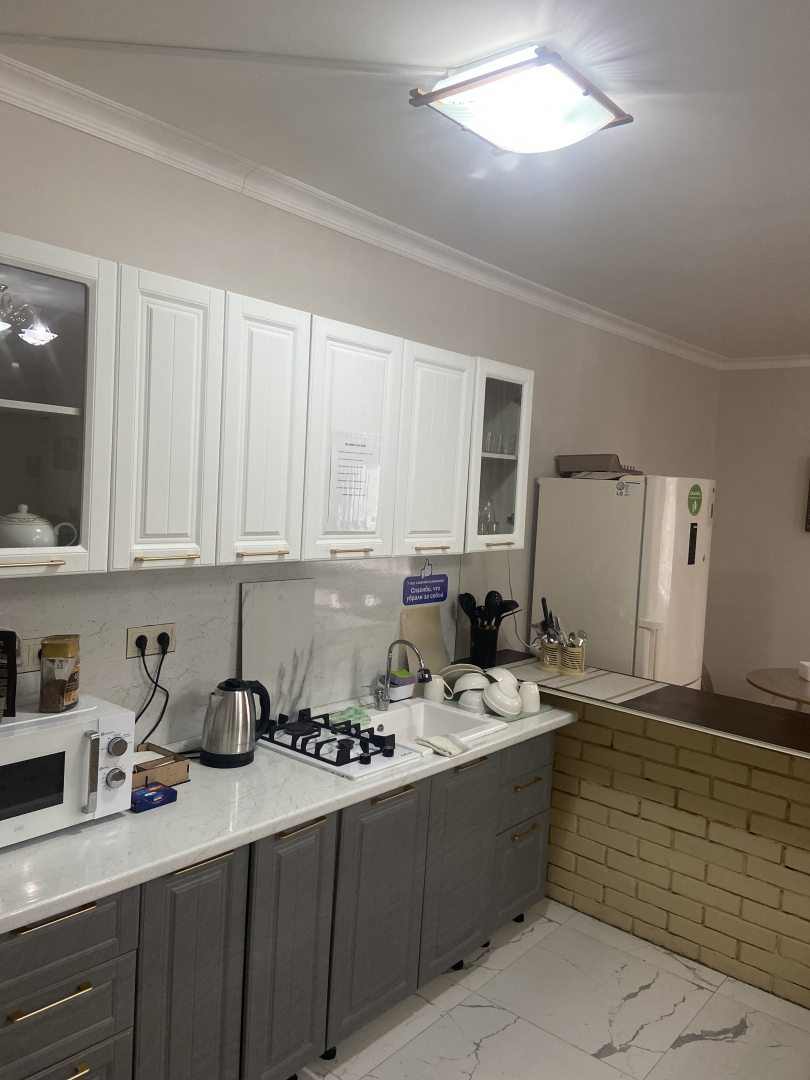 Отличное место, прекрасный гостеприимный хозяин, есть вс необходимое, везде чисто и приятно. В номере кровати, раскладной диванчик, шкаф, телевизор, санузел, полотенца, одноразовые гигиенические принадлежности, вс меняетсяпополняется по запросу. От аэропорта 5 минут на маршрутке (33руб), до центра города минут 10 на машинетакси (250-300руб). На кухне можно готовить, вс необходимое имеется, холодильник, микроволновка, плита, посуда, чай, кофе, сахар, соль, масло... Уютно и по-домашнему. Большое спасибо, Ирс, за наш прекрасный отдых с вашей помощью, за все советы, подсказки и участие! Процветания вам!