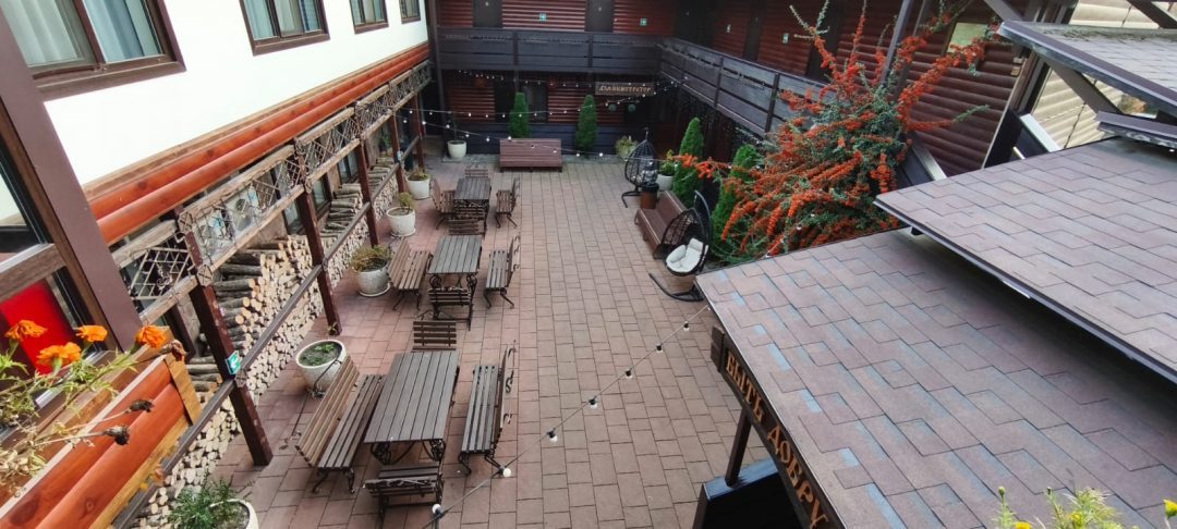 Очень красивый отель и снаружи и внутри. Наш номер был уютным, с балконом и видом на горы. На втором этаже шикарная мангальная зона с огромным холлом и большим мангалом. Приветливый и доброжелательный персонал. На первом этаже расположено уютное кафе с огромным выбором блюд. Готовят очень вкусно по демократичным ценам. Имеется прекрасный внутренний дворик, где можно спокойно посидеть за столиками, выпить чашечку кофе, покушать, покачаться в качелях- коконах. Удачное расположение самого отеля. В шаговой доступности находятся магазин, рынок и паровозик.