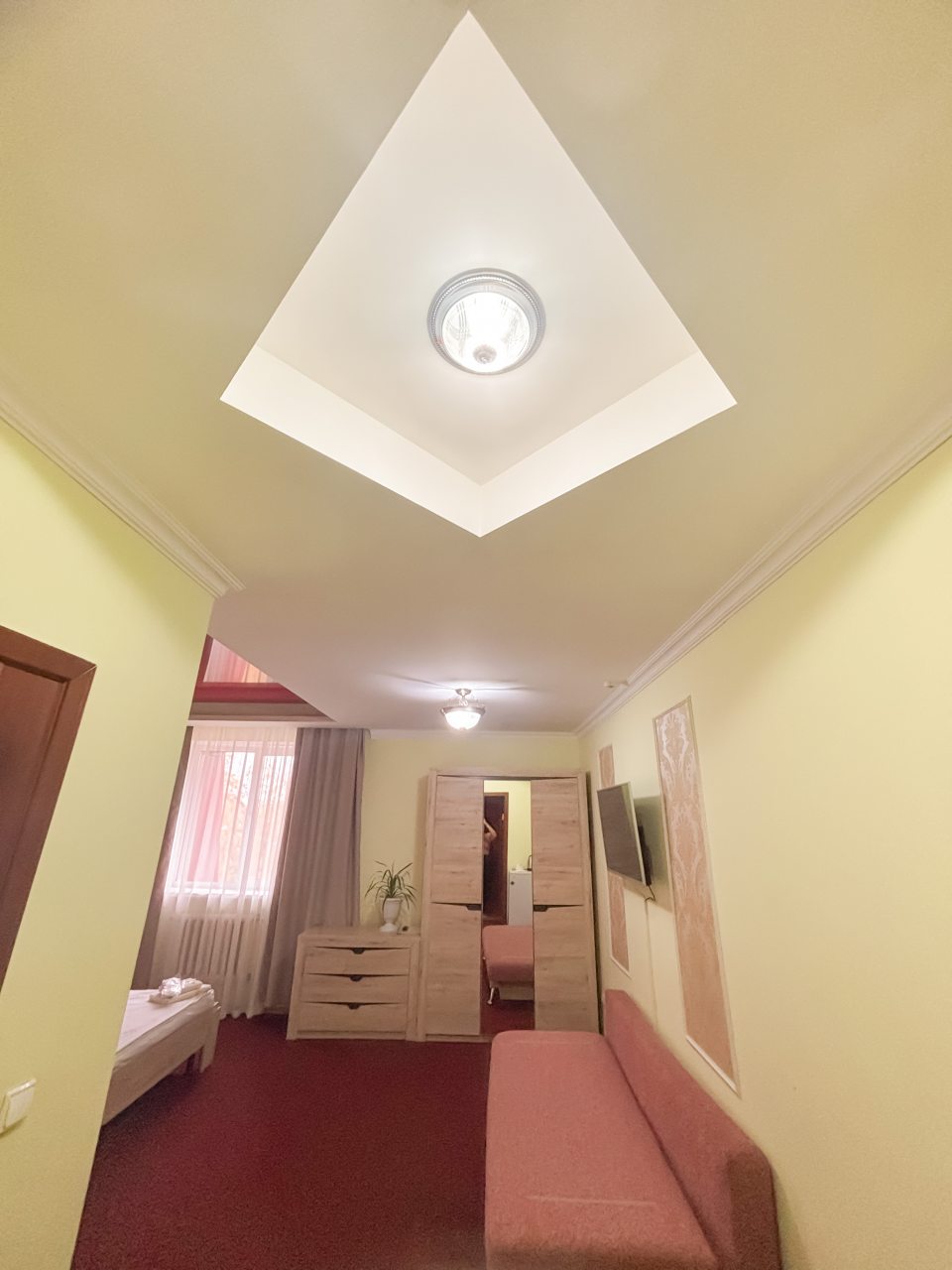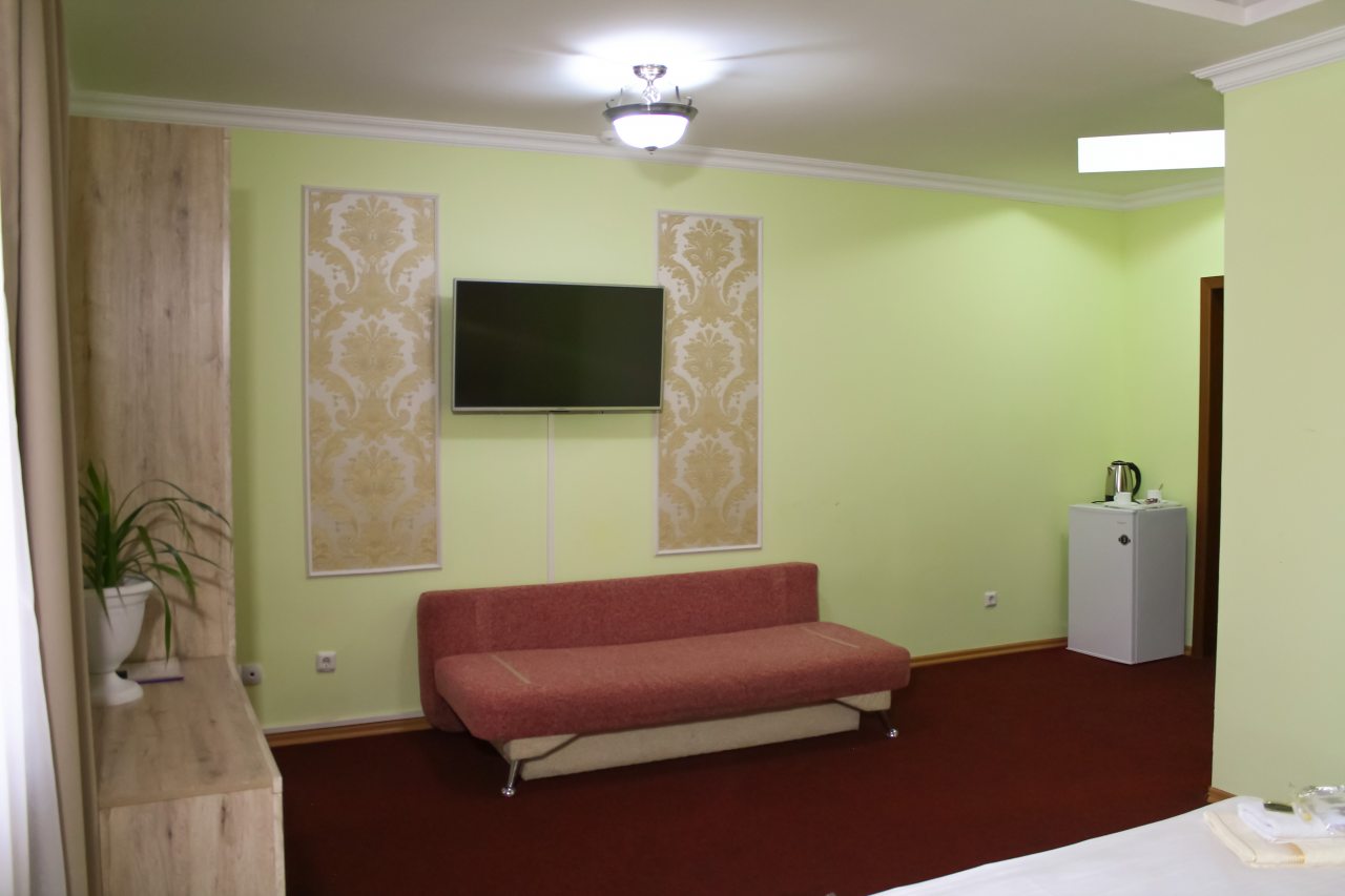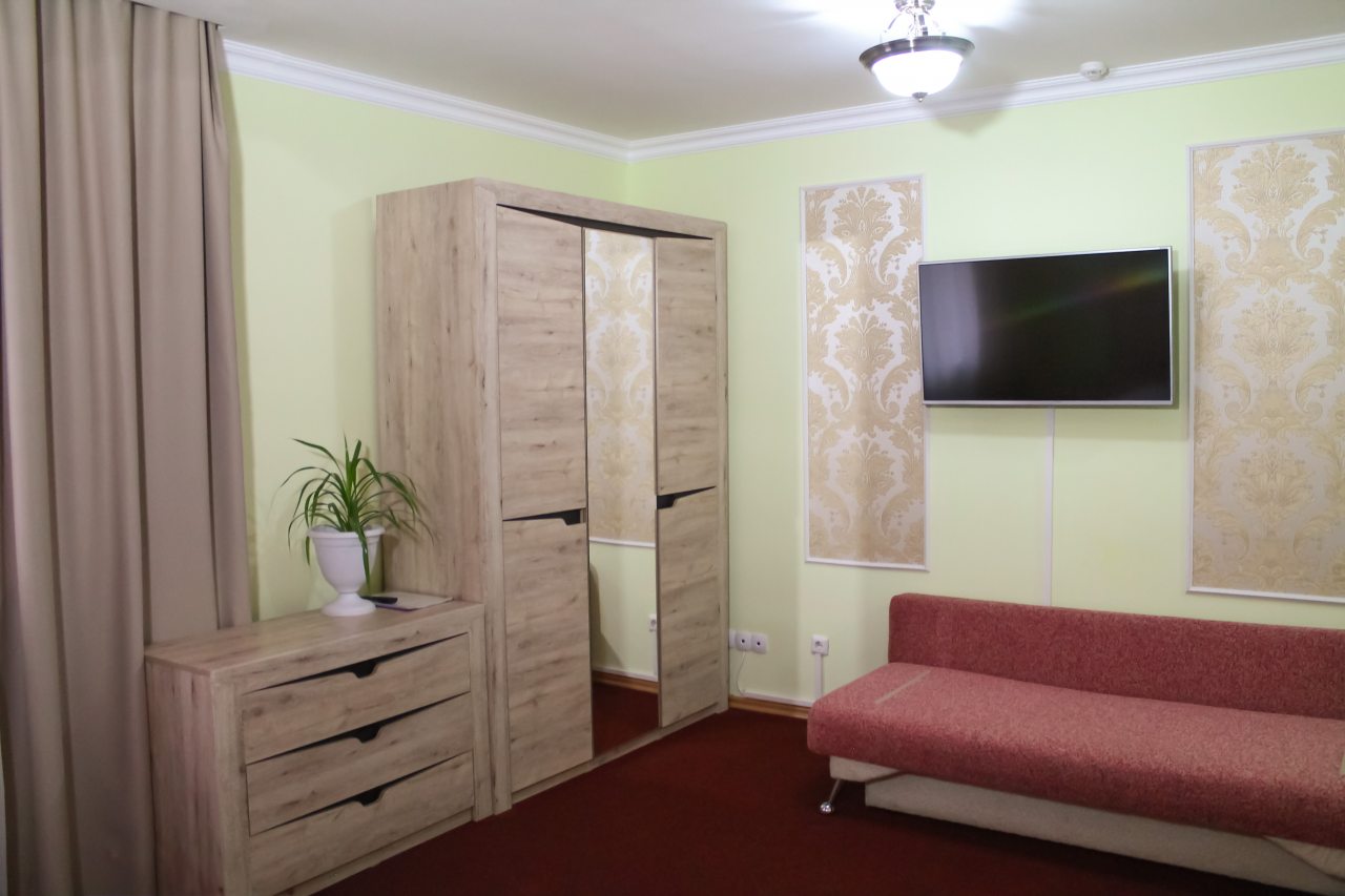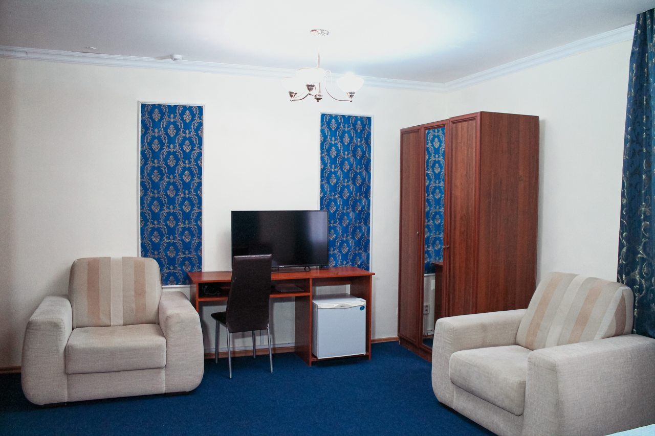 Дизайн интерьера выполнен в едином классическом стиле. В просторных номерах есть все условия для полноценного размещения и проживания, имеется вся необходимая мебель и техника. В распоряжении отдыхающих будет: шкаф для одежды, а также телевизор с плоским экраном.