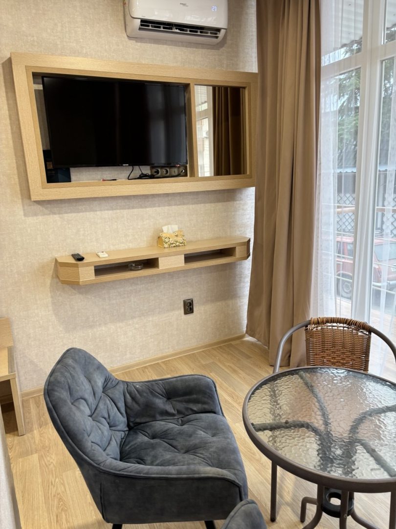 Из недостатков: с первого этажа вид на соседнее здание не очень. Плохая звукоизоляция номеров. Не разобрались с телевизором, смотрели Ютуб, нет приложений каналов и кино. Интересное решение с прозрачной стеной в туалет.