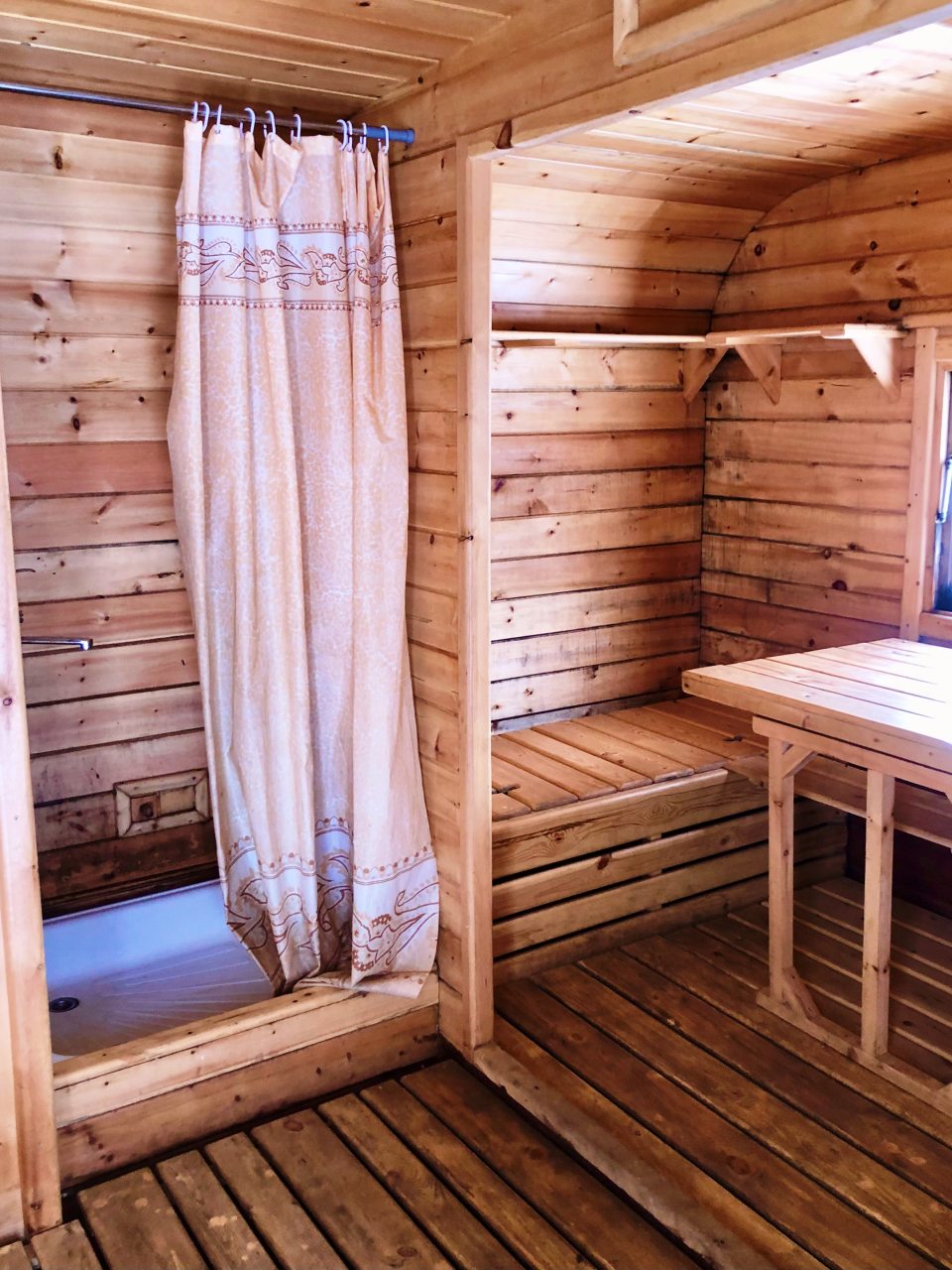 Для проживания предлагаются уютные номера, в интерьере которых преобладает натуральное дерево. Каждый укомплектован всем необходимым для полноценного отдыха, включая удобные кровати и индивидуальный санузел с раковиной, душем и туалетом.