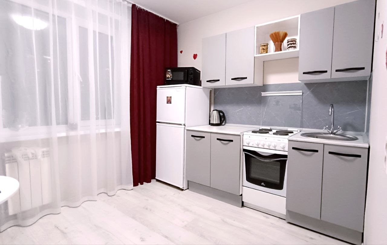 Кухня укомплектована бытовой техникой, кухонным инвентарём. Продуктовые магазины в пешей доступности.