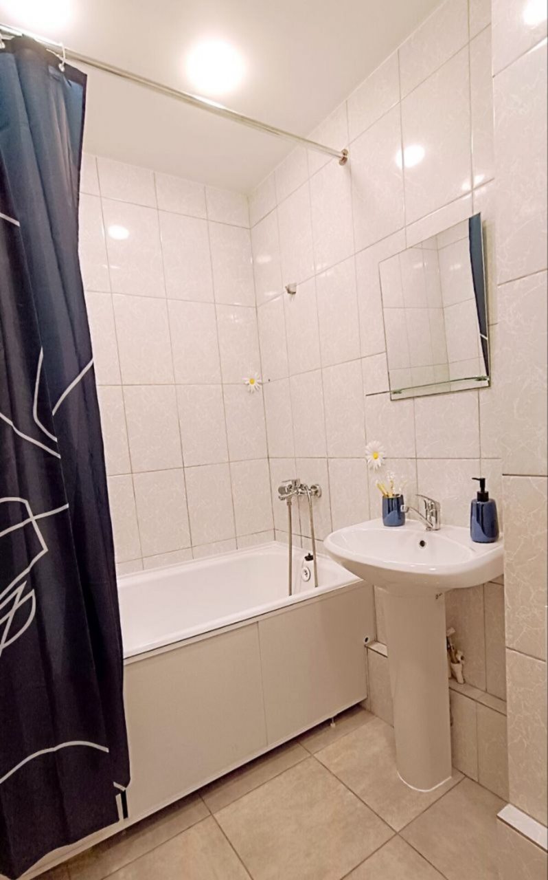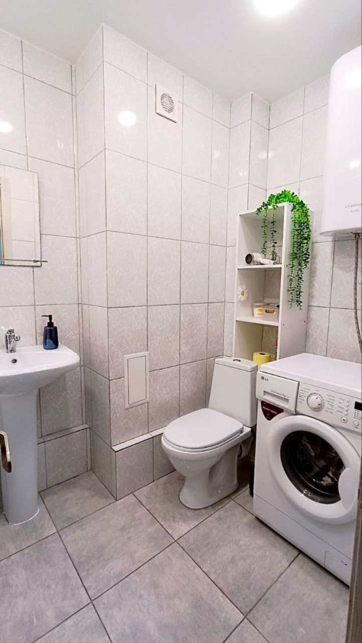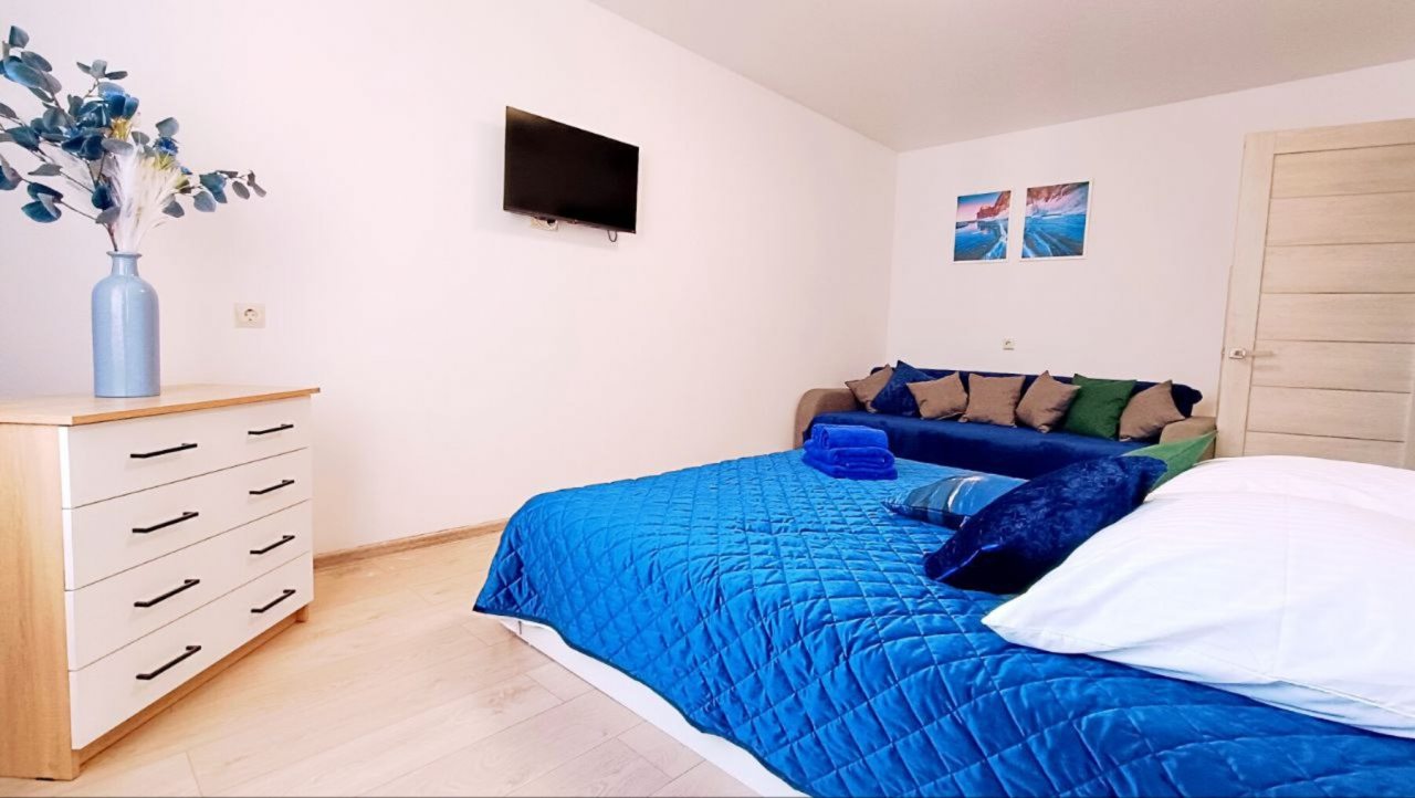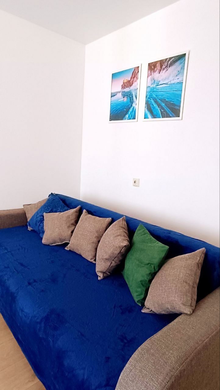 Для полноценного проживания имеются двуспальная кровать с удобным матрасом, мягкий диван, телевизор, комод, затемненные шторы для лучшего сна, а также ванная с феном и стиральной машиной.