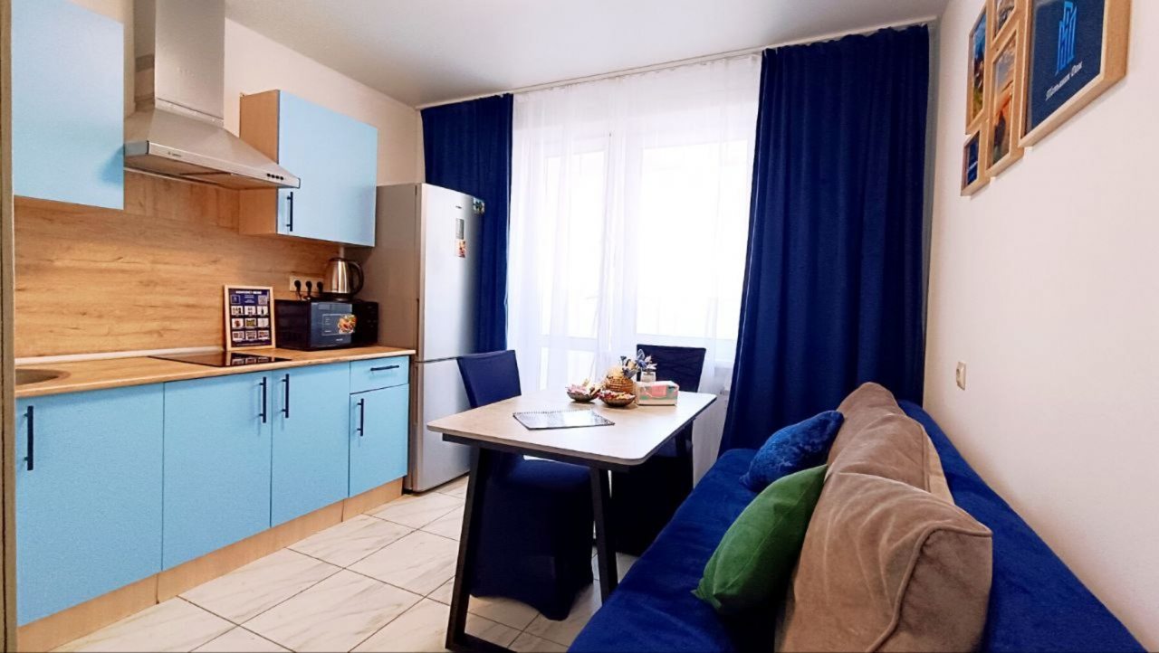 На уютной кухне вы сможете готовить любимые напитки и блюда, так как в наличии чайник, варочная панель, СВЧ, комфортная обеденная зона.