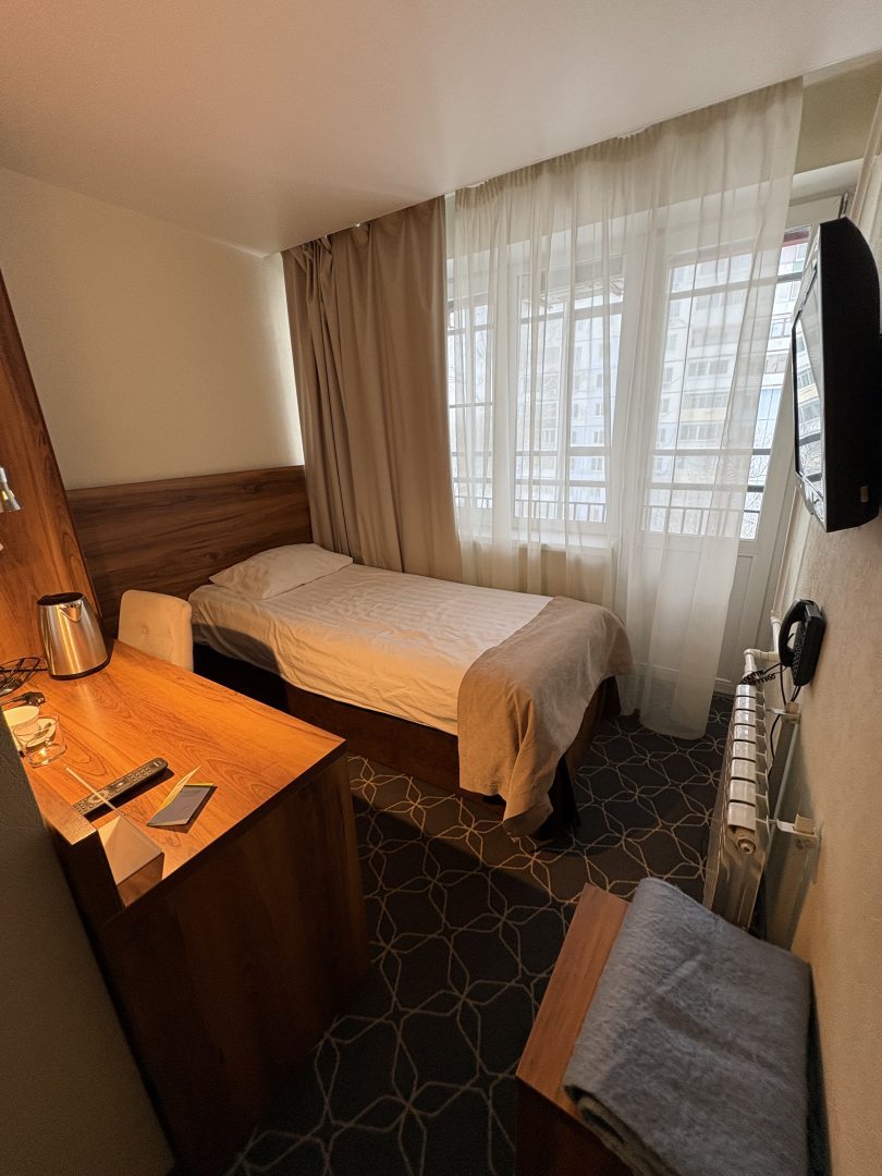 Отличная гостиница. Для кратковременного пребывания то что надо. Чистый номер. В номере всё есть. С парковеой автомобиля проблем не возникло, поставил прям возле гостиницы, абсолютно бесплатно. Рядом есть магазин Самбери. Приветливый персонал. Проживал одни сутки. После долгой дороги хорошо отдохнул.