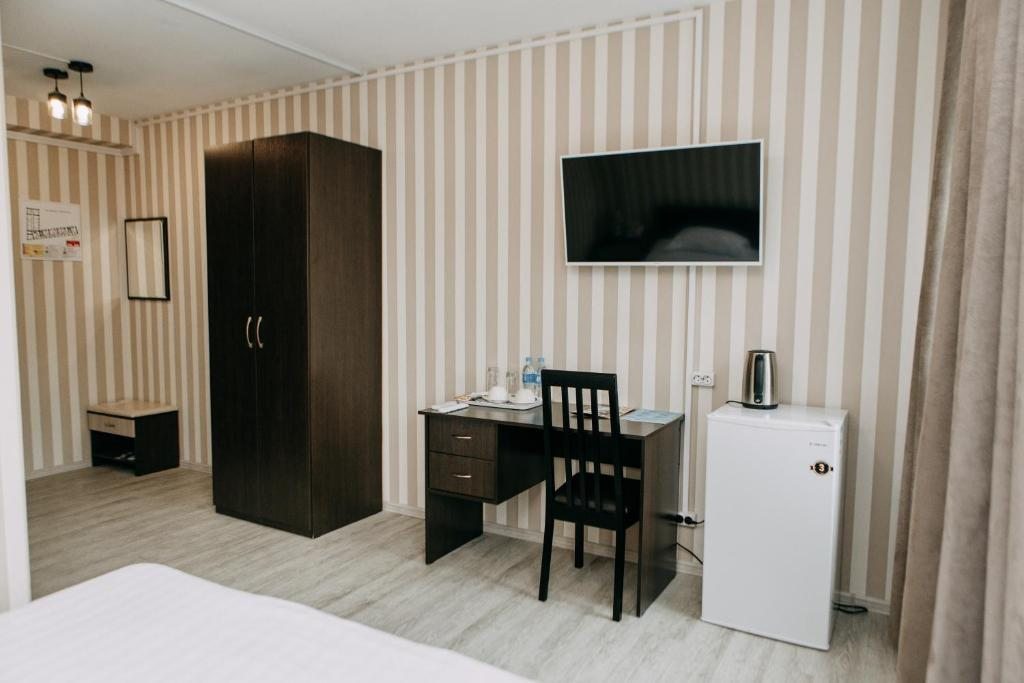 Хорошая гостиница. Ранним утром завезли и оставили там на хранении багаж, а после обеда заселились согласно бронированию. Номер был семейный. Всё чистое. Комфортно и тихо. Персонал вежливый и доброжелательный. Вода в бутылочках, чай, кофе, гигиенические наборы, тапочки в наличии. Рядом есть кафе "Мимино", где можно вкусно поесть. Автобусная остановка тоже рядом. Ездили на 8-ке в Центр микрохирургии. В номере муж все восхищался работой электрика, ну, это профессиональное. А мне литературное название понравилось. И символ гостиницы - тигрица Золотая Ригма из одноимённой повести - на картине в номере. Спасибо, мы довольны.
