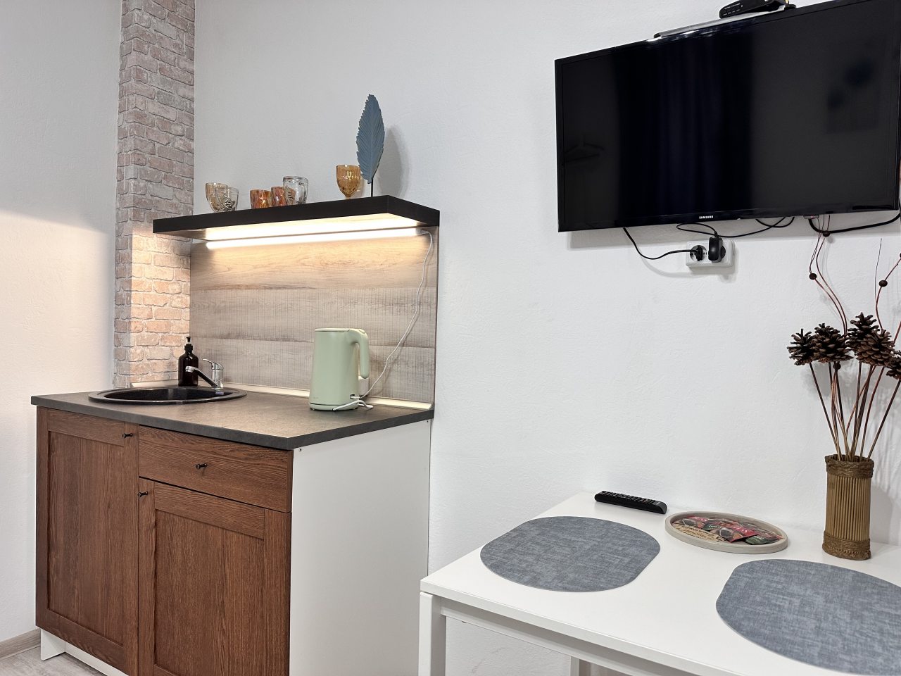 Выбирали мы исключительно по удобной для нас локации и цене. Апартаменты оказались с хорошим ремонтом, даже лучше, чем на фото. На кухне имелась вся посуда и техника, чтобы готовить с комфортом. В ванной комнате были гигиенические средства. Удобно, что не нужно покупать ту же бумагу. Хорошая локация. Рядом есть продуктовый рынок и магазин, а также остановка общественного транспорта.
