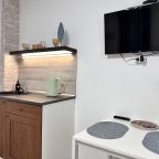 Апартаменты нам с женой понравились. Для комфортного проживания здесь есть всё необходимое. Техника и мебель в хорошем состоянии. Расположение неплохое, поблизости есть остановки, кафе.