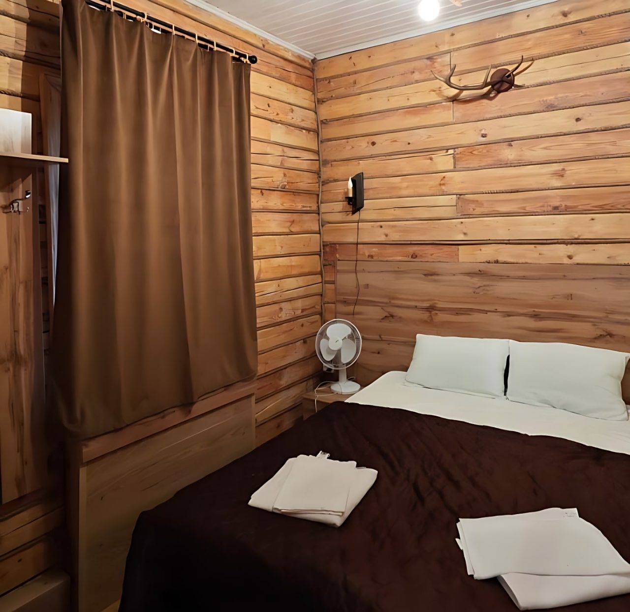 Гостям предлагают 10 номеров разной категории и домик. В спальнях кровати, кондиционер, телевизор и уютная атмосфера. На этаже общая ванная. В избе собственная душевая и обеденная зоны. По периметру работает сеть интернет, парковка.