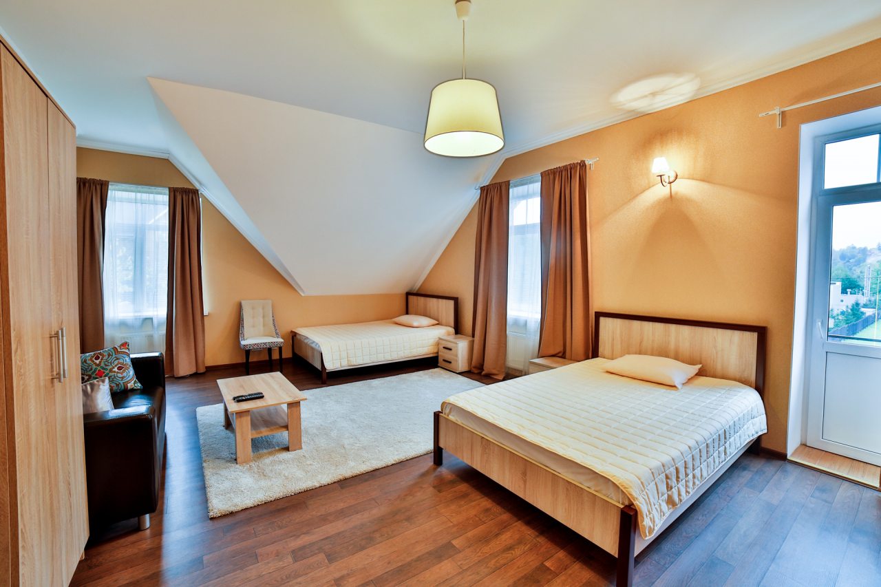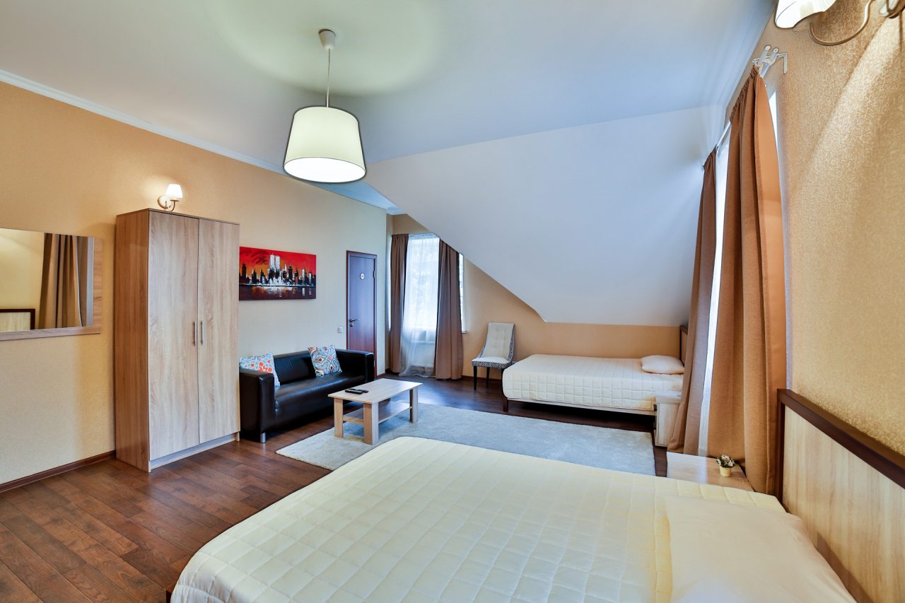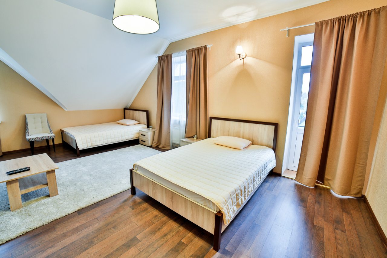 К размещению предлагаются номера категории стандарт, люкс. Каждый из представленных вариантов оснащен кроватью, ванной комнатой, мебелью, техникой. Есть доступ к сети Wi-Fi.