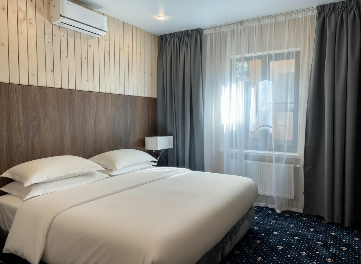 Большие чистые номера, шикарный тёплый бассейн под открытым небом. На завтраки есть фрукты, даже отечественное шампанское. Надёжная шумоизоляция.