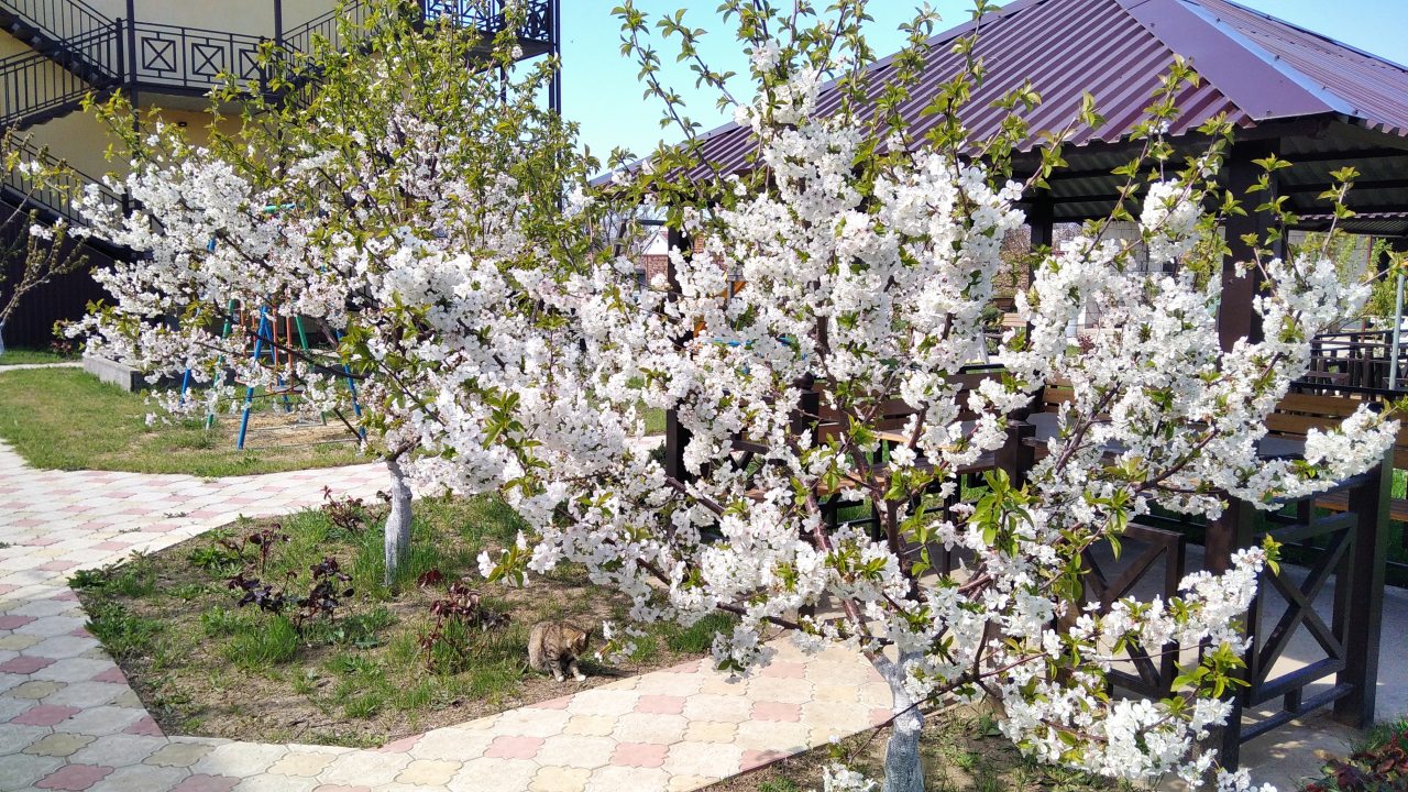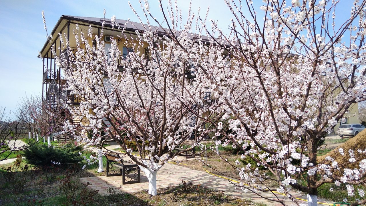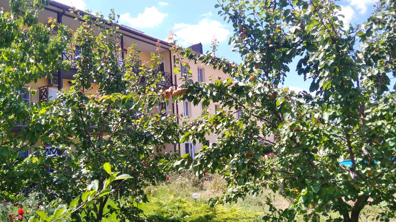 На территории расположен открытый бассейн, детская площадка, библиотека, бильярд, настольный теннис, большой фруктовый сад и зона для отдыха. Проводятся различные мастер-классы. В пешей доступности находятся общественный пляж, магазины и кафе. Расстояние до ближайшего международного аэропорта Керчь составит 28 км.