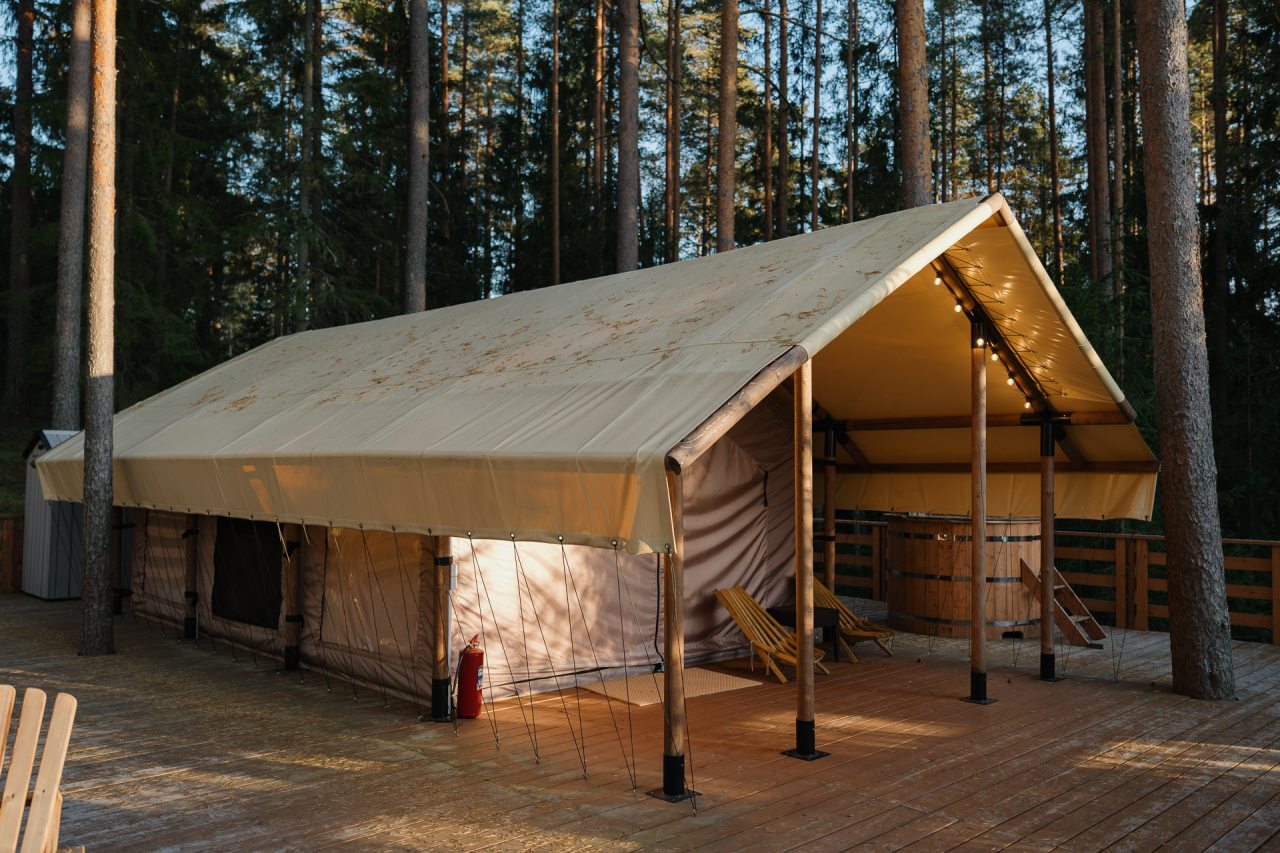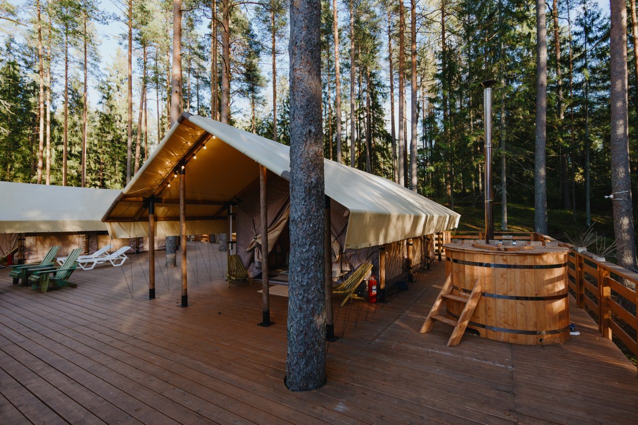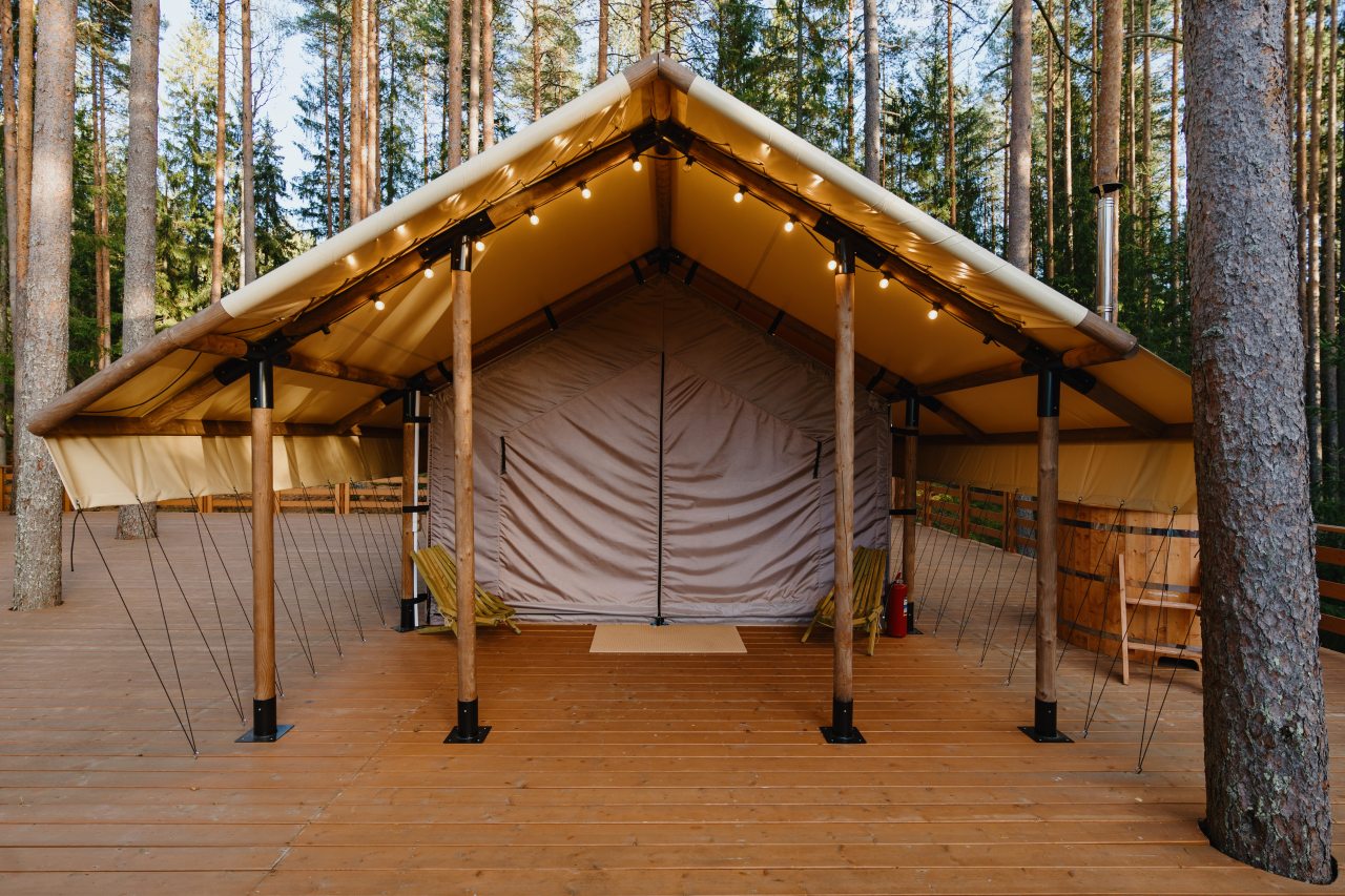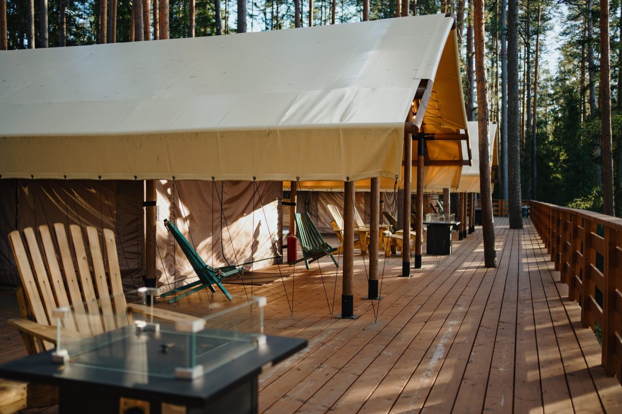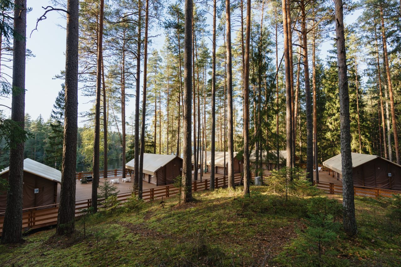 «Глэмп-отель Террасы» расположился в поселке Ильичёво Ленинградской области, на берегу живописного лесного озера Красавица. Глэмпинг сочетает в себе комфорт и единство с природой, предоставляя гостям красивые прогулочные места, тишину и спокойствие на свежем воздухе.