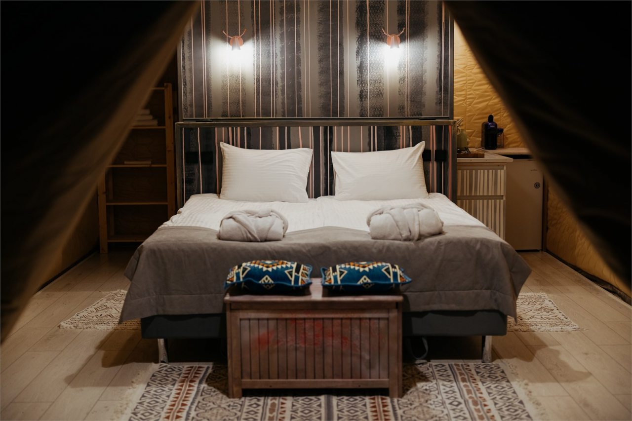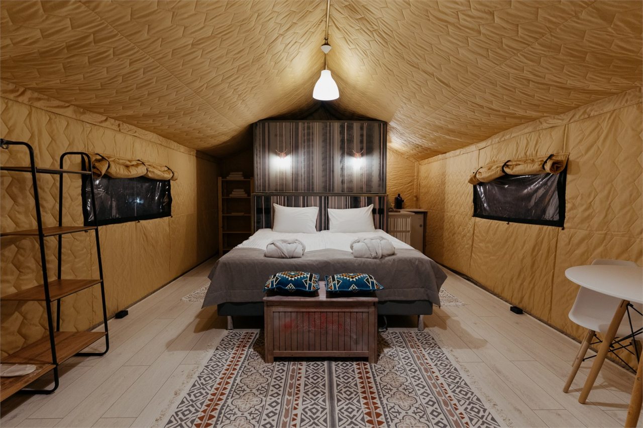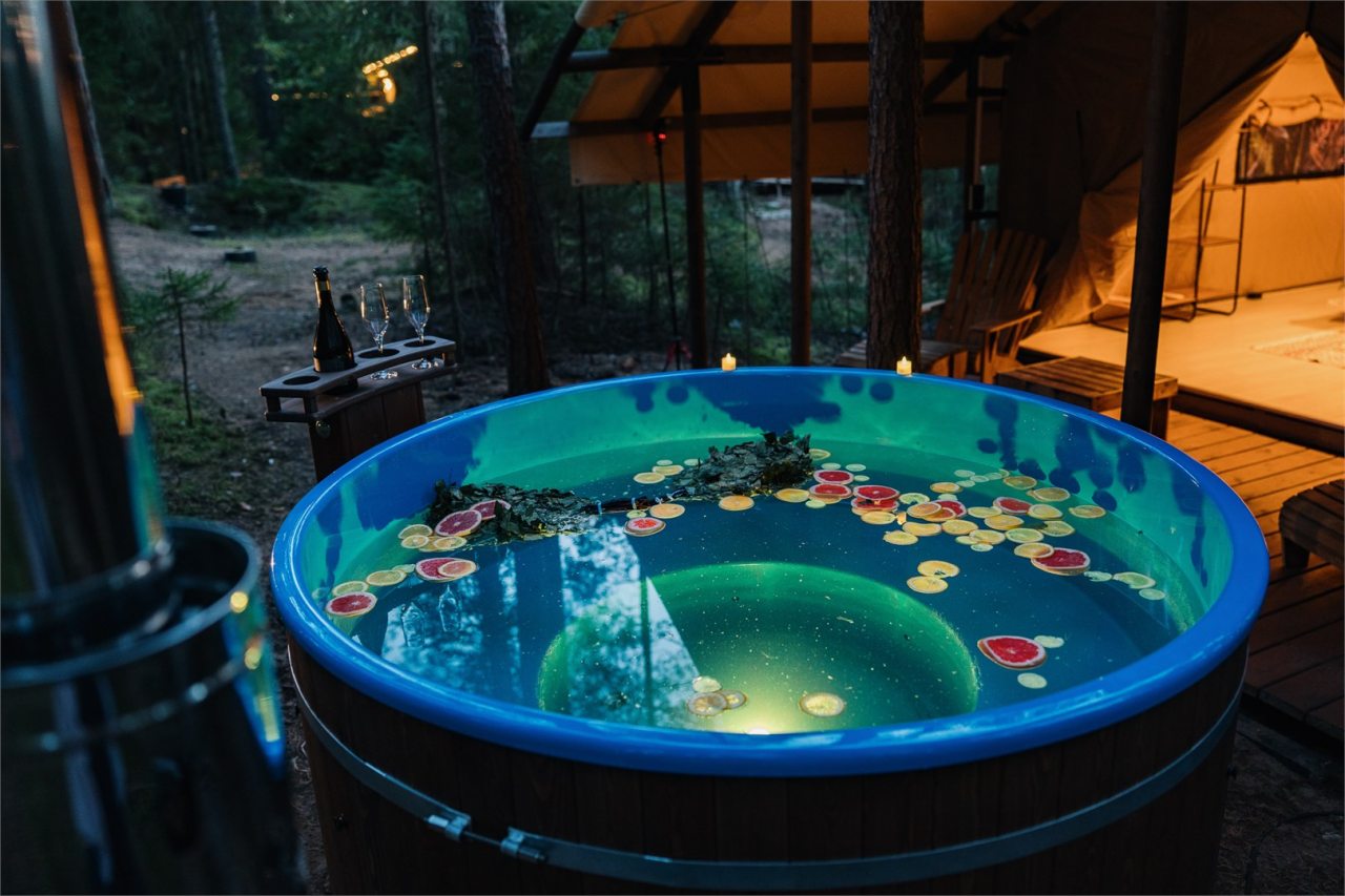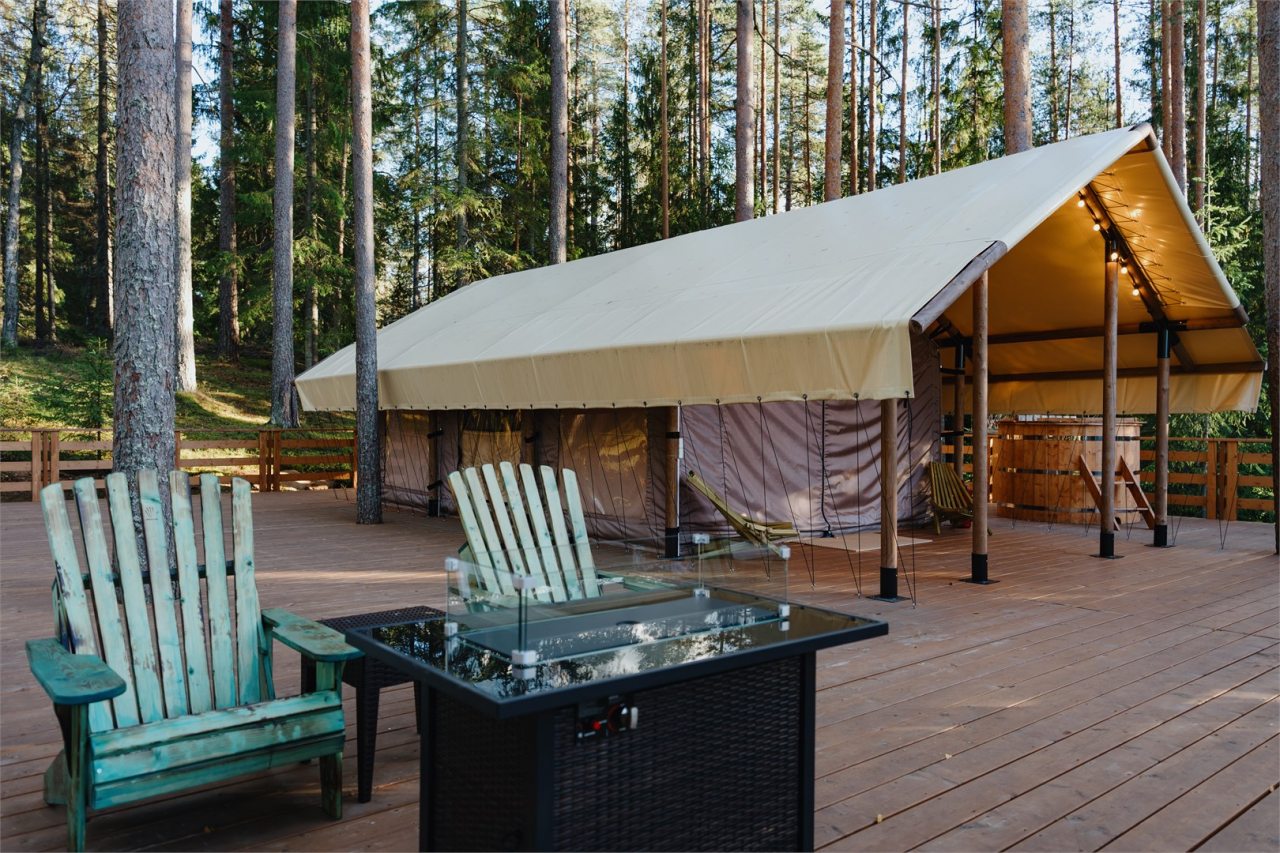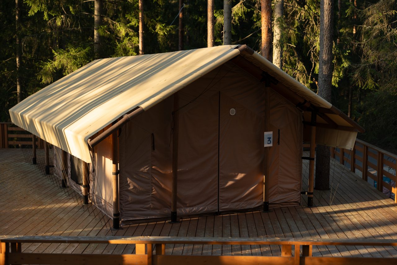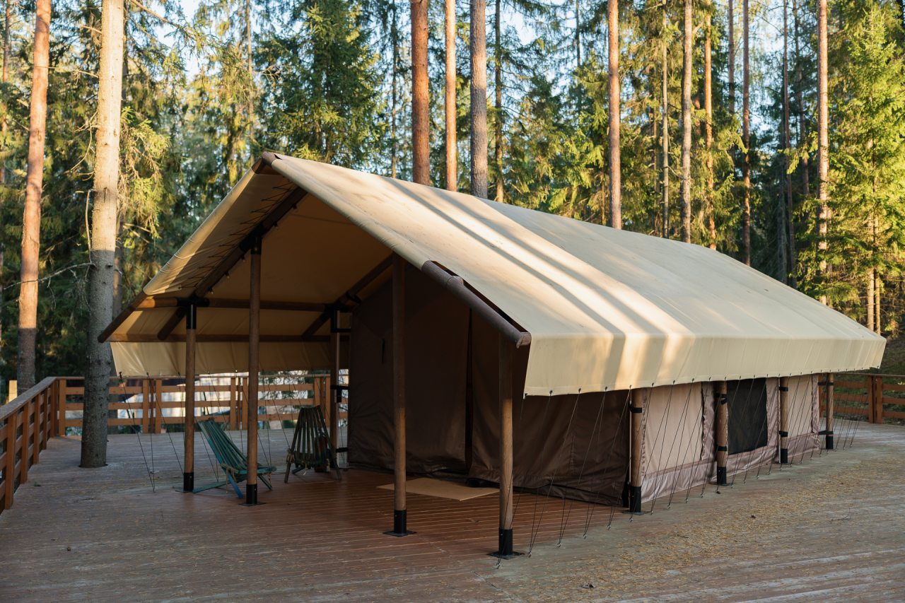 «Глэмп-отель Террасы» расположился в поселке Ильичёво Ленинградской области, на берегу живописного лесного озера Красавица. Глэмпинг сочетает в себе комфорт и единство с природой, предоставляя гостям красивые прогулочные места, тишину и спокойствие на свежем воздухе.