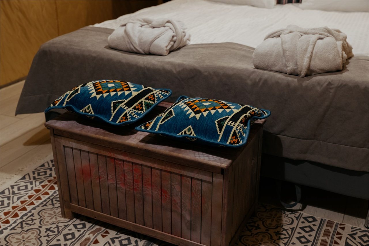 Проживать предлагается как в коттеджах, так и в бунгало или апартаментах. Внутри созданы все условия для комфортабельного отдыха. Предлагается воспользоваться большой кроватью, сейфом для ценных вещей, тумбами, а также ванной комнатой с душевой кабиной, индивидуальными тапочками, водонагревателем и средствами гигиены. Гостям предоставляется доступ к беспроводному Wi-Fi.