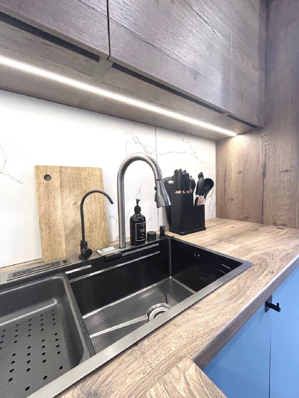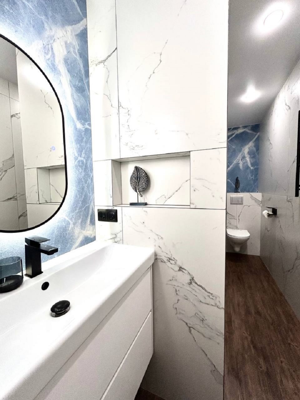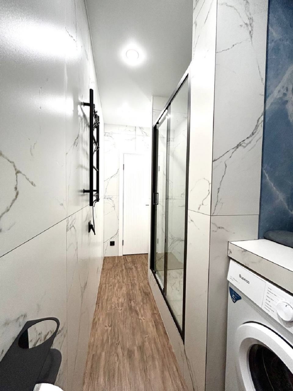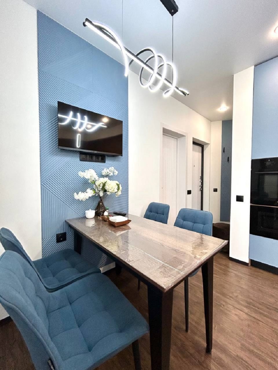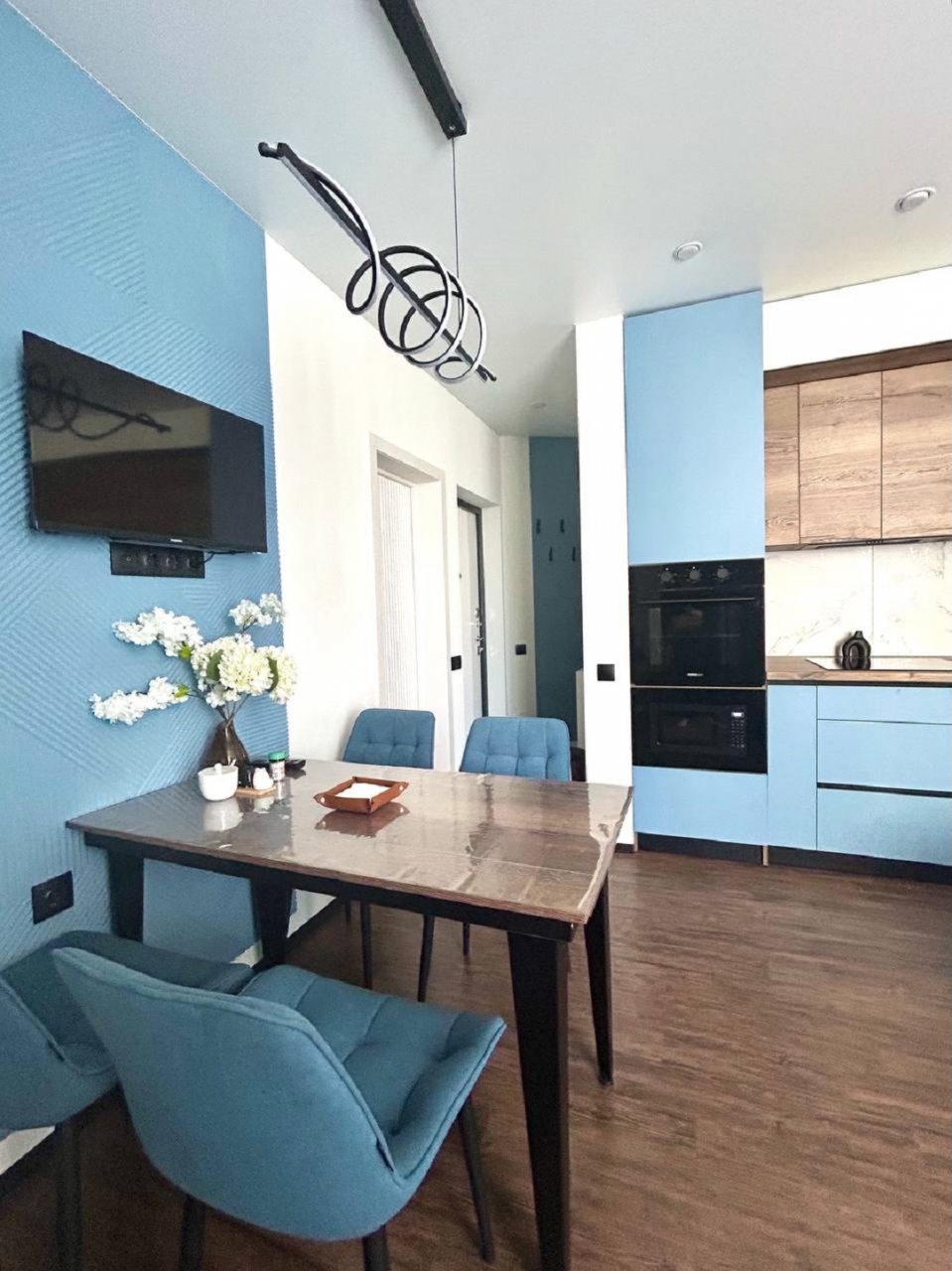 Стильные, уютные и мягкие апартаменты). Почти вся мебель мягкая: диван, стулья, кровать. Остальная мебель удобная и новая. Техника без поломок, работает хорошо. Кухонная зона большая и чистая. Санузел очень интересно выполнен. Вблизи апартаментов аптеки, магазины, кафе.