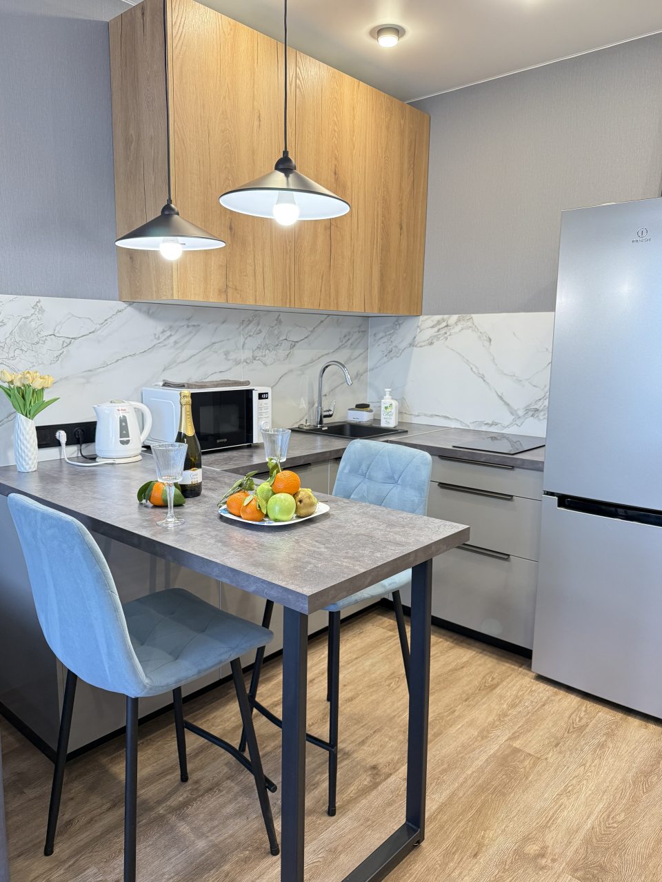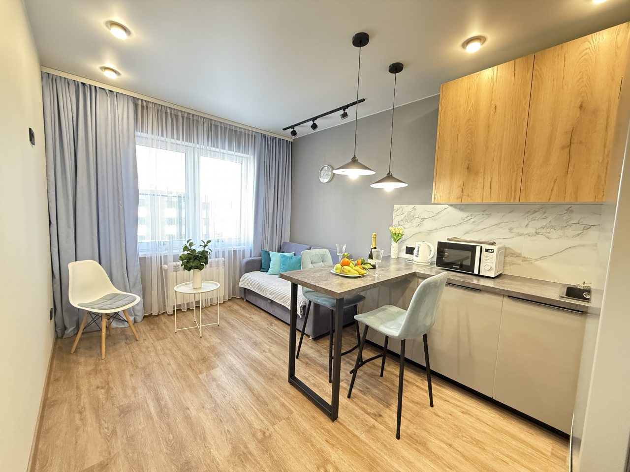 Очень понравилось. Чисто, красиво, приятно, удобное местоположение, самолётов почти не слышно, все есть. Мебель и техника в идеальном состоянии. Очень понравился дизайн, стильно. Всё удобно, замечательное отношение. Легко.