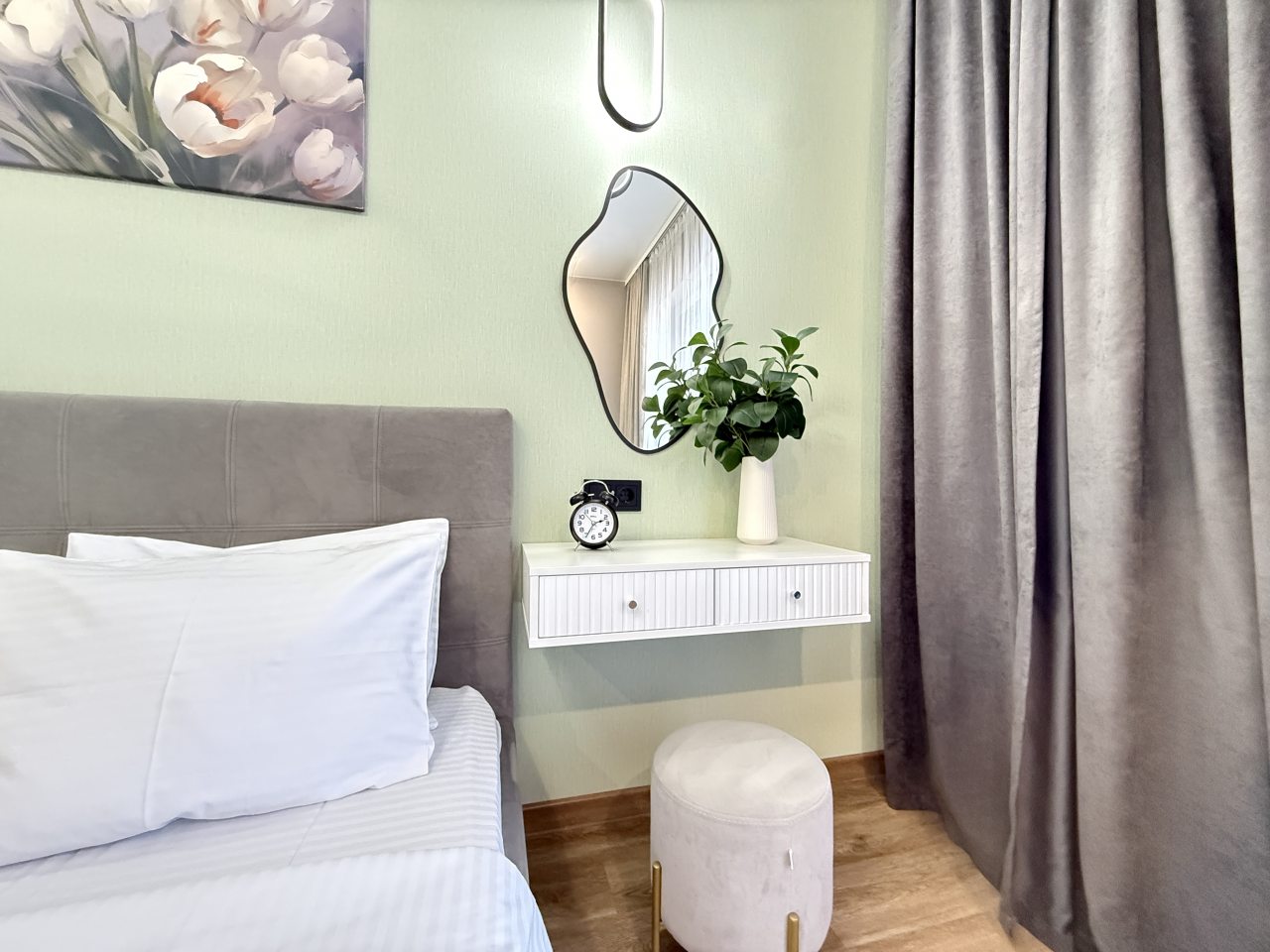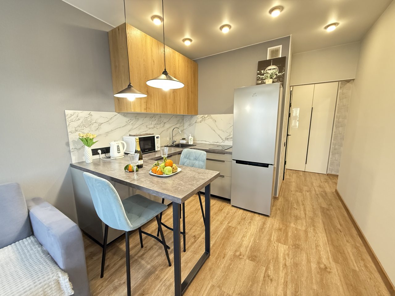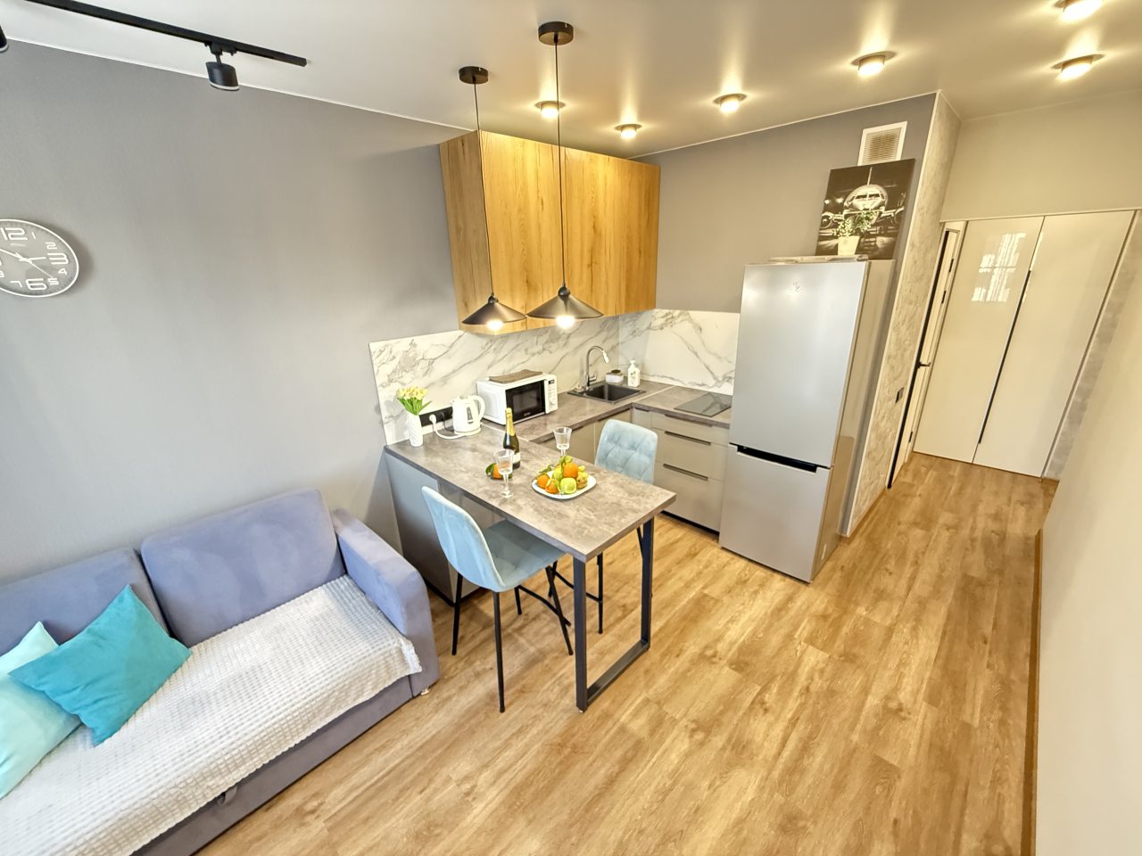 Оперативность заселения — всё было готово к нашему приезду, инструкции чёткие. Чистота безукоризненная, и это сразу создаёт ощущение уюта. Квартира светлая, просторная и не загромождена вещами. Близость к аэропорту — огромный плюс, особенно для раннего вылета. Район спокойный, и даже вечером спокойно прогуляться. Хозяева отзывчивые и на связи.