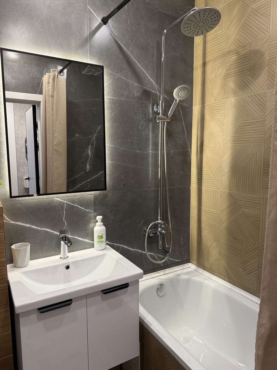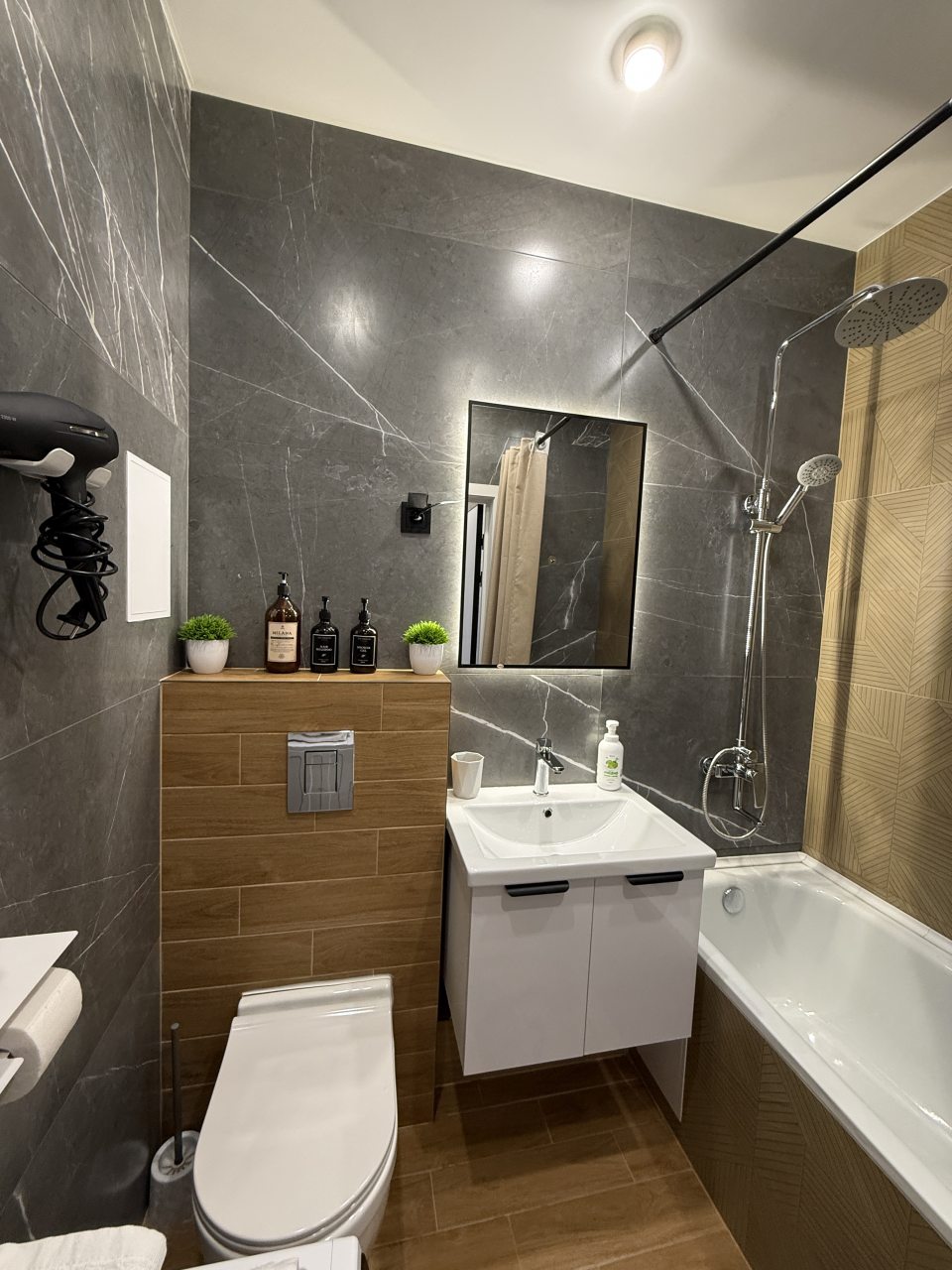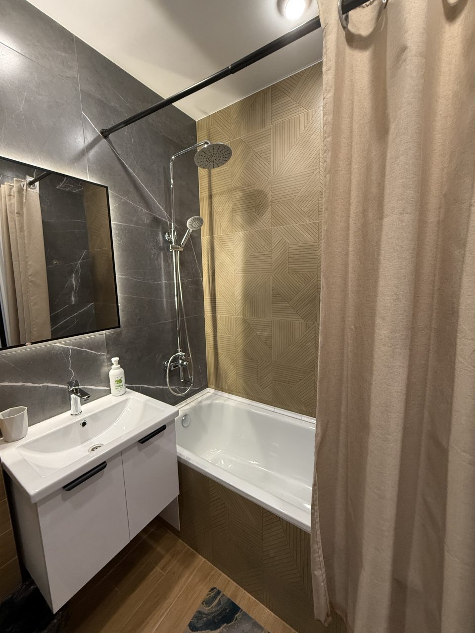 Из недостатков: в душе не было полочки для шампуня — приходилось ставить на пол.