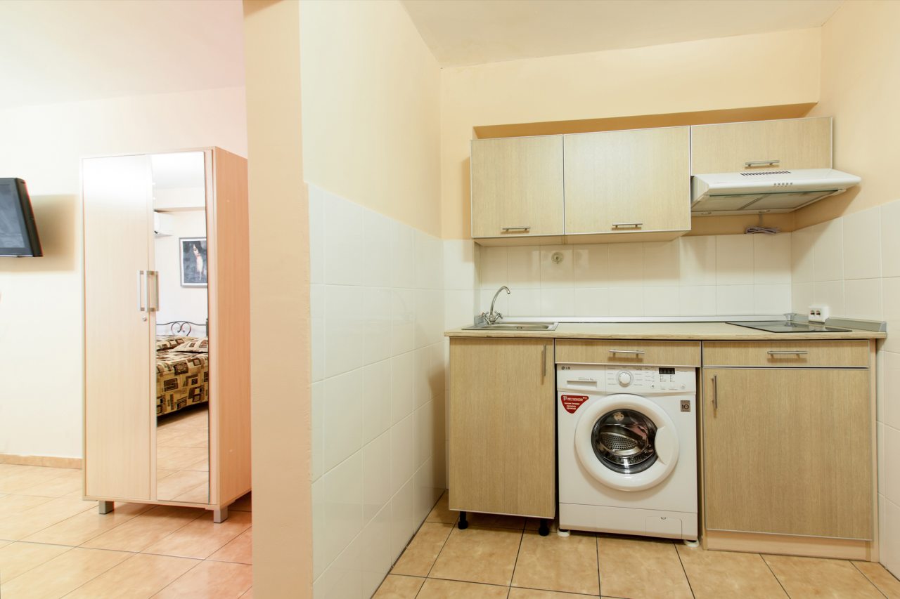 Для размещения предлагаются комфортабельные студии, которые оборудованы всем необходимым для проживания и отдыха, например: удобными спальными местами, кондиционером, телевизором и др. Санузел укомплектован качественной сантехникой.
