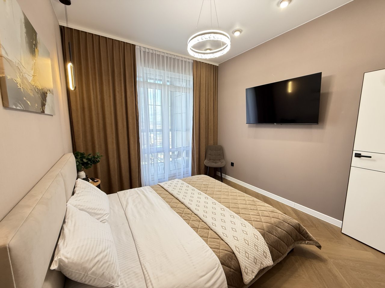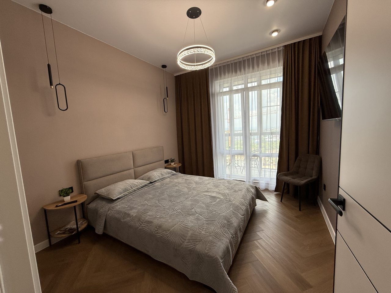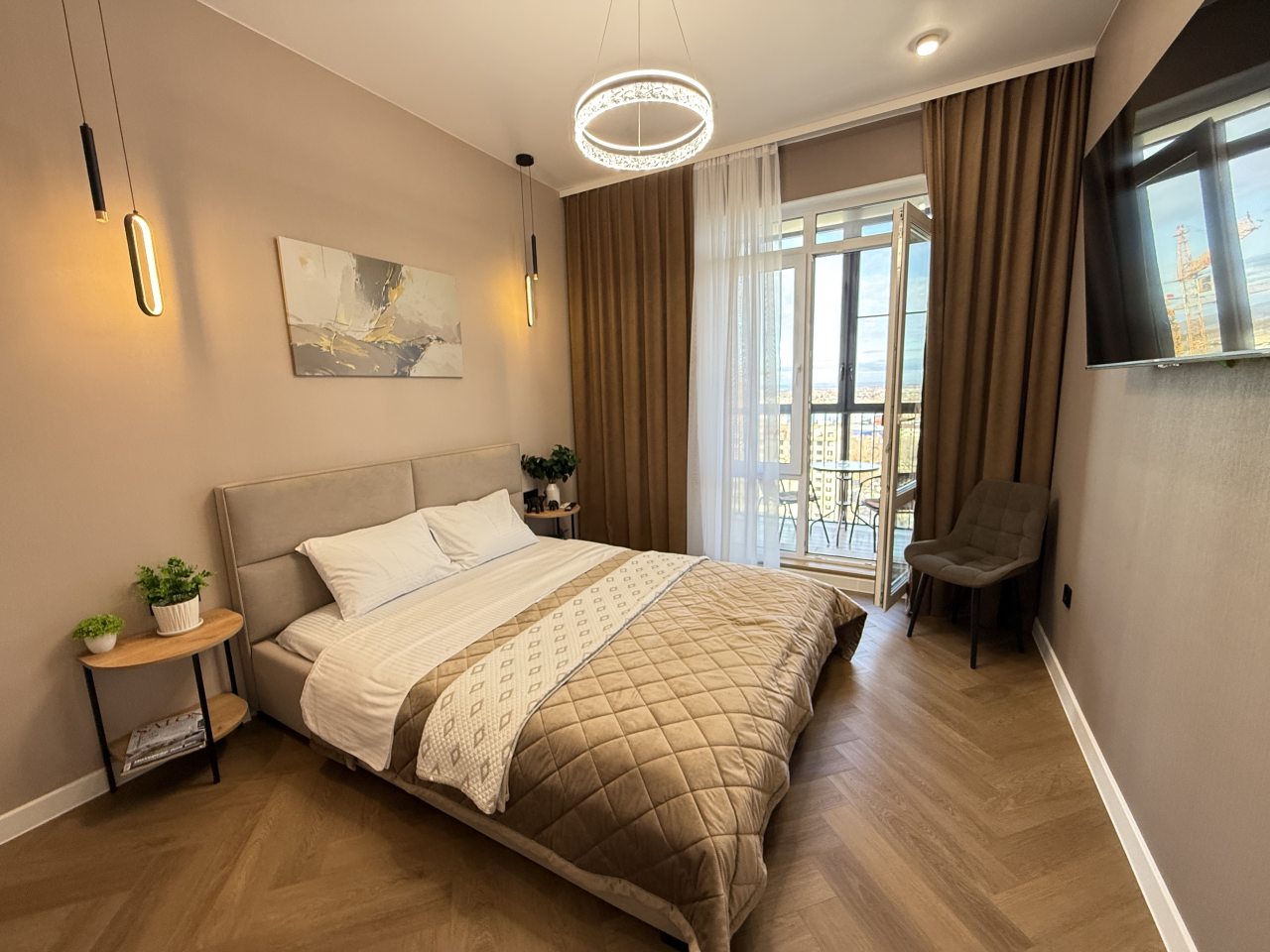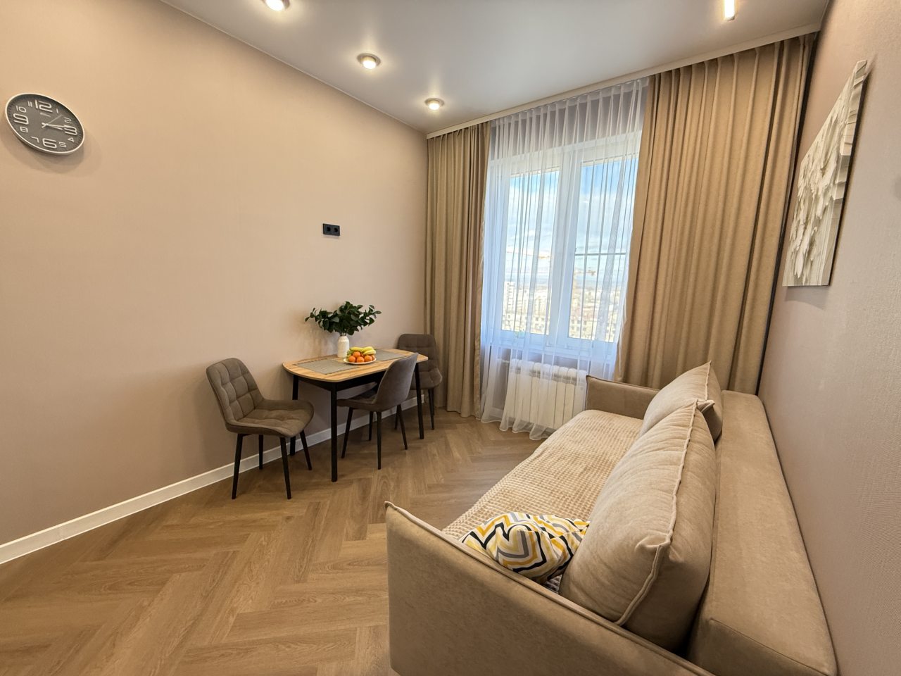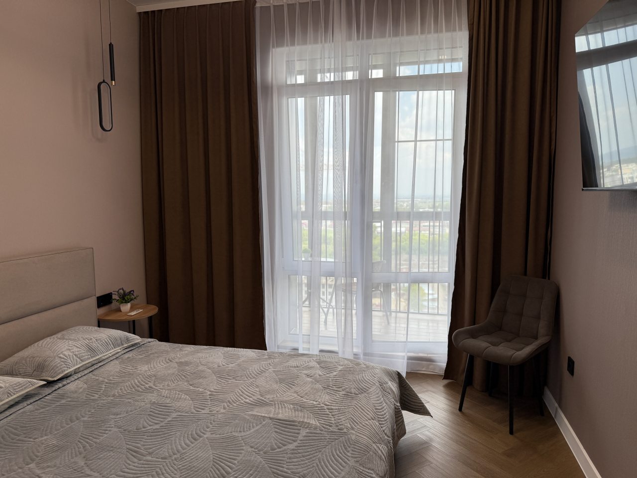 На просторной площади в 40 квадратных метров продумана каждая деталь для вашего удобства, включая кровать с мягким изголовьем, современные и стильные источники освещения, телевизор с различными онлайн-кинотеатрами, доступ в интернет, большой шкаф-купе с зеркалом в полный рост, стиральную машину и утюг с гладильной доской. В ванной вы найдете все необходимое: от фена до туалетно-косметических средств.