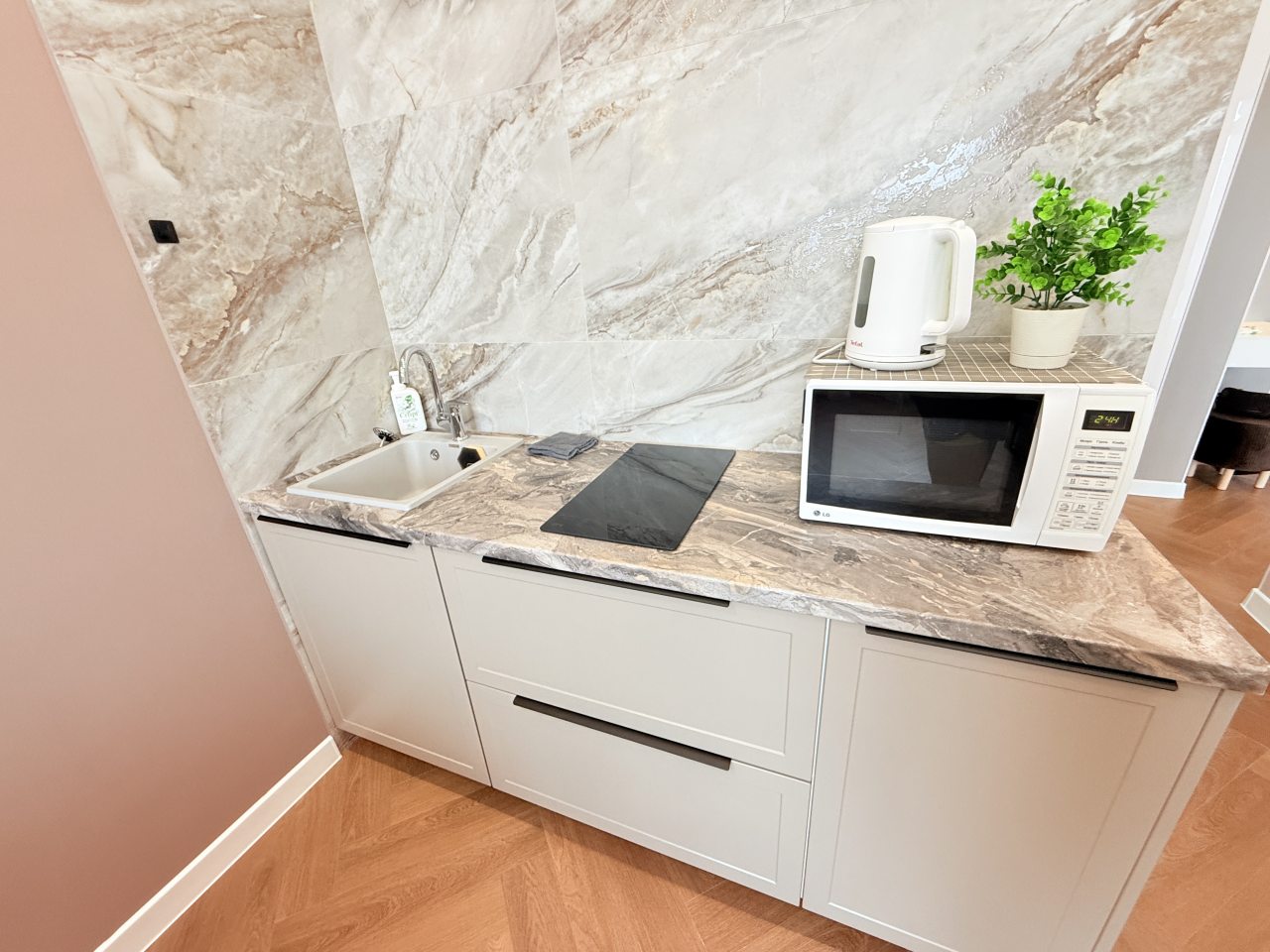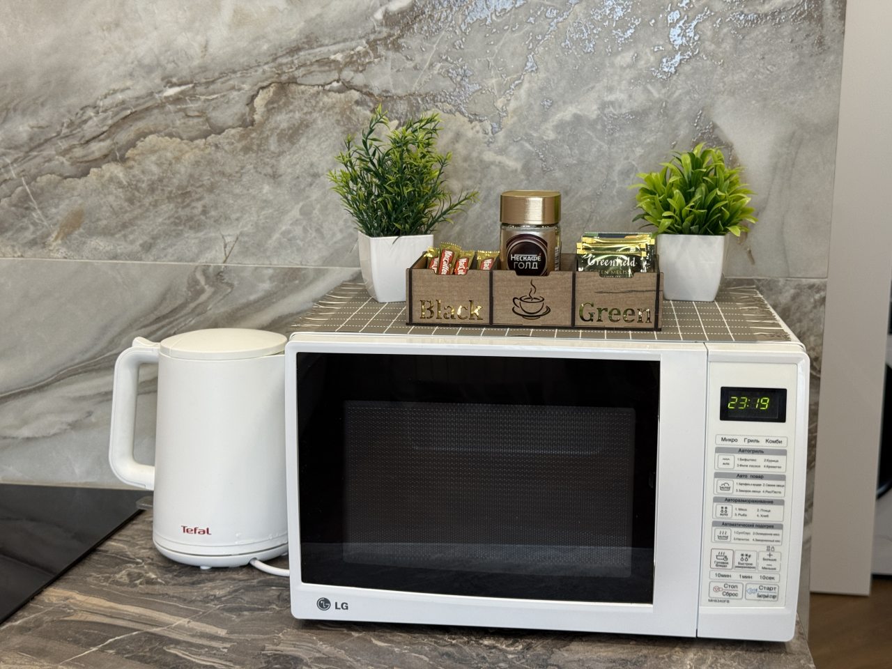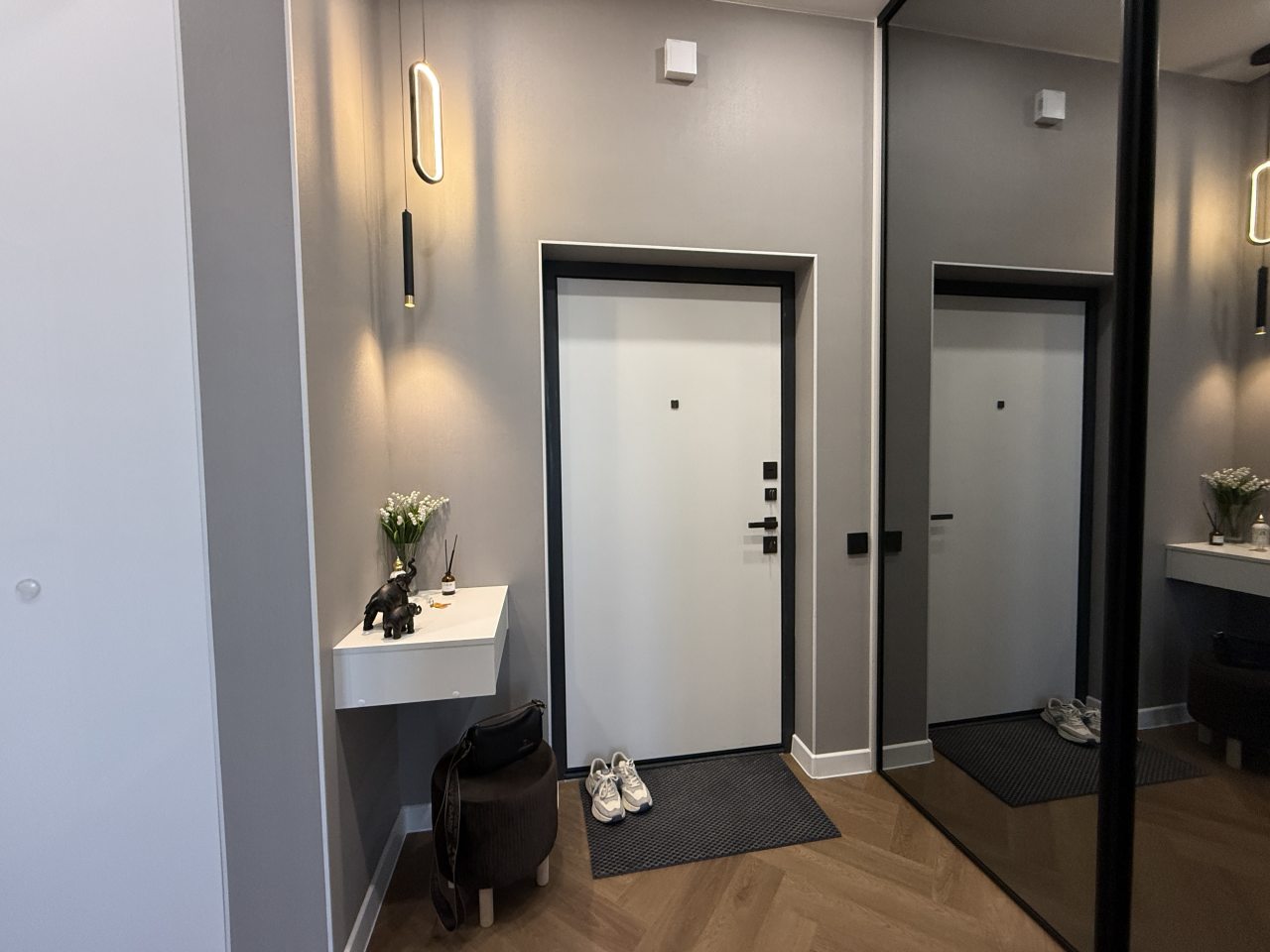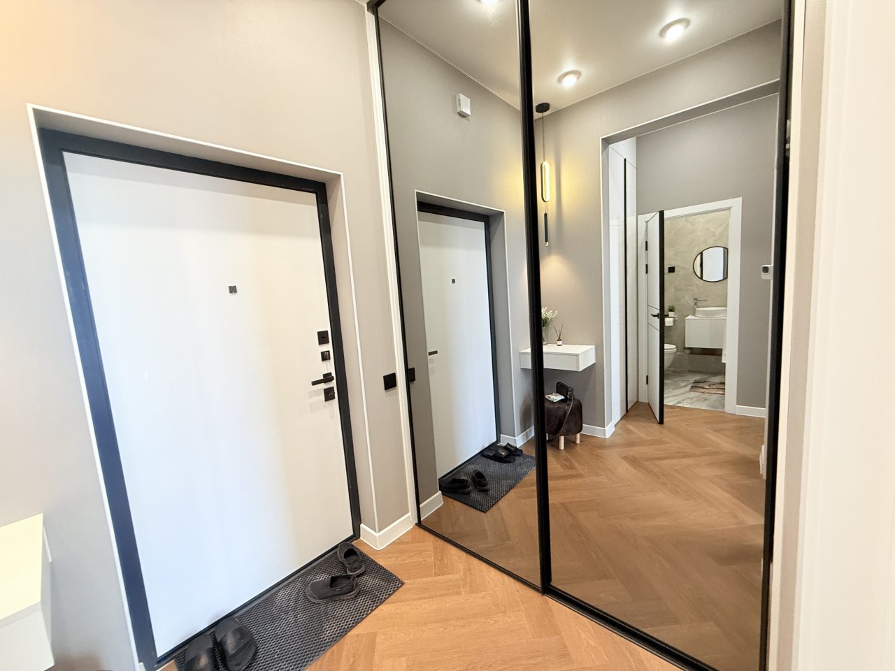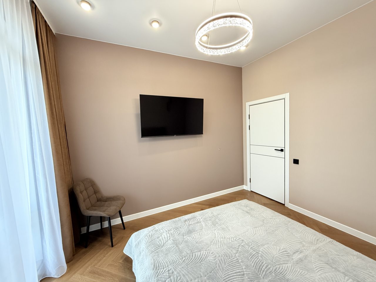 На просторной площади в 40 квадратных метров продумана каждая деталь для вашего удобства, включая кровать с мягким изголовьем, современные и стильные источники освещения, телевизор с различными онлайн-кинотеатрами, доступ в интернет, большой шкаф-купе с зеркалом в полный рост, стиральную машину и утюг с гладильной доской. В ванной вы найдете все необходимое: от фена до туалетно-косметических средств.