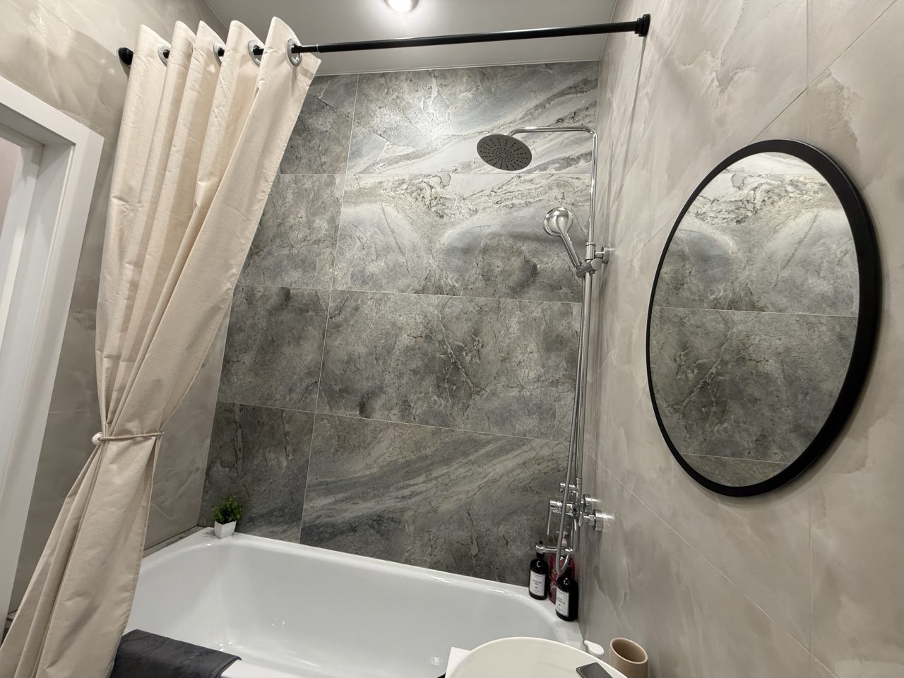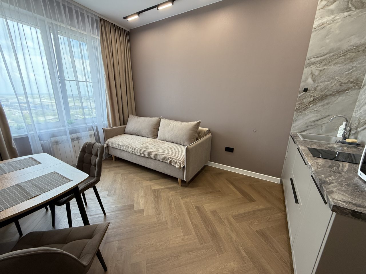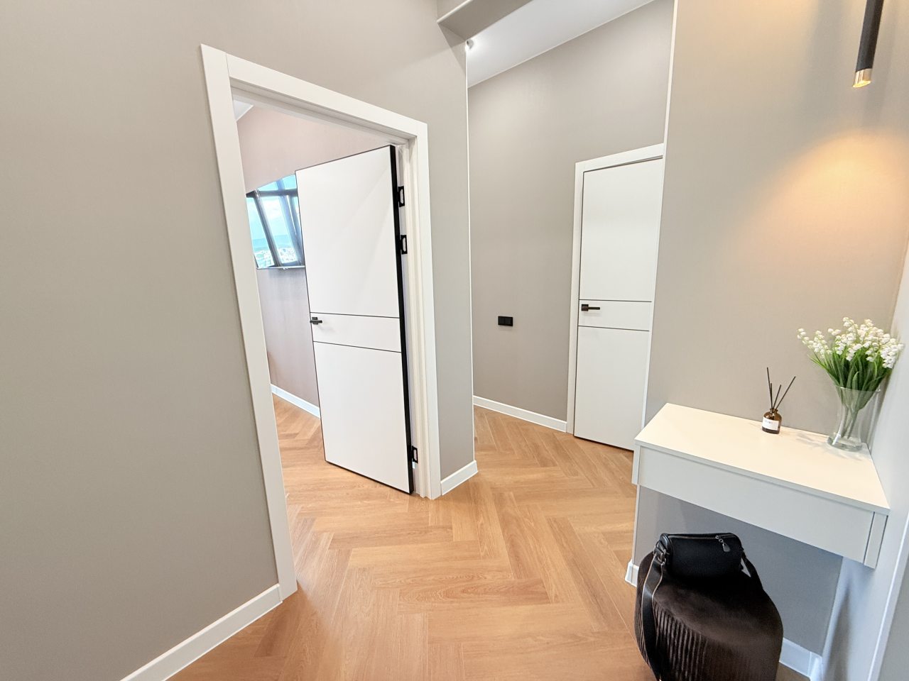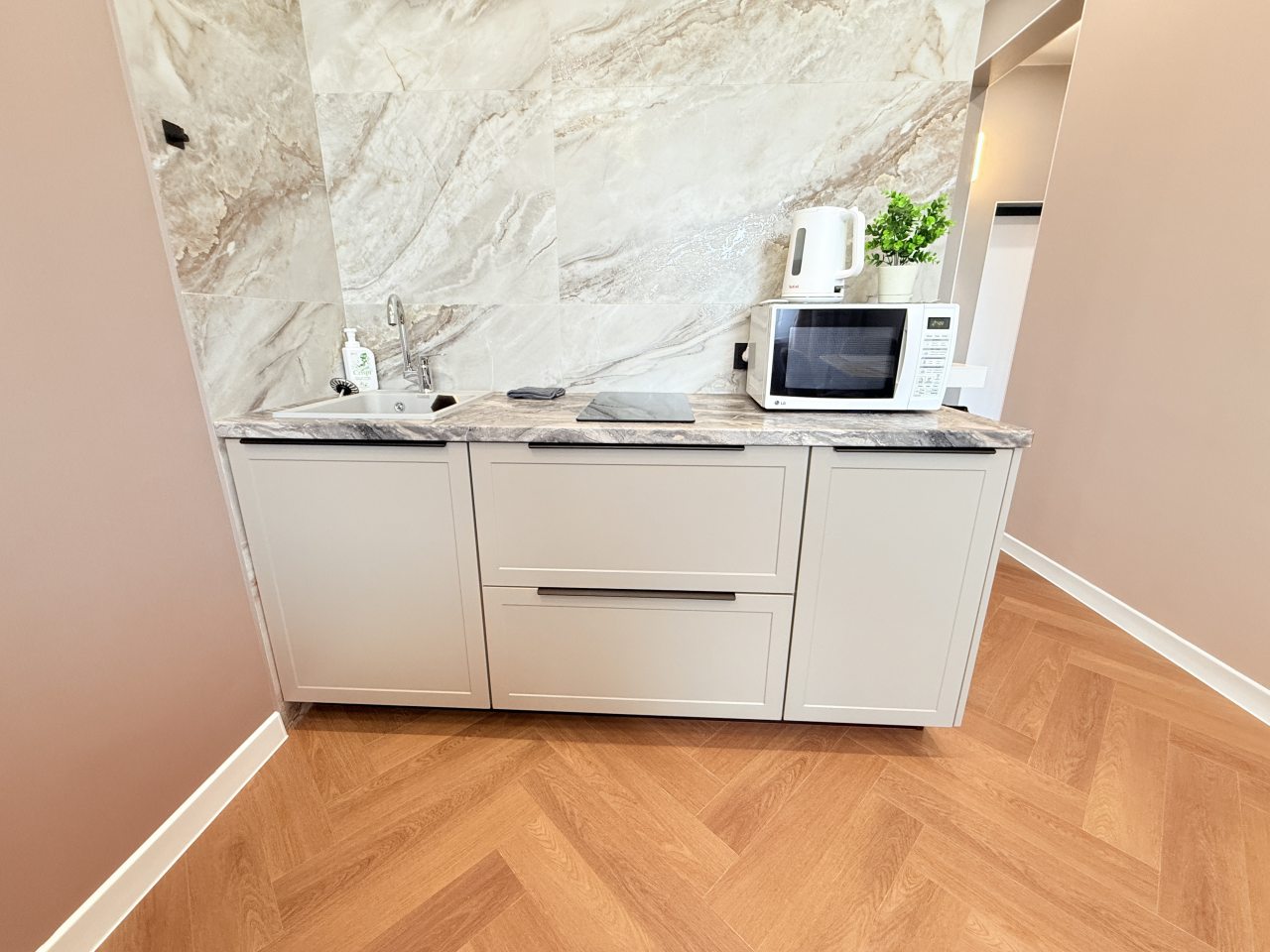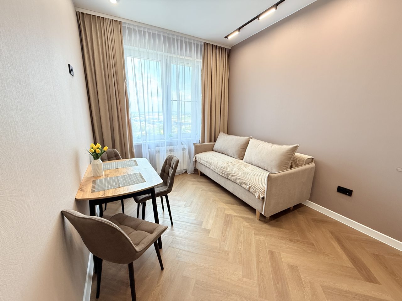 На просторной площади в 40 квадратных метров продумана каждая деталь для вашего удобства, включая кровать с мягким изголовьем, современные и стильные источники освещения, телевизор с различными онлайн-кинотеатрами, доступ в интернет, большой шкаф-купе с зеркалом в полный рост, стиральную машину и утюг с гладильной доской. В ванной вы найдете все необходимое: от фена до туалетно-косметических средств.
