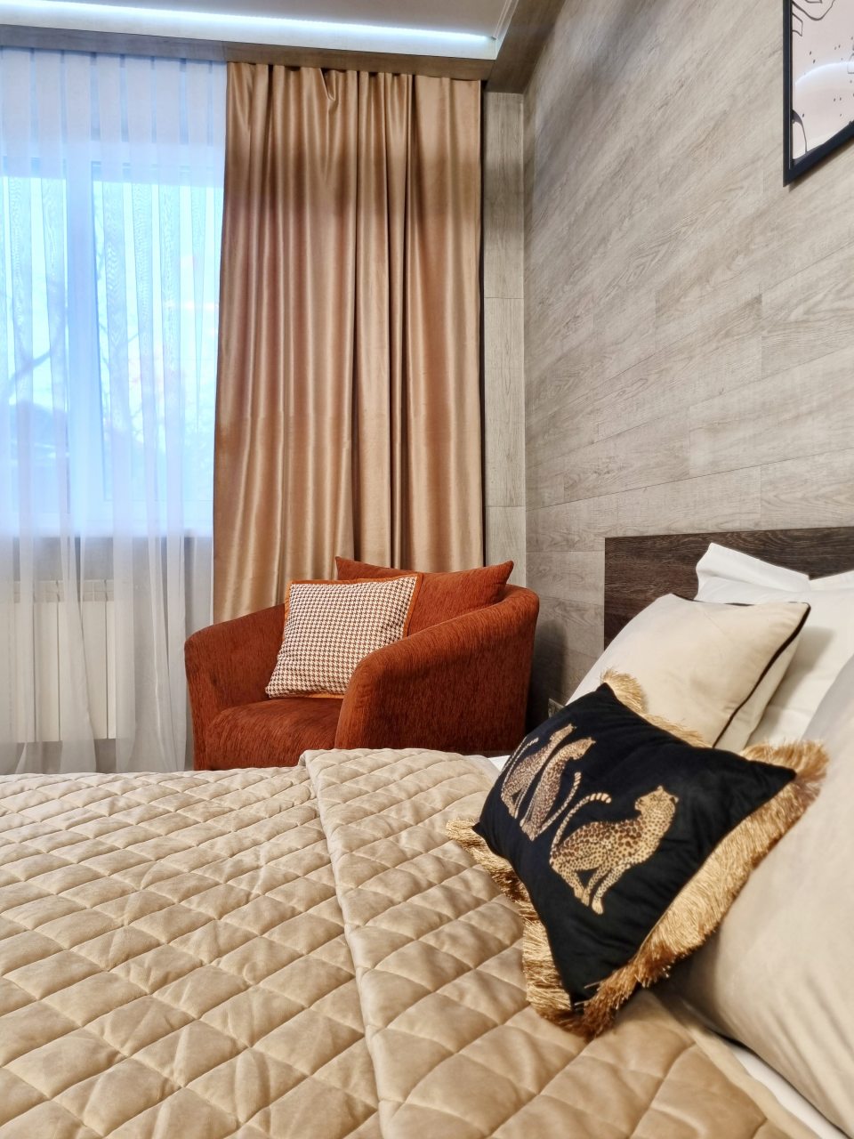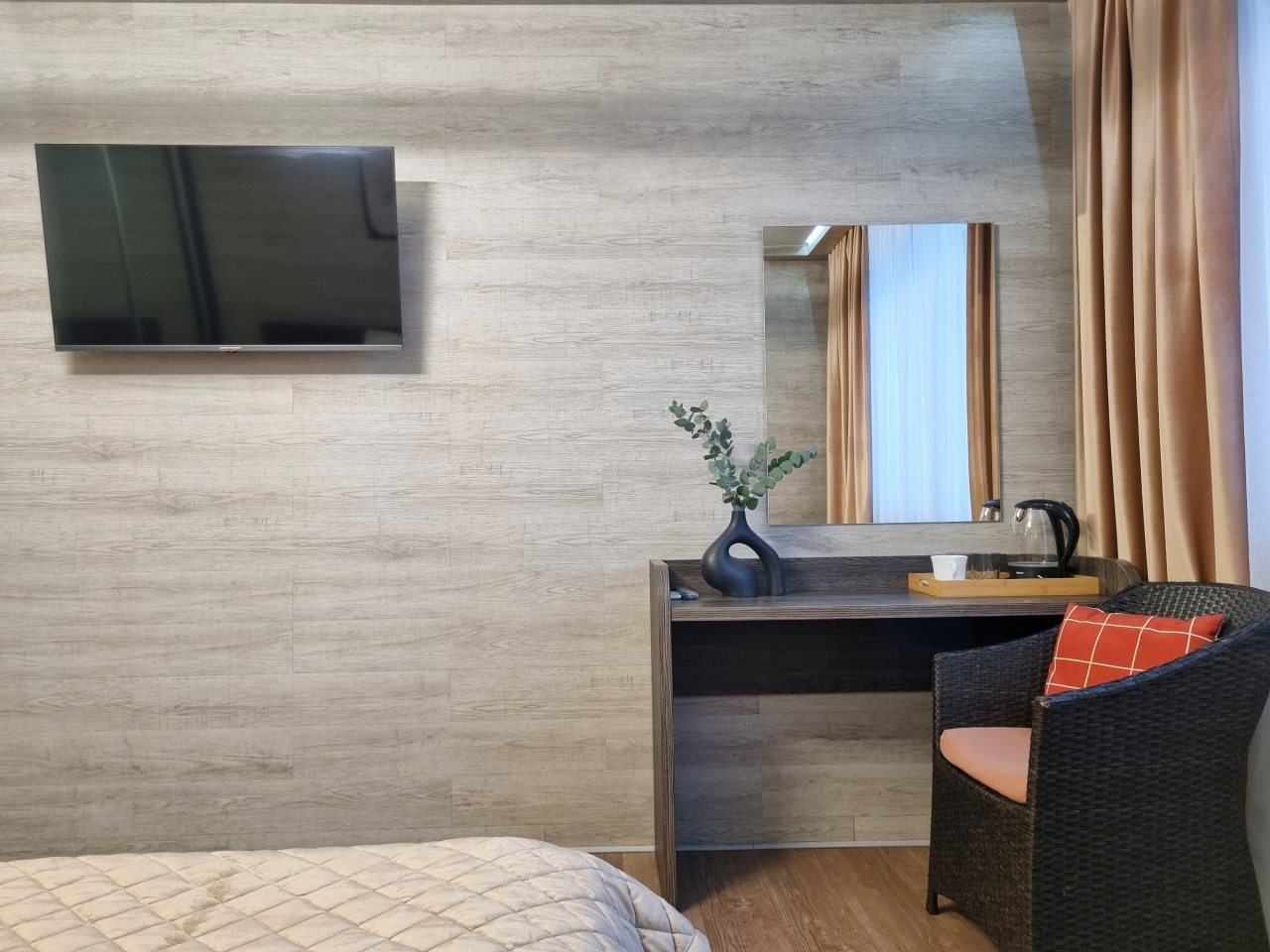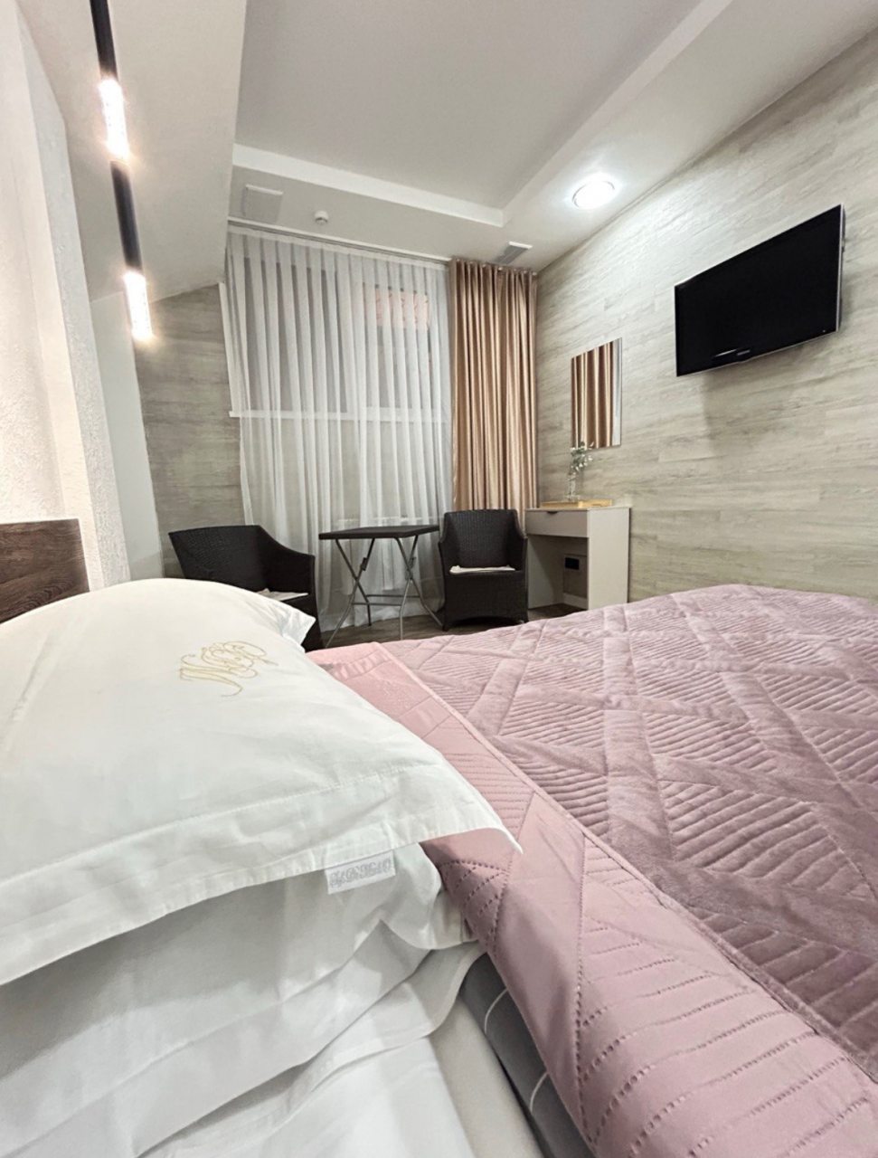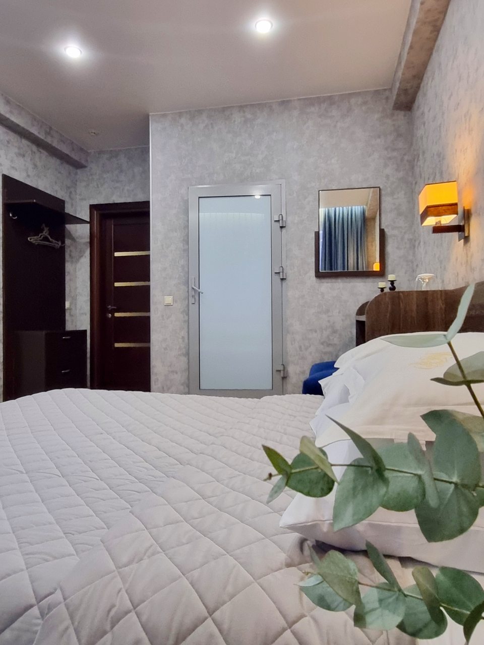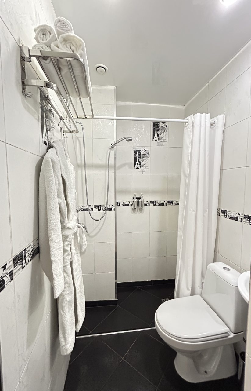 Номер чистый, без посторонних запахов, постельное бельё качественное и чистое, в номере санузел с душем.