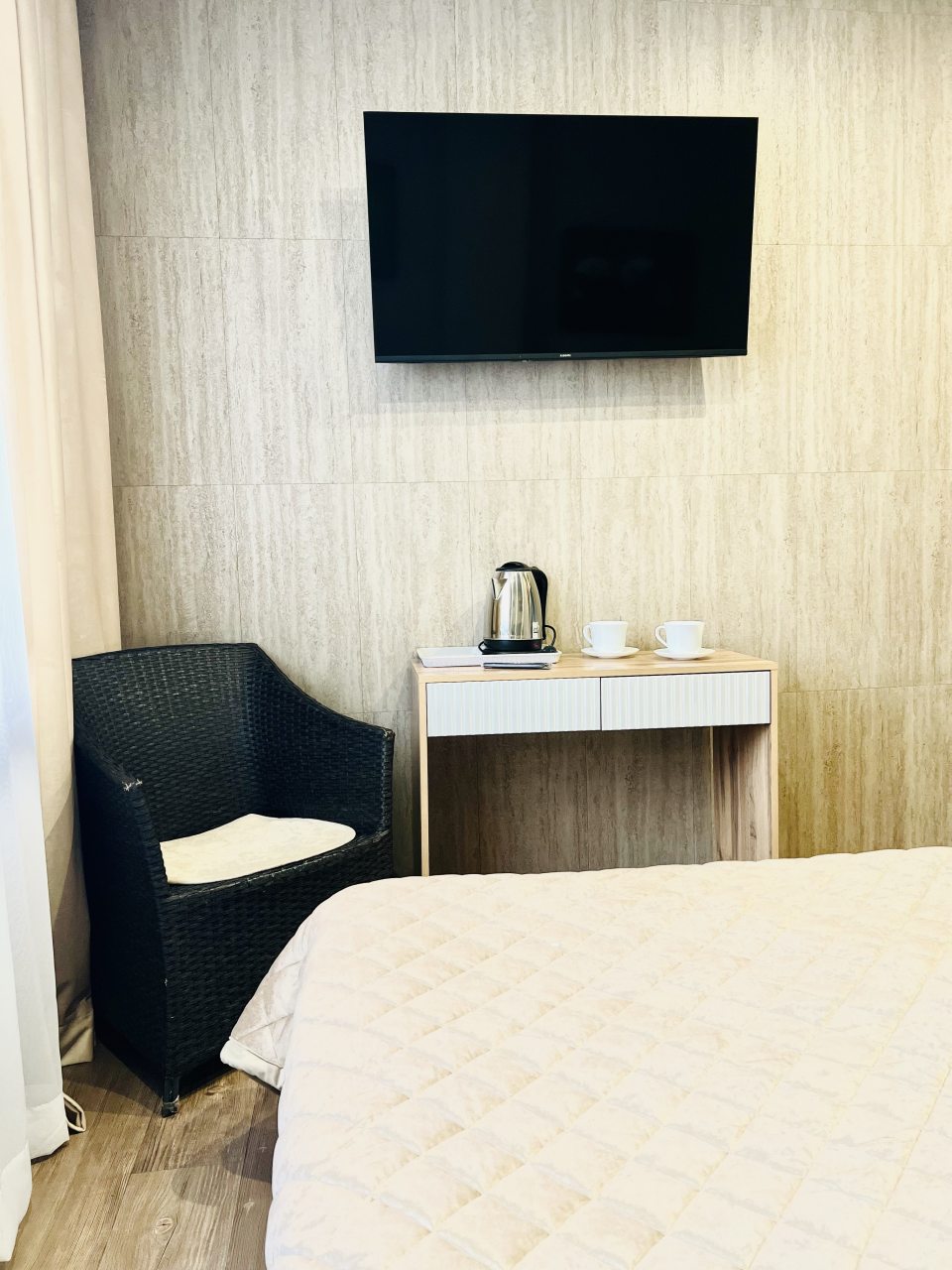 Из недостатков: обычно в гостиницах есть туалетный набор (гель для душа, шампунь). Здесь было только мыло.