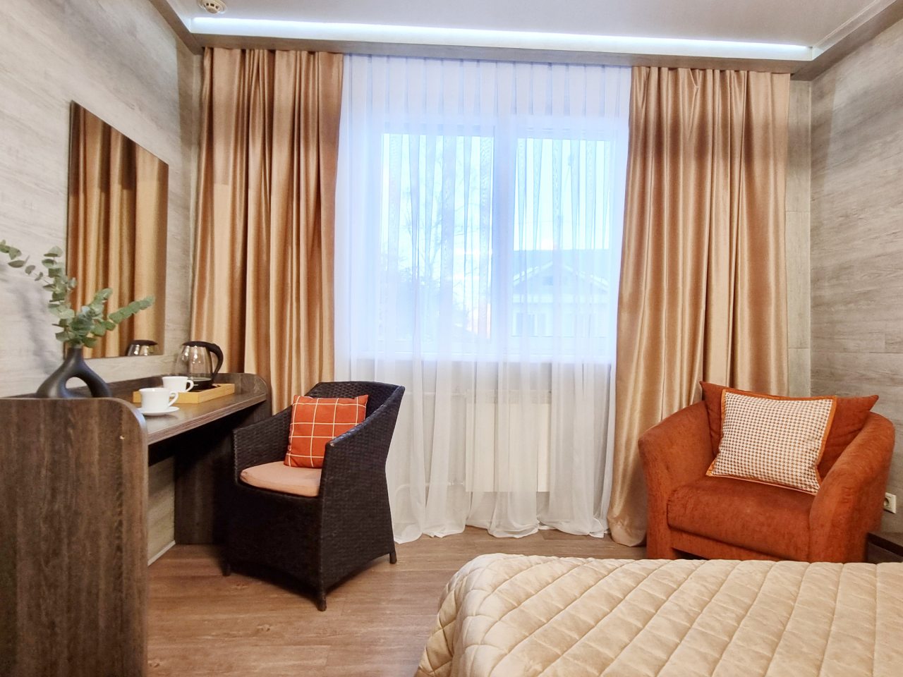 Гостиница расположена рядом с железнодорожным вокзалом. Это очень удобно. Заселение прошло быстро. В номере тепло и чисто. Персонал радушный, отзывчивый. Нас, как туристов, все устроило.