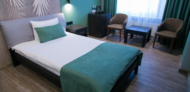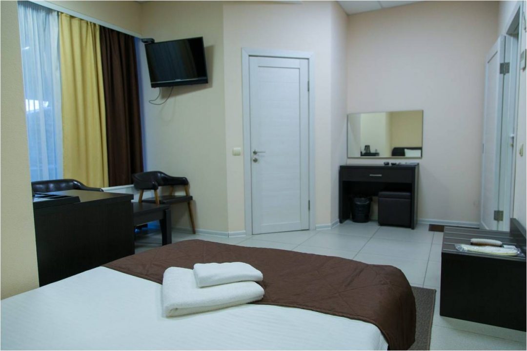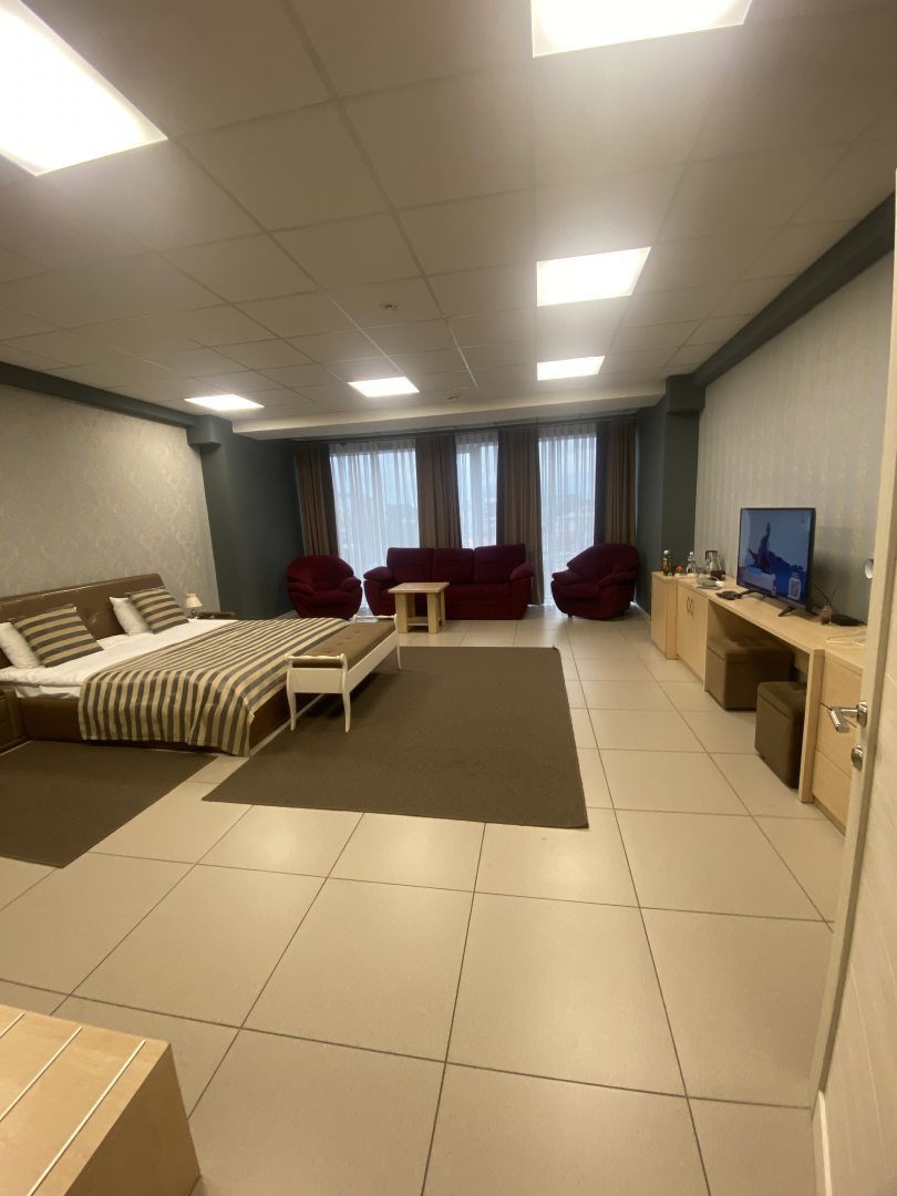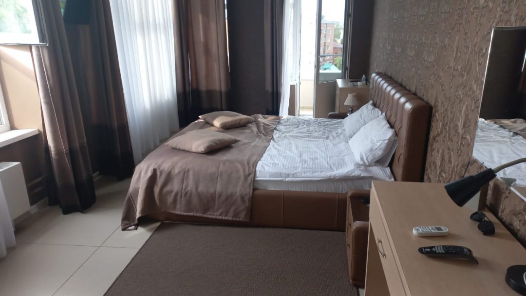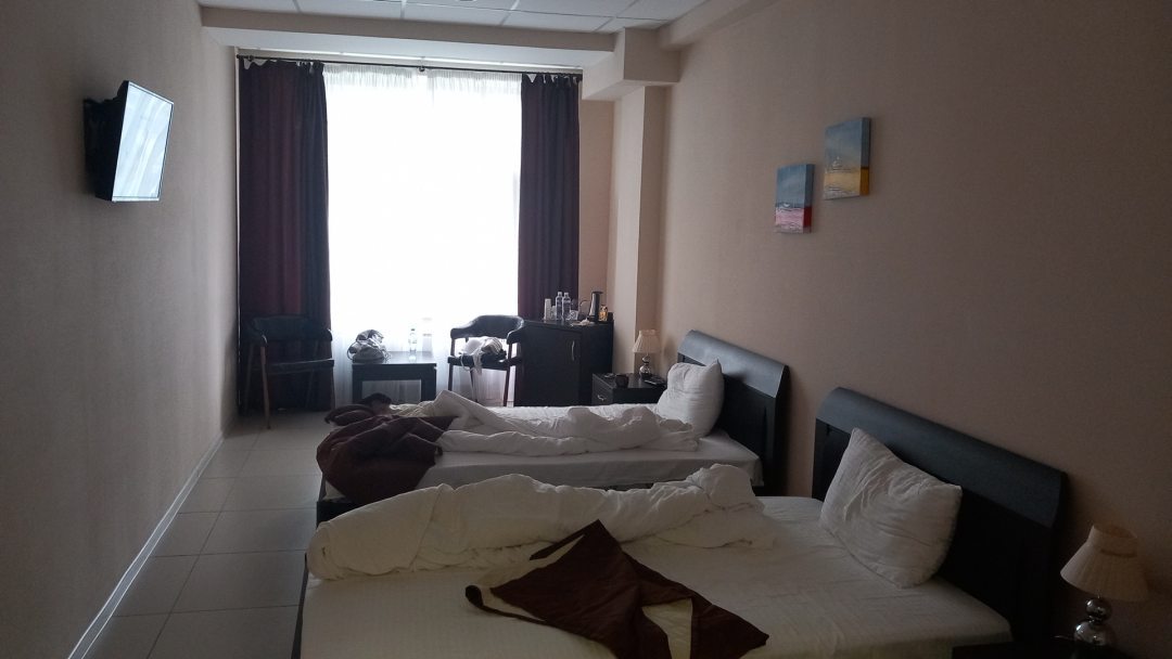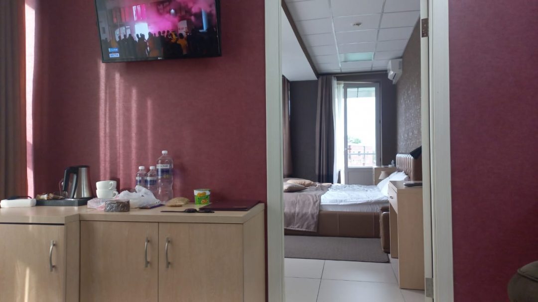 Отель расположен в центре, недалеко от верхней набережной. Рядом магазины, очень удобно. Жили в номере Люкс двухкомнатном, в котором из 4х ламп светила только одна и на 2 телевизора 1 пульт включения. Мебель хорошая, удобная. Прибирались ежедневно к этому претензий нет, каждый день водичка в бутылочках.