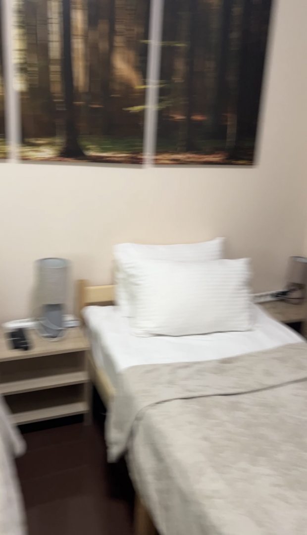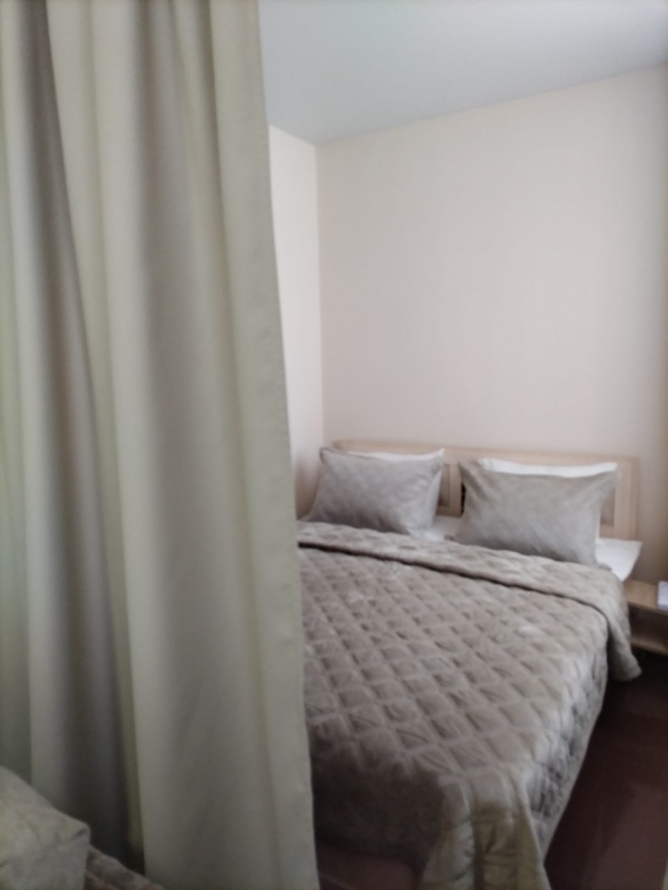 Номер на троих большой, в нем двуспальная кровать, отдельно односпальная и диван. Качество кроватей очень хорошее: в меру жесткие, упругие. Спали мы превосходно.