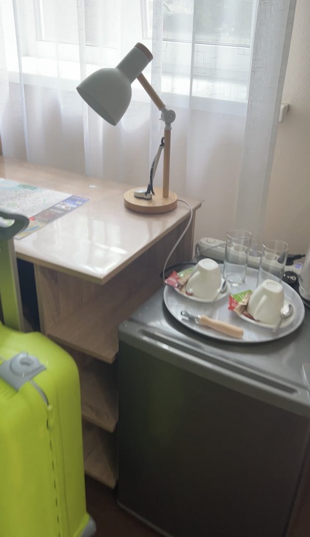 Останавливаюсь не первый раз. Небольшой отель с очень удобным расположением! В небольших, но уютных номерах очень чисто. Сантехника , абсолютно, новая и чистая. Администратор очень внимательная, готовая всегда придти на помощь! Питания нет, но есть кофемашина и микроволновка. Бесплатно). Очень рекомендую для людей, которым не требуются золотые унитазы, а требуется с удобством переночевать в центре города (можно не одну ночь))).