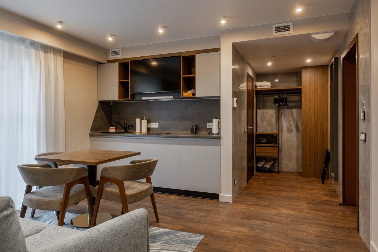 В номерах есть электрочайник, мини-бар. Для гостей отеля и местных жителей на первом этаже работает ресторан «Komorebi». В меню представлена современная кухня по нетривиальным рецептам и бар с уникальной безалкогольной картой.