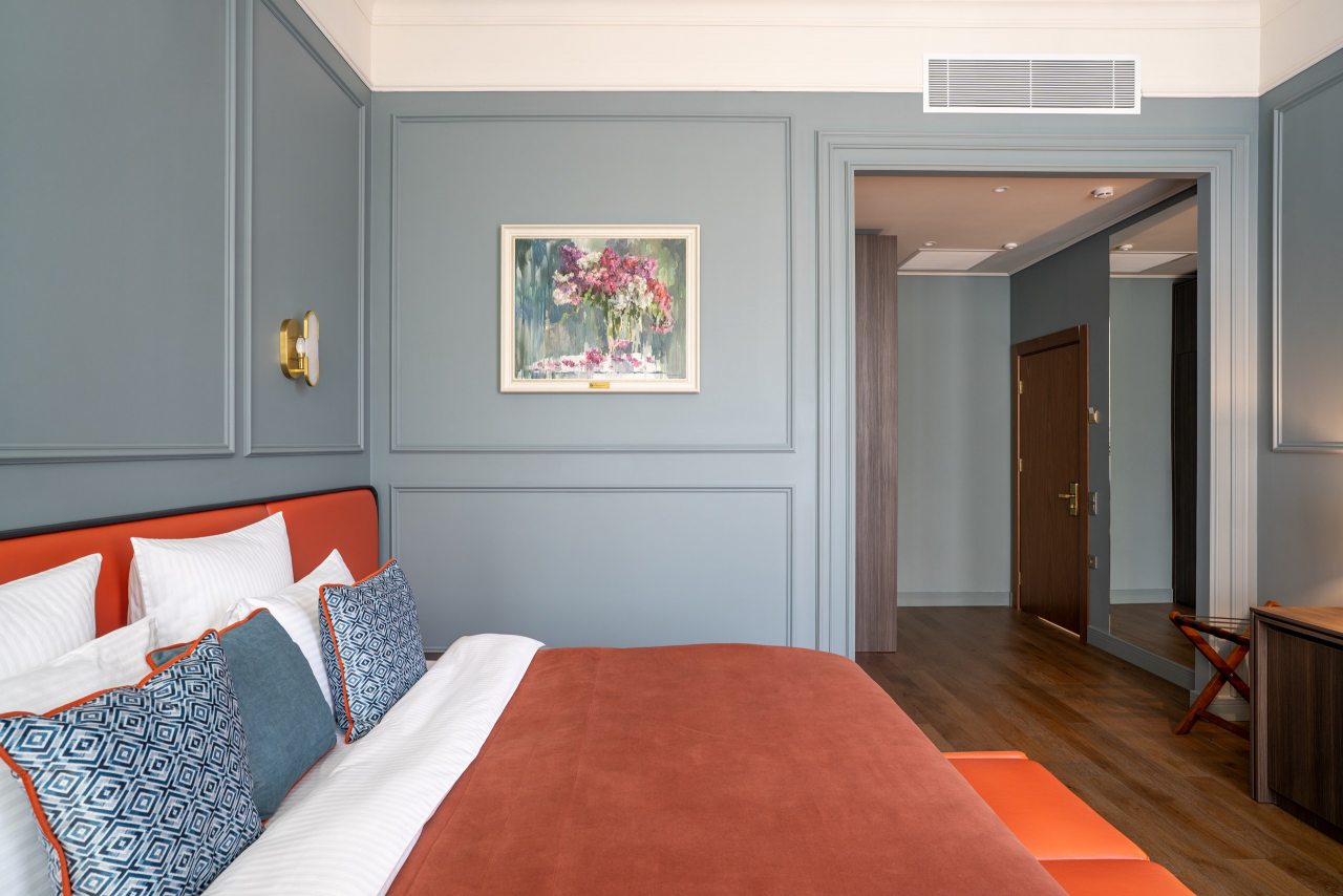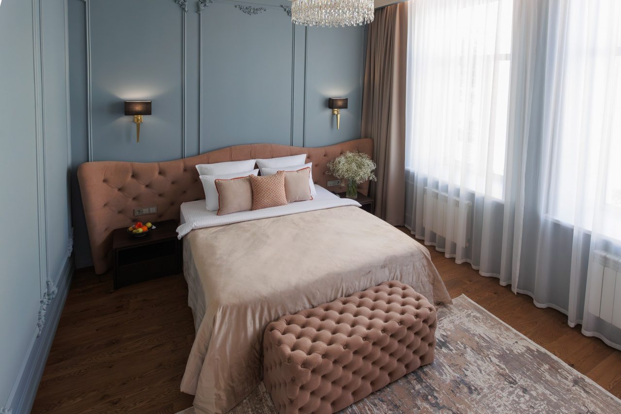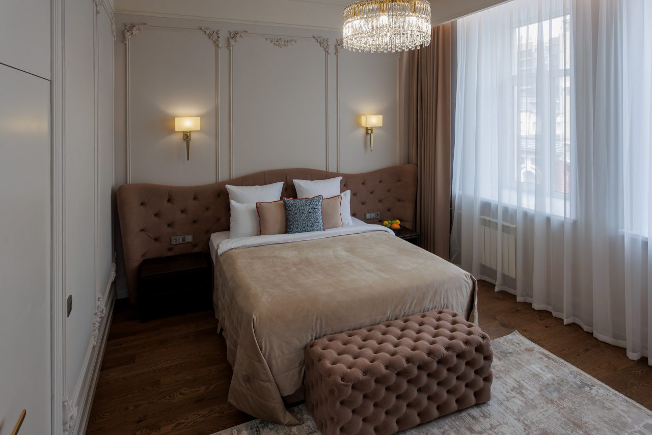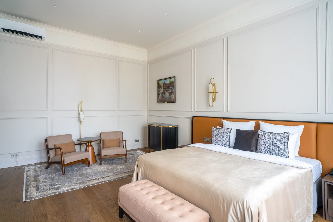 Размещение предлагается в комфортабельных номерах со всеми удобствами в виде двуспальной кровати размера king-size с ортопедическим матрасом, кондиционера, телевизора с подключенным онлайн-кинотеатром, высокоскоростного Wi-Fi, собственной ванной комнаты. Каждому постояльцу предоставляются индивидуальные банные принадлежности, полотенца, тапочки, халат. Чистота обеспечивается за счет ежедневной уборки.