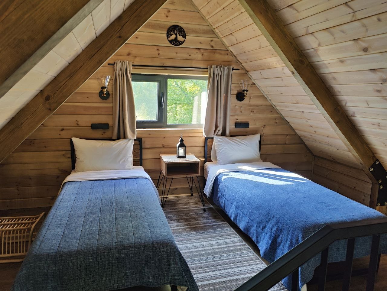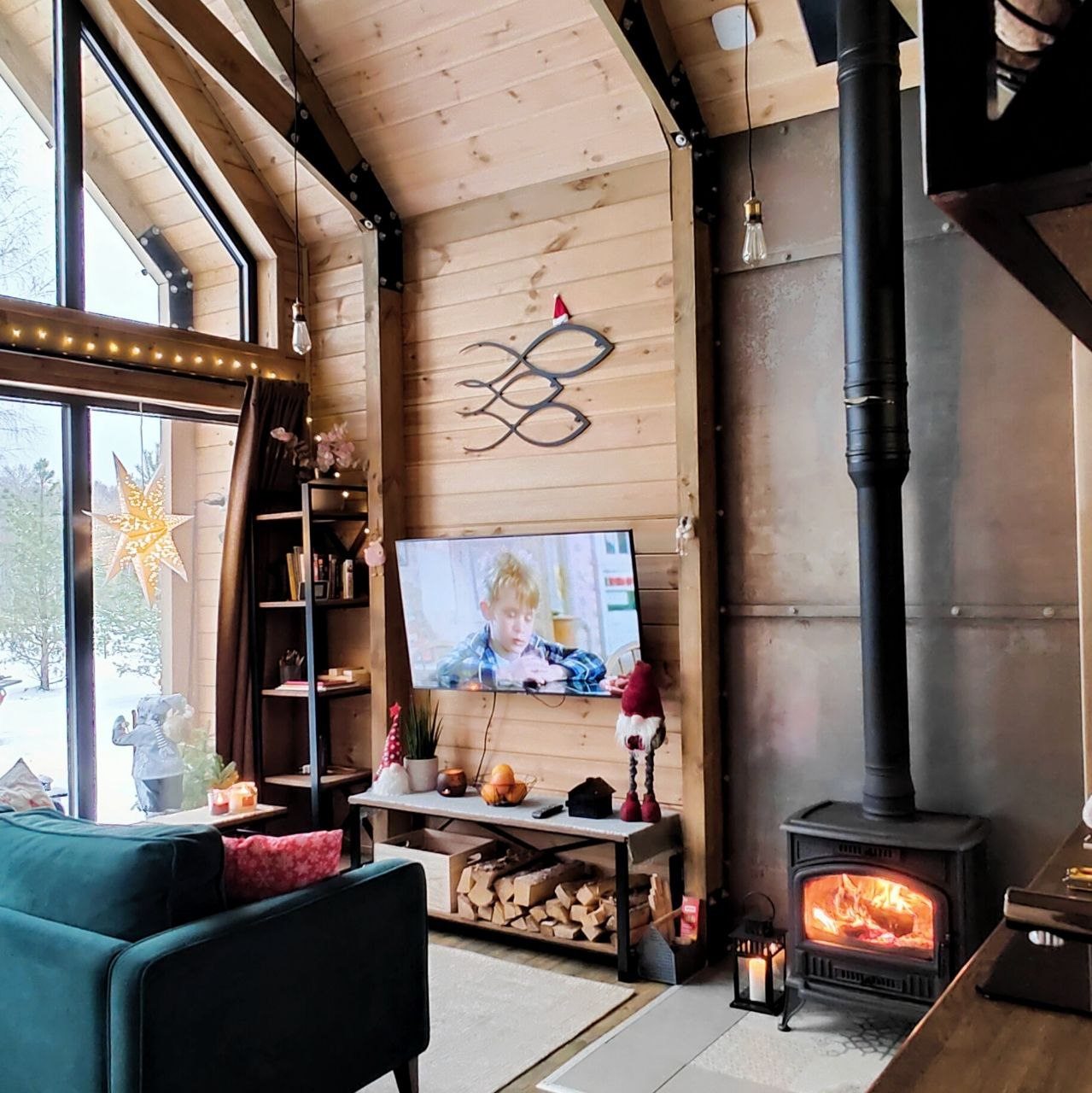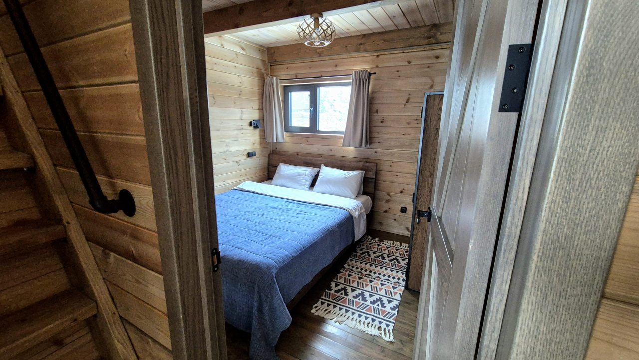 В распоряжении гостей камин, мягкая мебель, стеллаж с книгами, настольными играми, аудиоколонка и телевизор с системой Smart TV. На первом этаже расположен санузел с душем и необходимыми ванными принадлежностями и спальня с двуспальной кроватью. На втором этаже спальня с 2 односпальными кроватями, которые можно сдвинуть вместе.